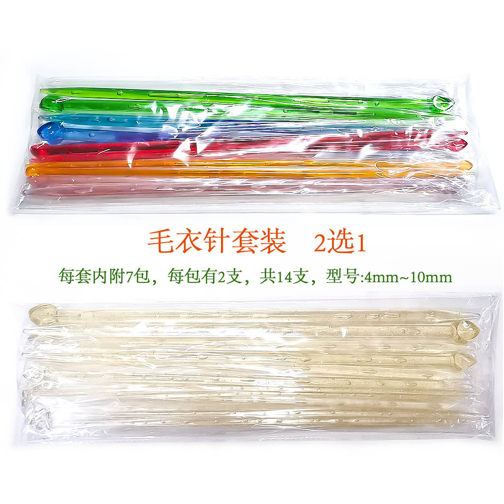 Herramienta de tejer suéter aguja de un solo palo puntiagudo aguja de suéter de plástico de color con cuentas un conjunto de 7 pares 14 piezas bolsa