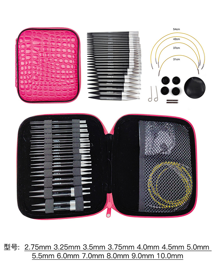 Herramienta de tejer aguja suéter negro plástico polycarbon desmontaje cuerda cambio aguja anillo conjunto 13 pares pu embalaje