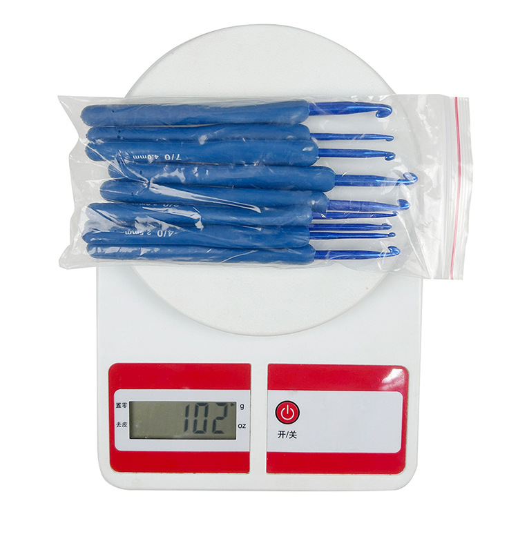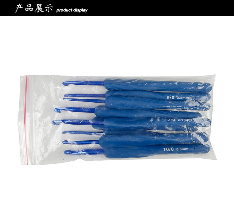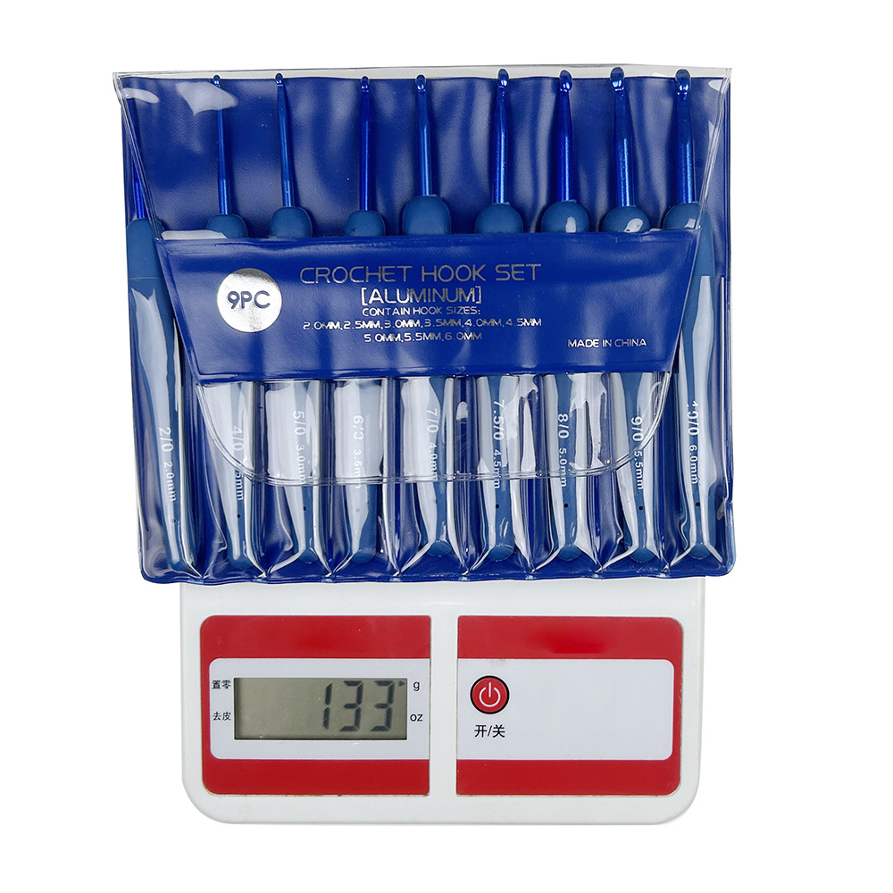 Traje transfronterizo crochet TPR silicona aluminio crochet mango azul plástico recubierto de aluminio crochet conjunto completo 9 piezas de embalaje de PVC