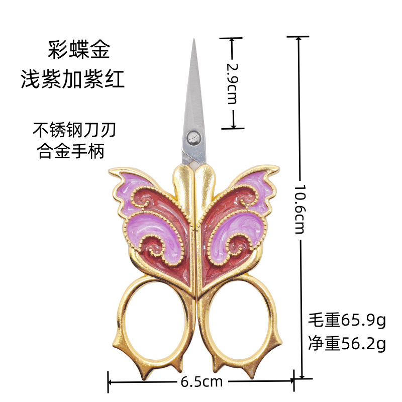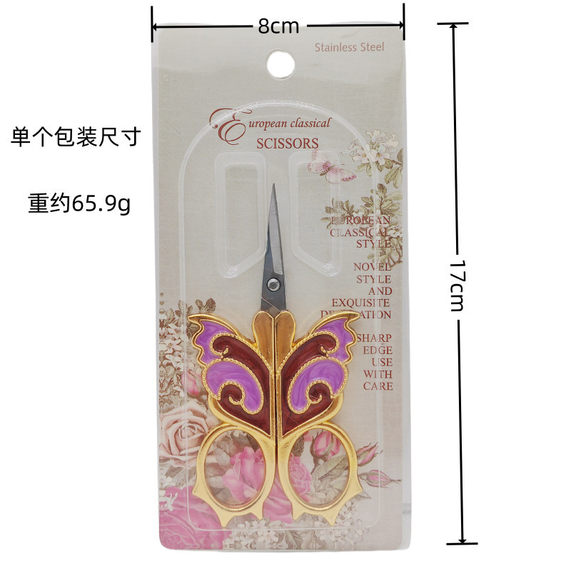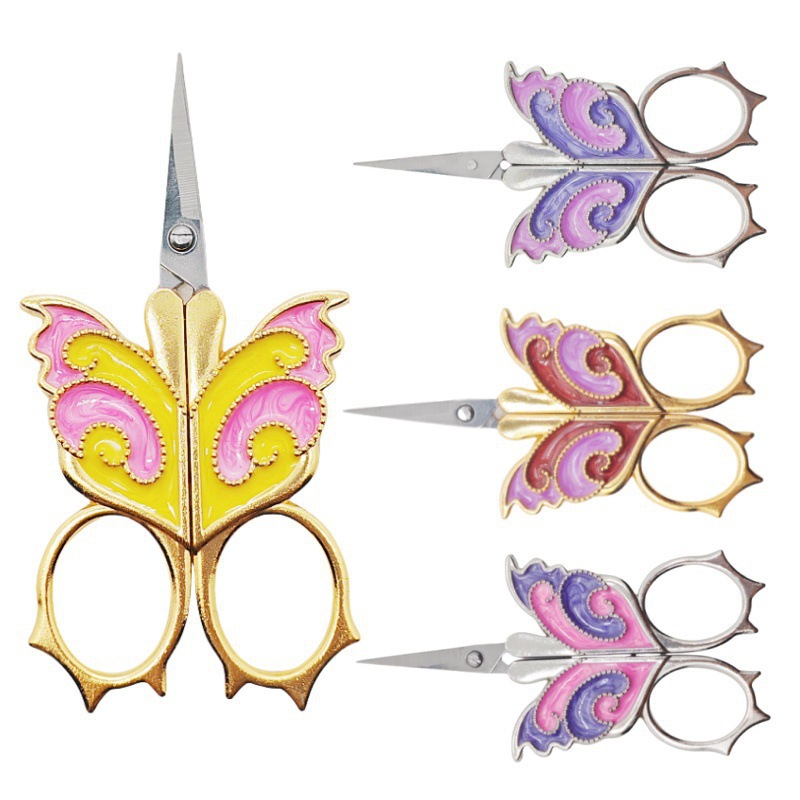 Spot venta al por mayor de mariposas pintadas exquisitas tijeras pequeñas para el hogar, punto de cruz, salón de té con estuche de cuero con flecos