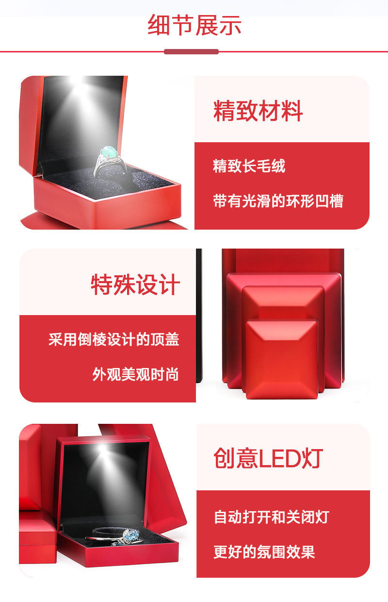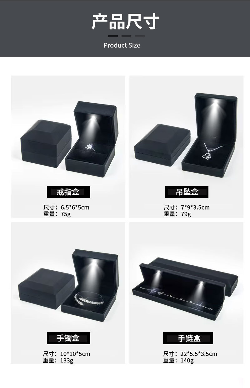 Caja de joyería LED transfronteriza con luz caja de regalo de joyería caja de anillo de alta gama caja de collar caja de embalaje colgante de alta gama