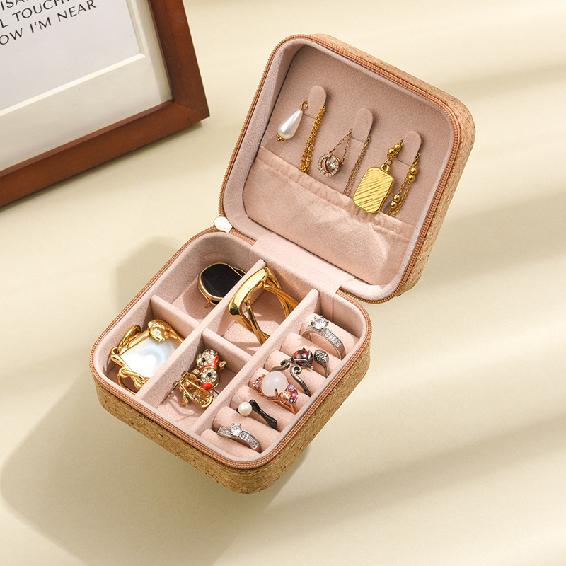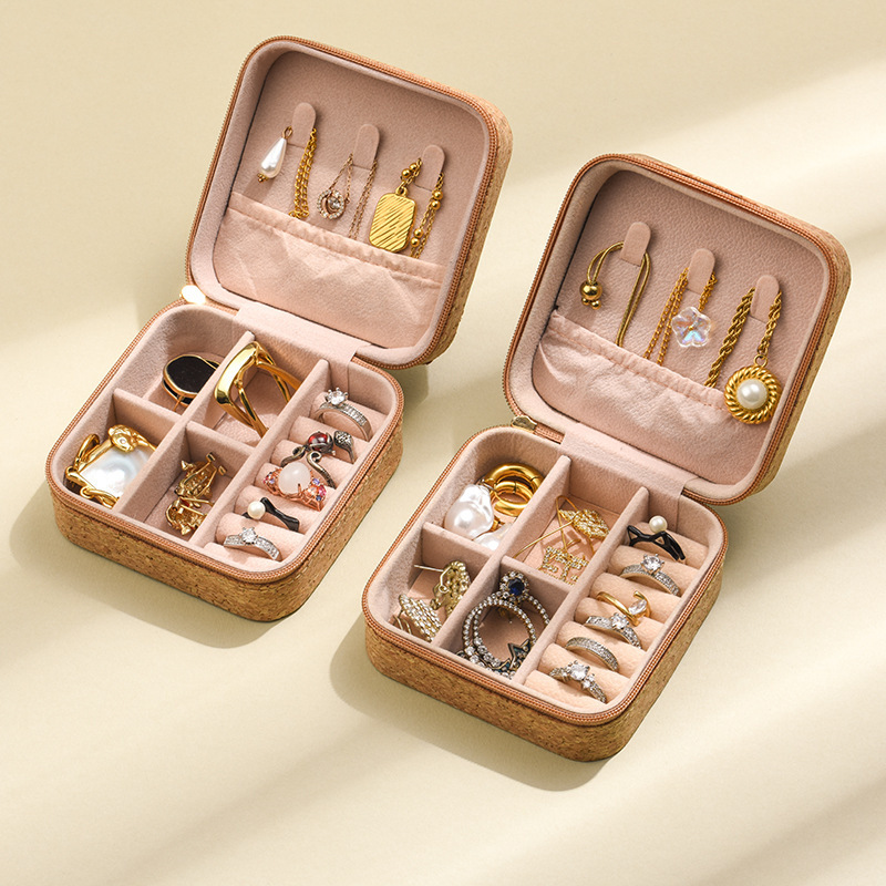 Nuevo fabricante original de alta calidad caja de joyería de corcho pendiente de viaje portátil anillo collar caja de almacenamiento