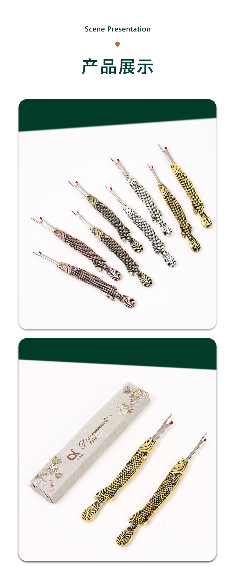 Fabricante de estilo europeo retro tipo pez pequeño divisor herramienta de bricolaje cosida a mano dispositivo de corte de hilo cuchillo de punto de cruz