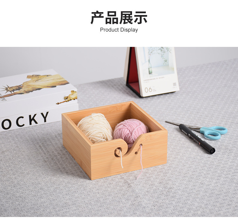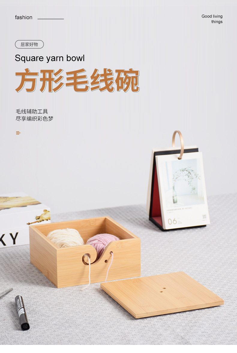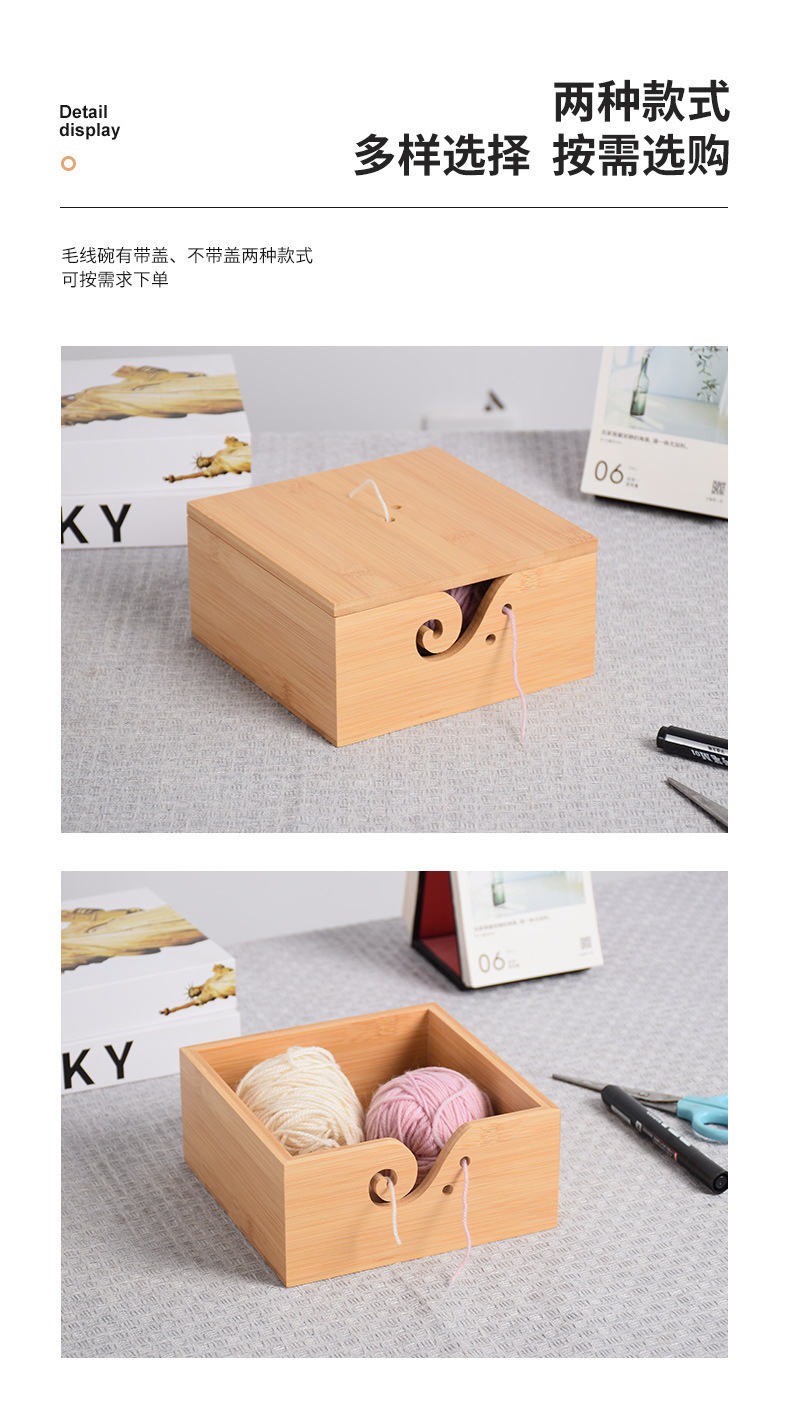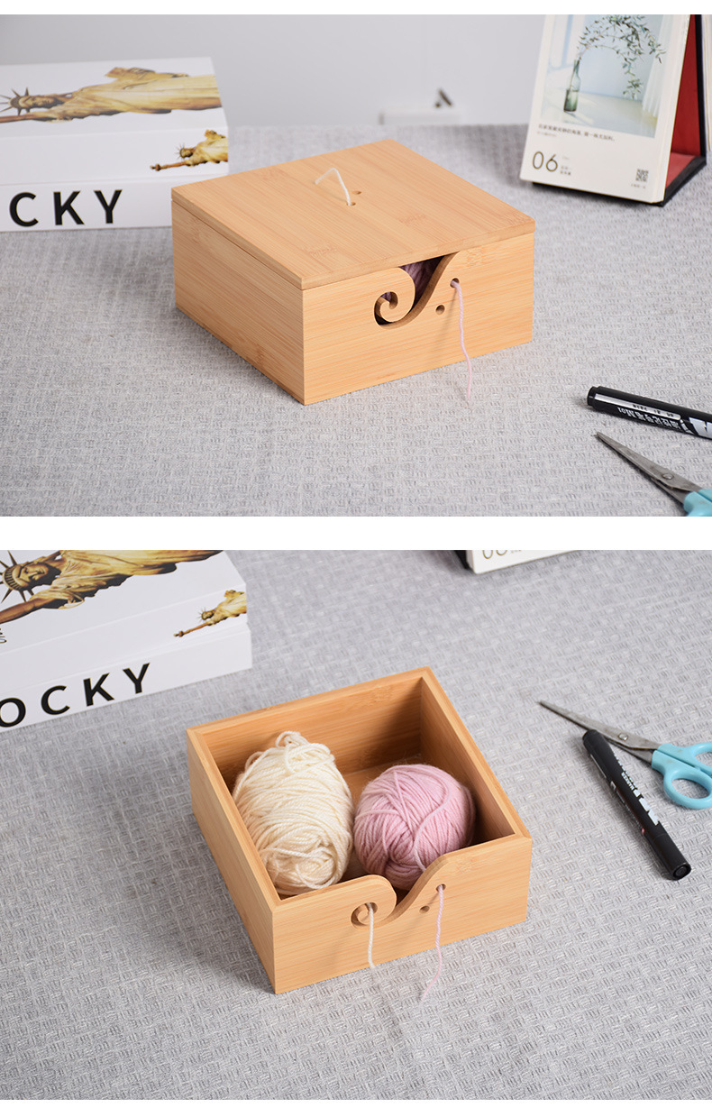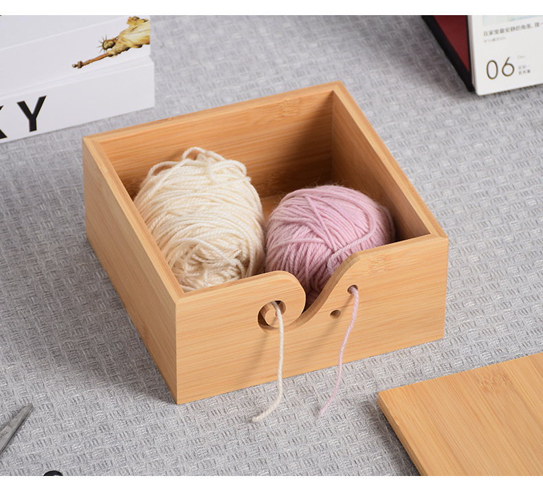 Cuenco de lana redondo de madera textil hecho a mano Cuenco de lana cuadrado de madera con tapa Cuenco de madera de almacenamiento de lana