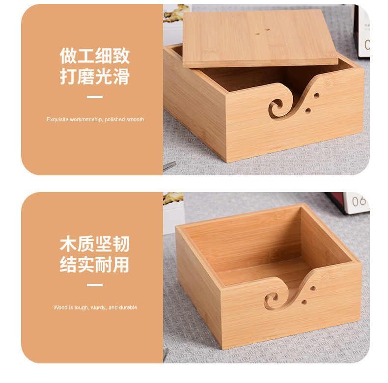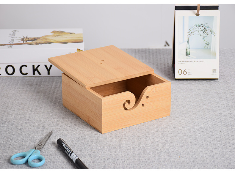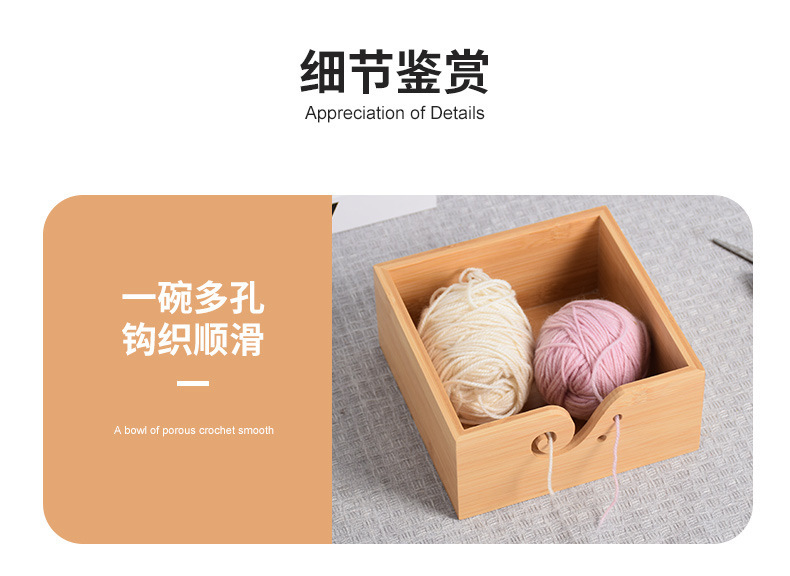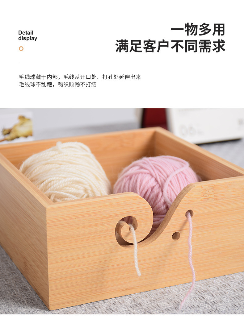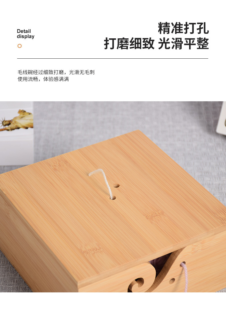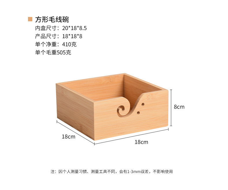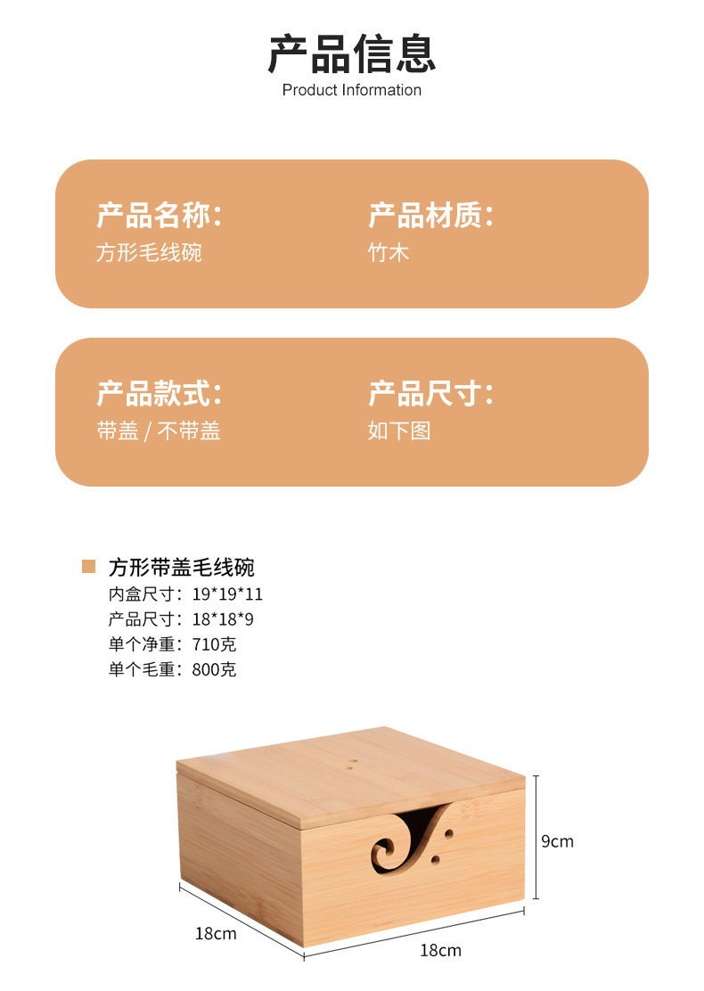 Cuenco de lana redondo de madera textil hecho a mano Cuenco de lana cuadrado de madera con tapa Cuenco de madera de almacenamiento de lana