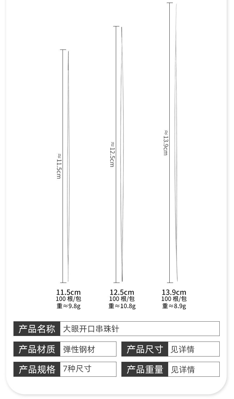 Aguja de cuentas abierta, joyería de aguja especial, collar de pulsera, enhebrador de cuentas de arroz, enhebrador de cuentas de ojos grandes hecho a mano