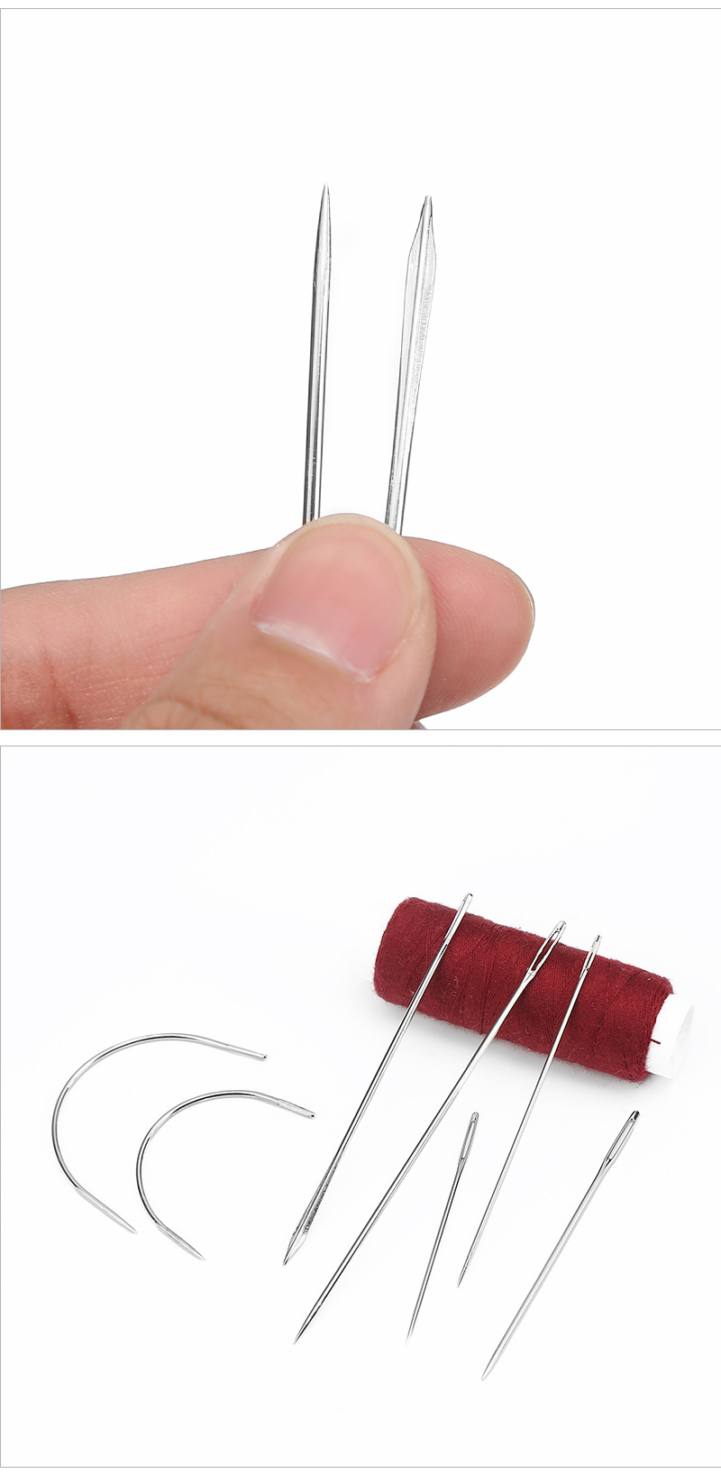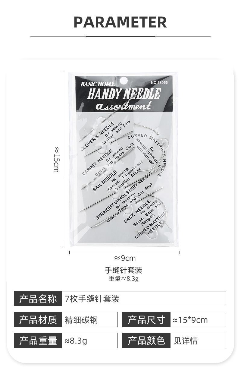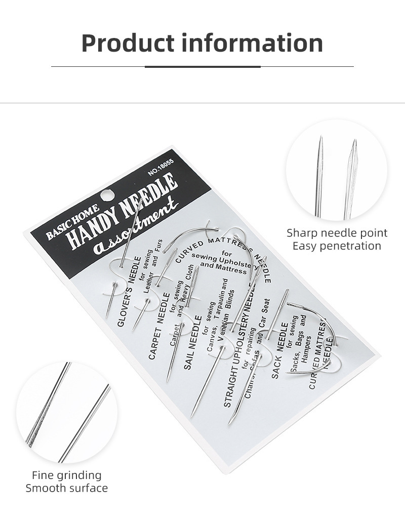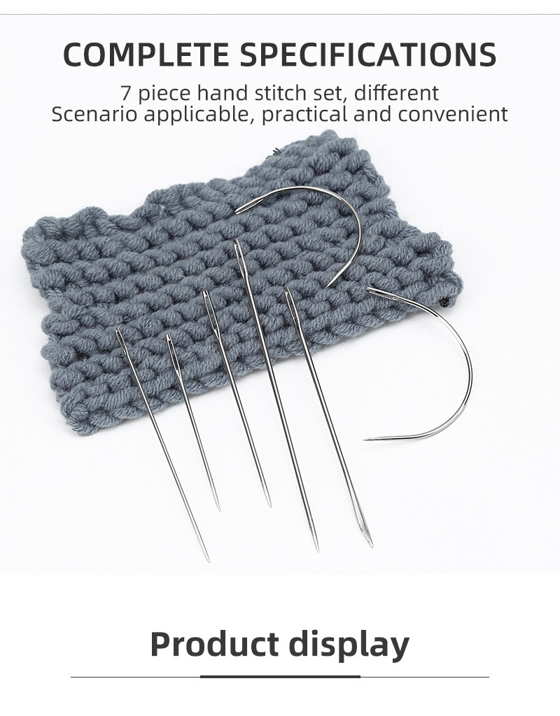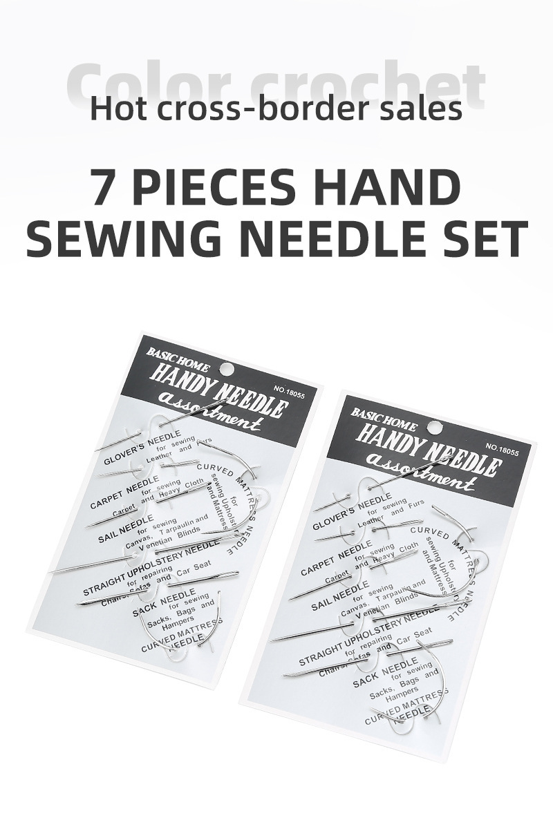 Especial de 7 tipos de cuero cosido, puntadas triangulares de costura a mano, aguja curva de ojo grande para el hogar, juego de agujas de coser multiusos