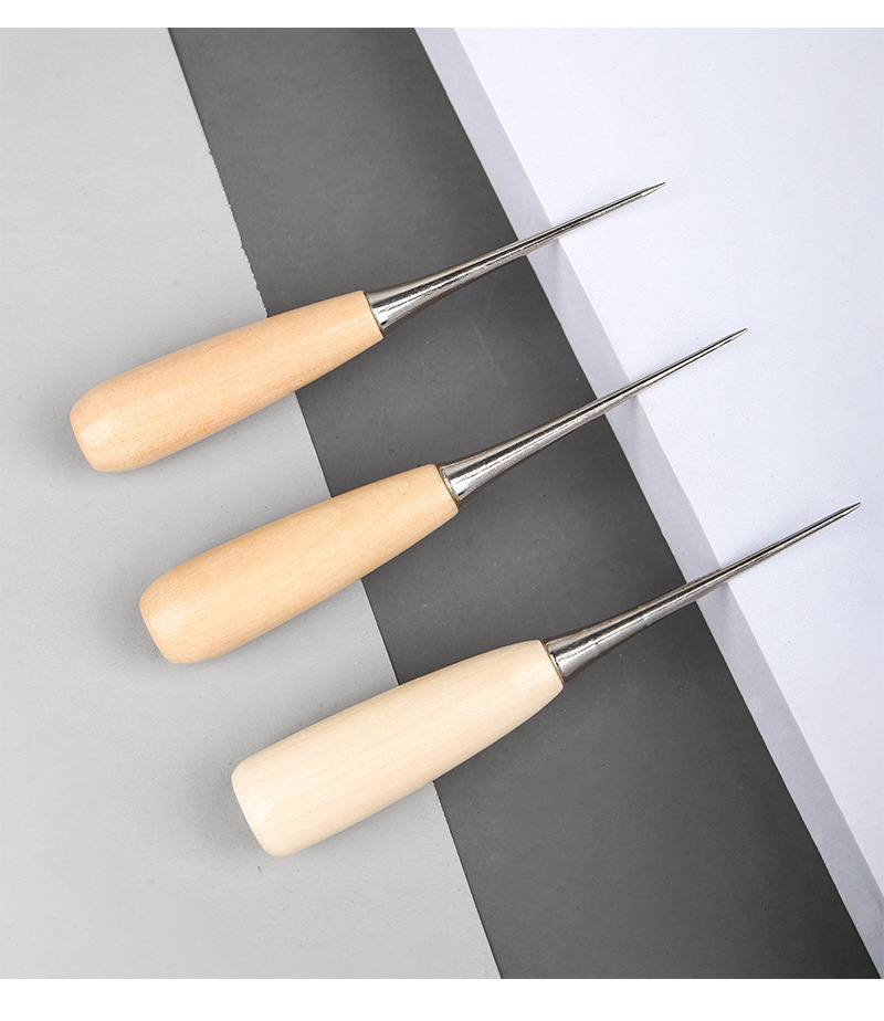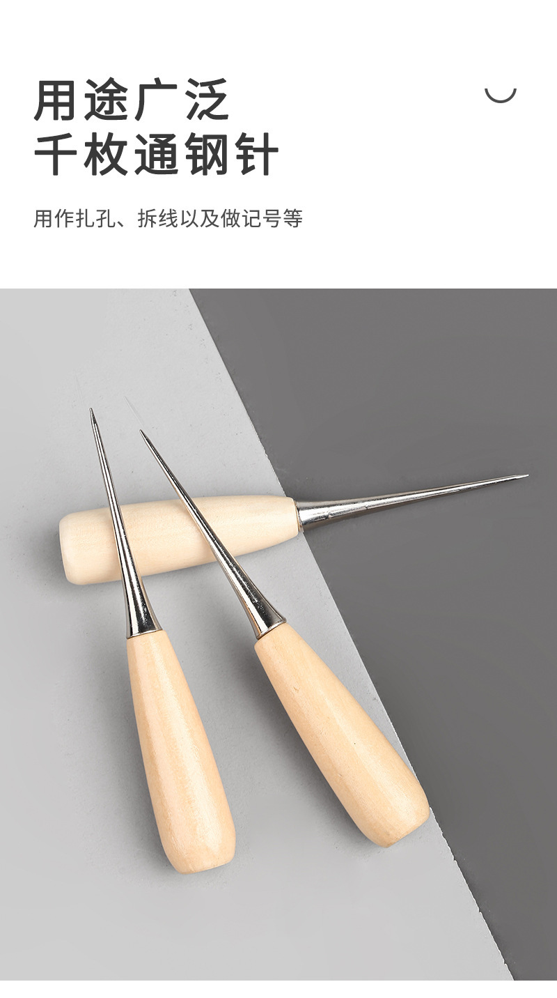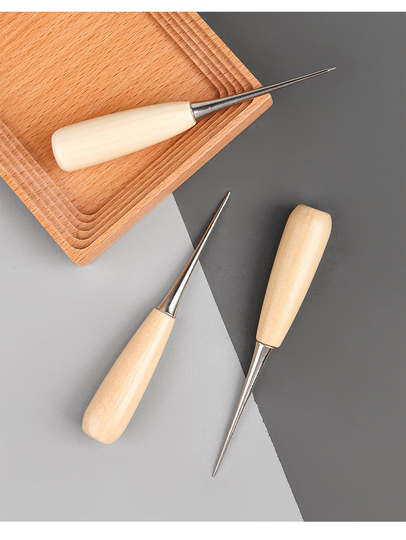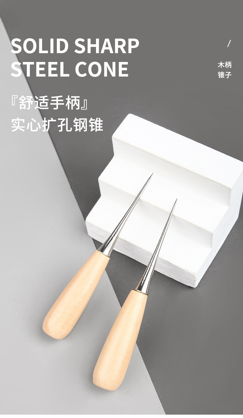 Fabricante con funda, punzón de mango de madera, cuero de bricolaje, zapatos de suela hechos a mano, aguja de cono perforada Qianbiantong