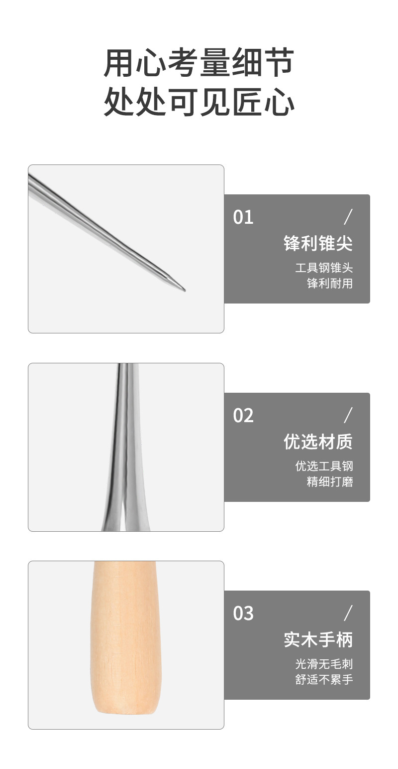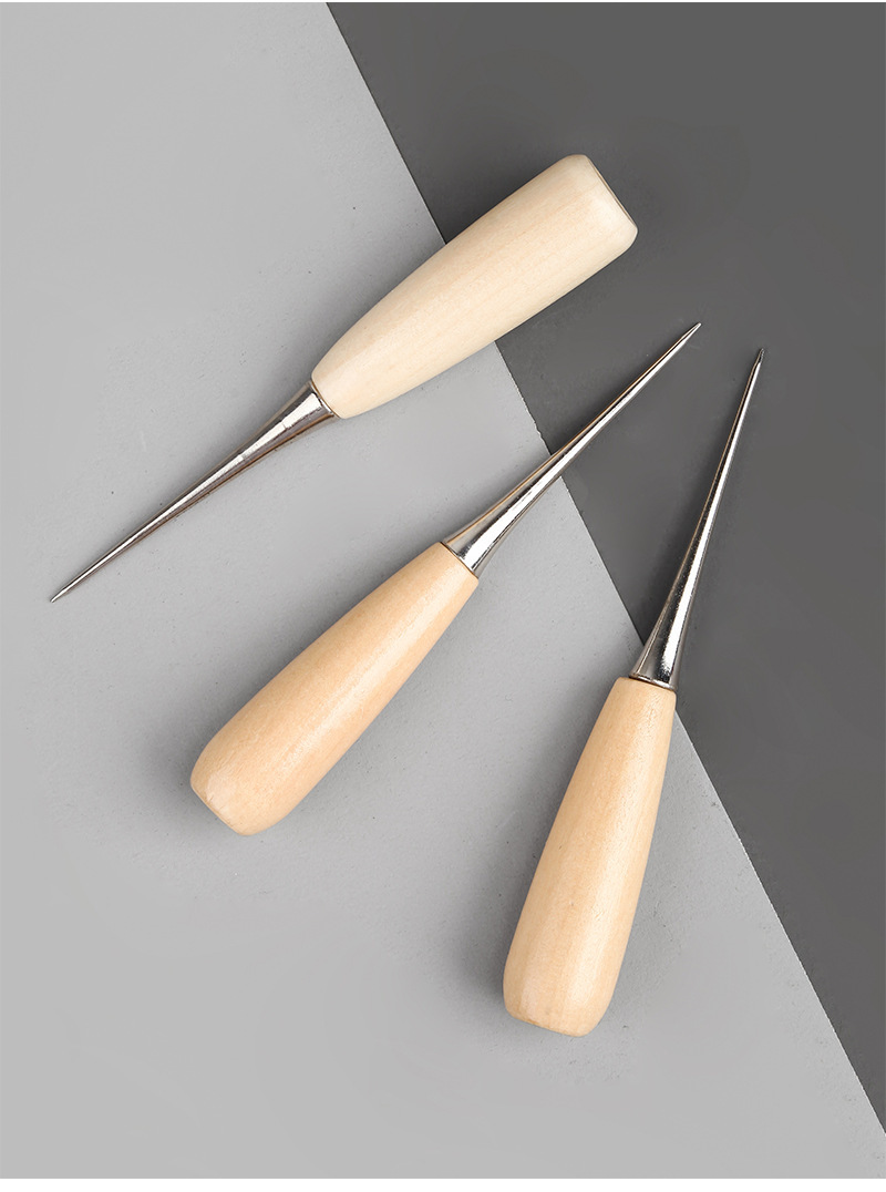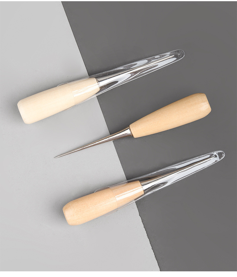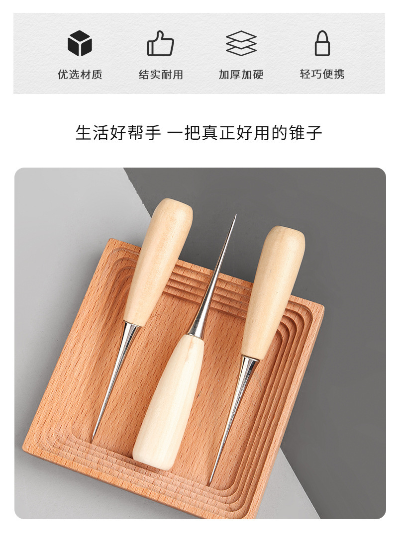 Fabricante con funda, punzón de mango de madera, cuero de bricolaje, zapatos de suela hechos a mano, aguja de cono perforada Qianbiantong
