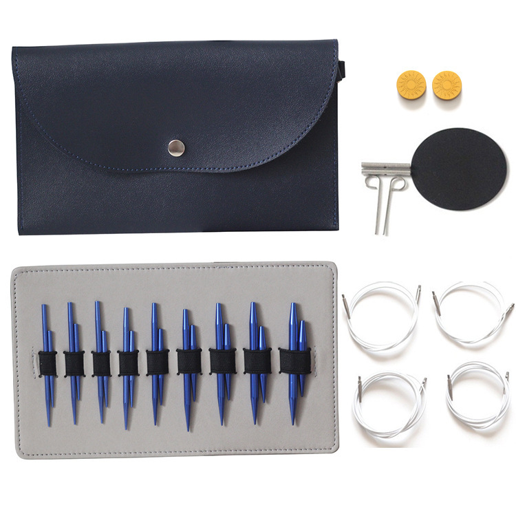 5 + 8 aguja de manga azul alúmina desmontable aguja de anillo conjunto intercambiable herramienta de tejido de aguja de suéter