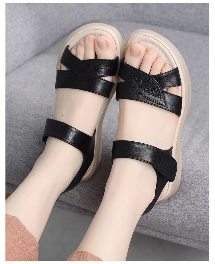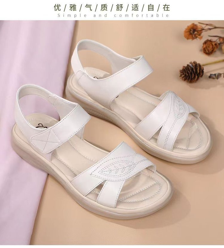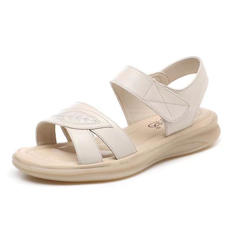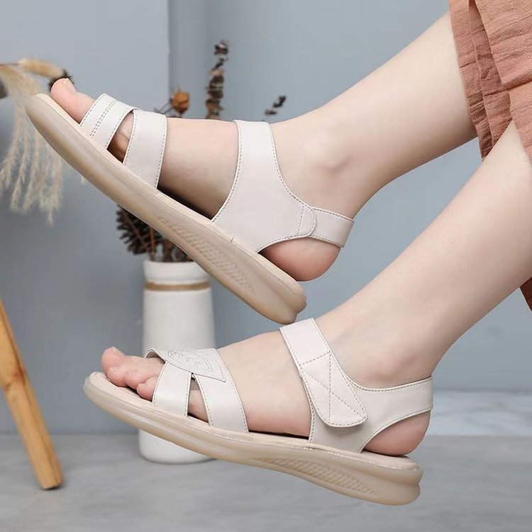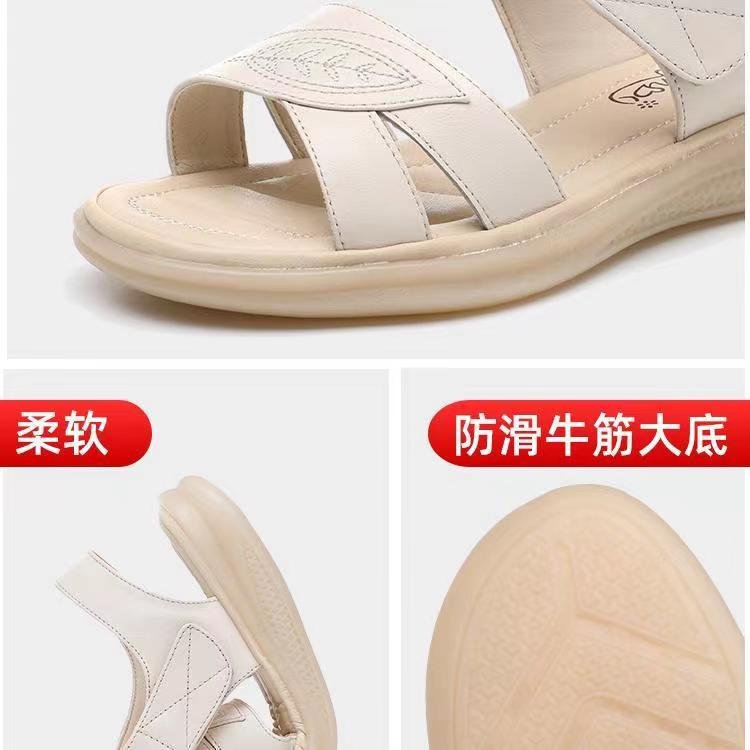 Sandalias de madre con fondo de tendón para mujer, verano plano, nuevo estilo, todo-fósforo, cómodas y ligeras, sandalias de mediana edad y ancianos, velcro