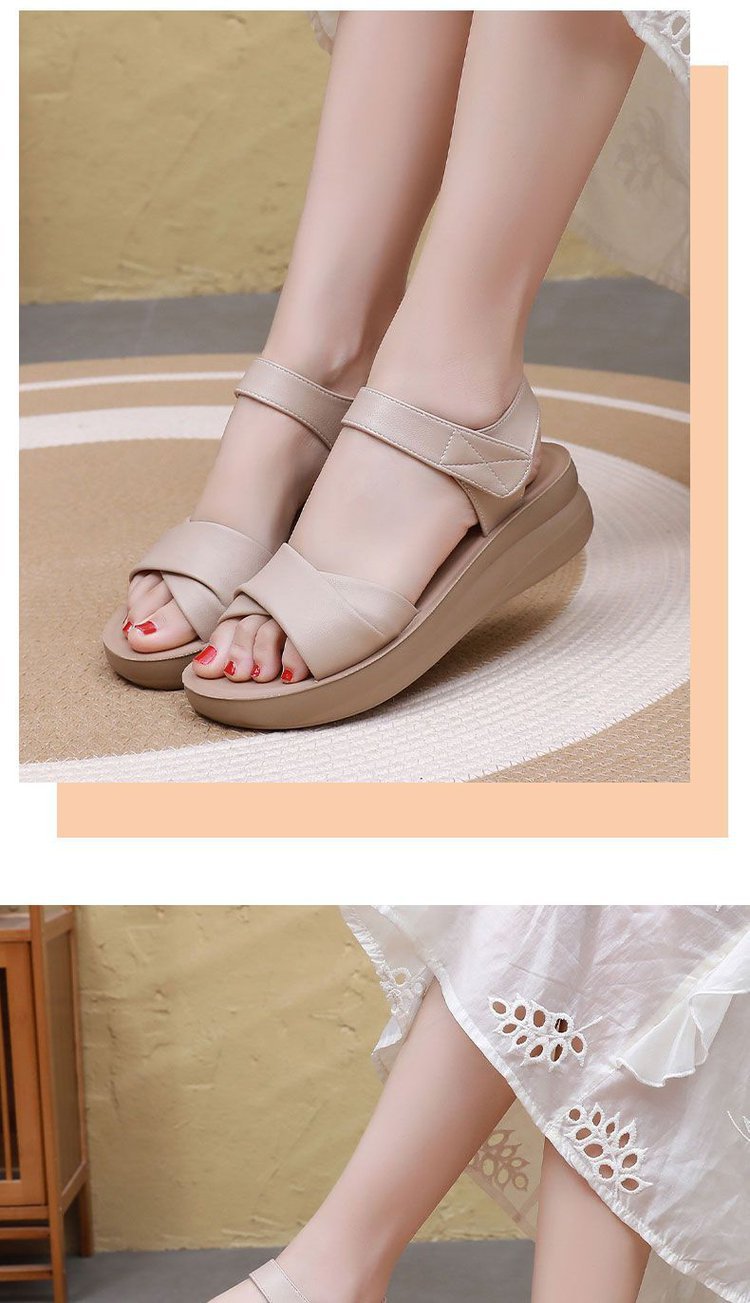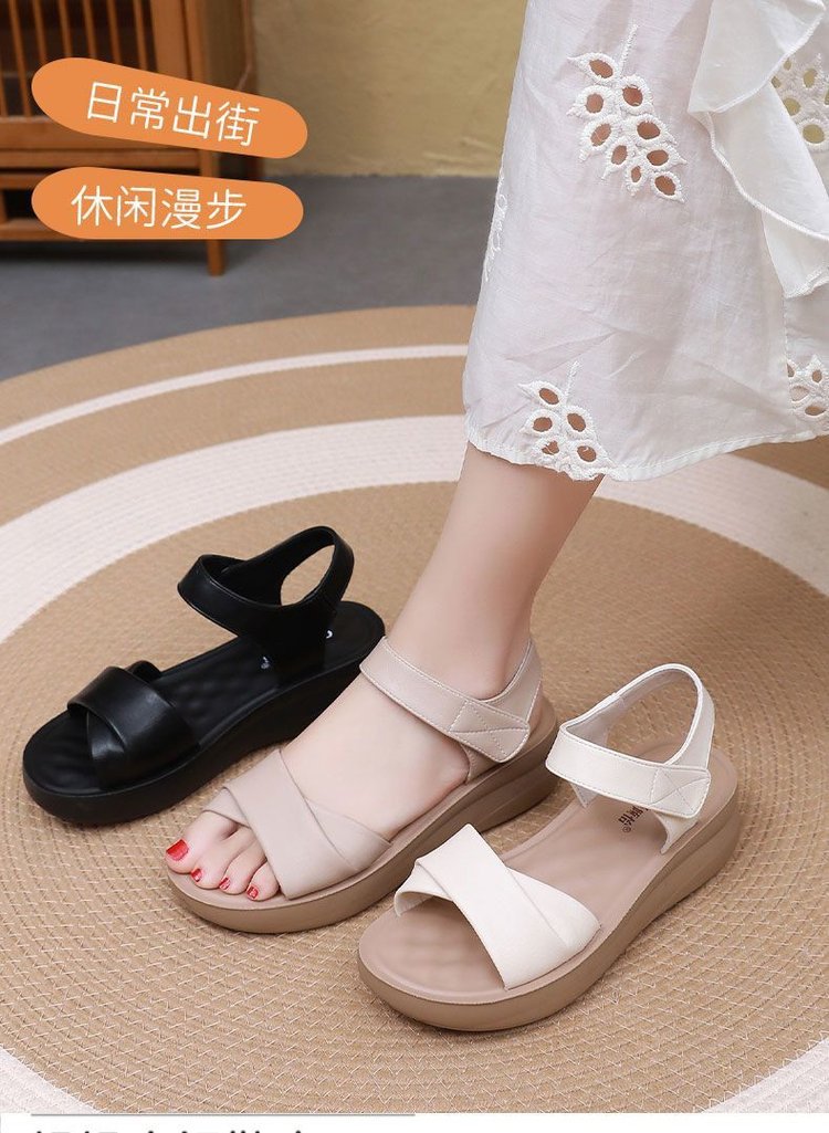 Sandalias explosivas para mujer 2025 verano nuevo estilo zapatos de madre suela suave superficie suave ligero antideslizante cómodo zapatos de playa de mediana edad y ancianos