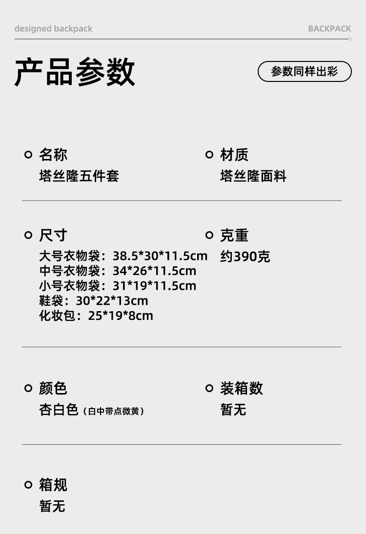 | Colores | Bolsa de ropa grande,Bolsa de ropa mediana,Bolsa de ropa pequeña,Bolsa de zapatos,Bolsa de lavado,Juego de cinco piezas (cinco tipos) |