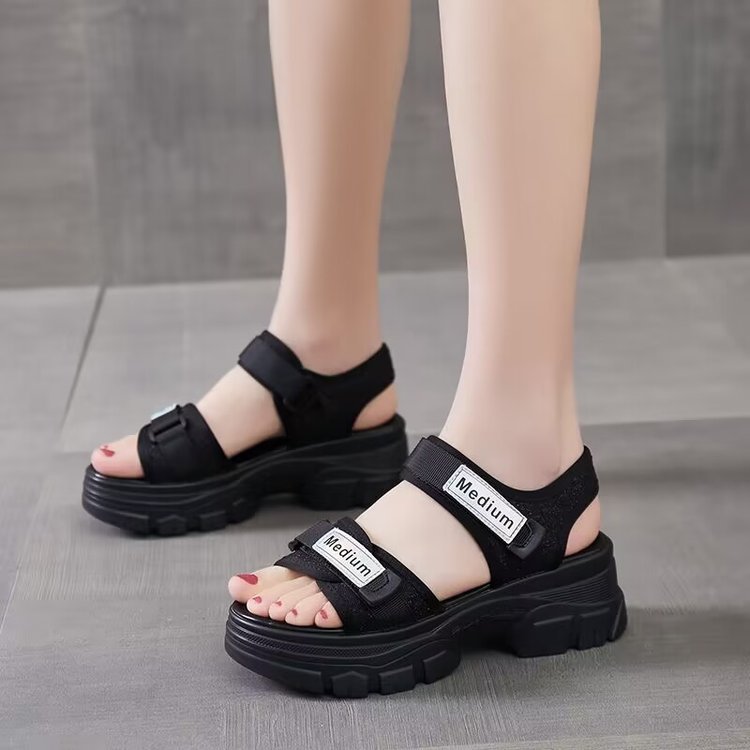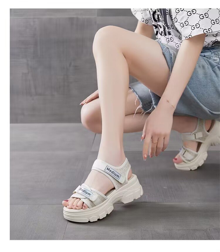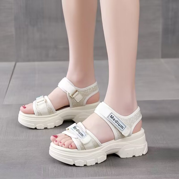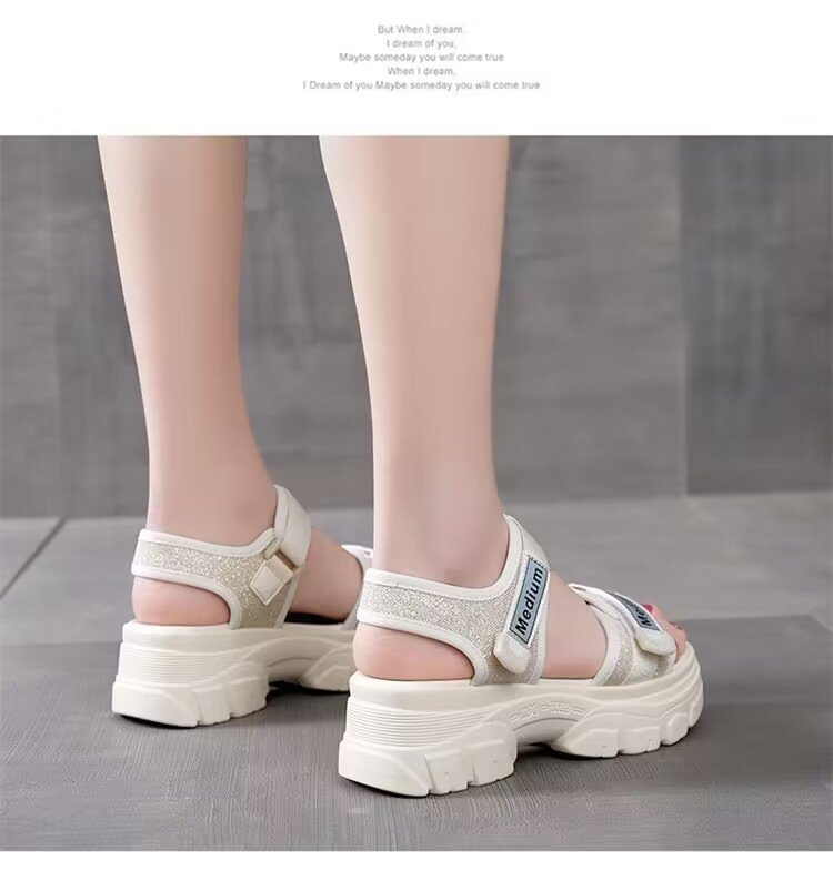 Sandalias de suela gruesa para mujer 2024 verano nuevo estilo bizcocho de suela suave aumento de zapatos de mujer zapatos de playa de moda deportiva de todo fósforo