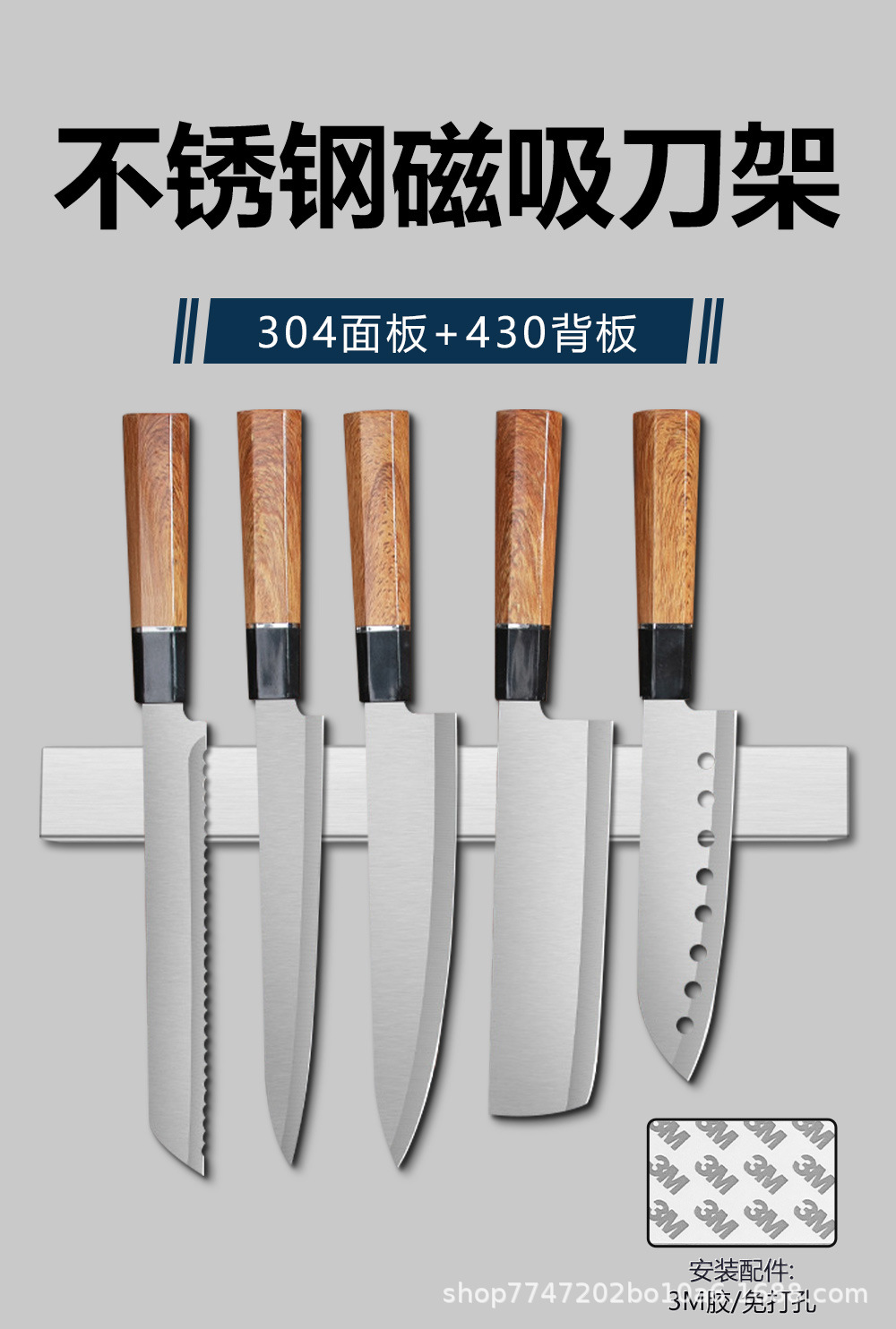 304 acero inoxidable succión magnética portacuchillos sin perforación tipo pared portacuchillos magnéticos herramientas de almacenamiento de cocina