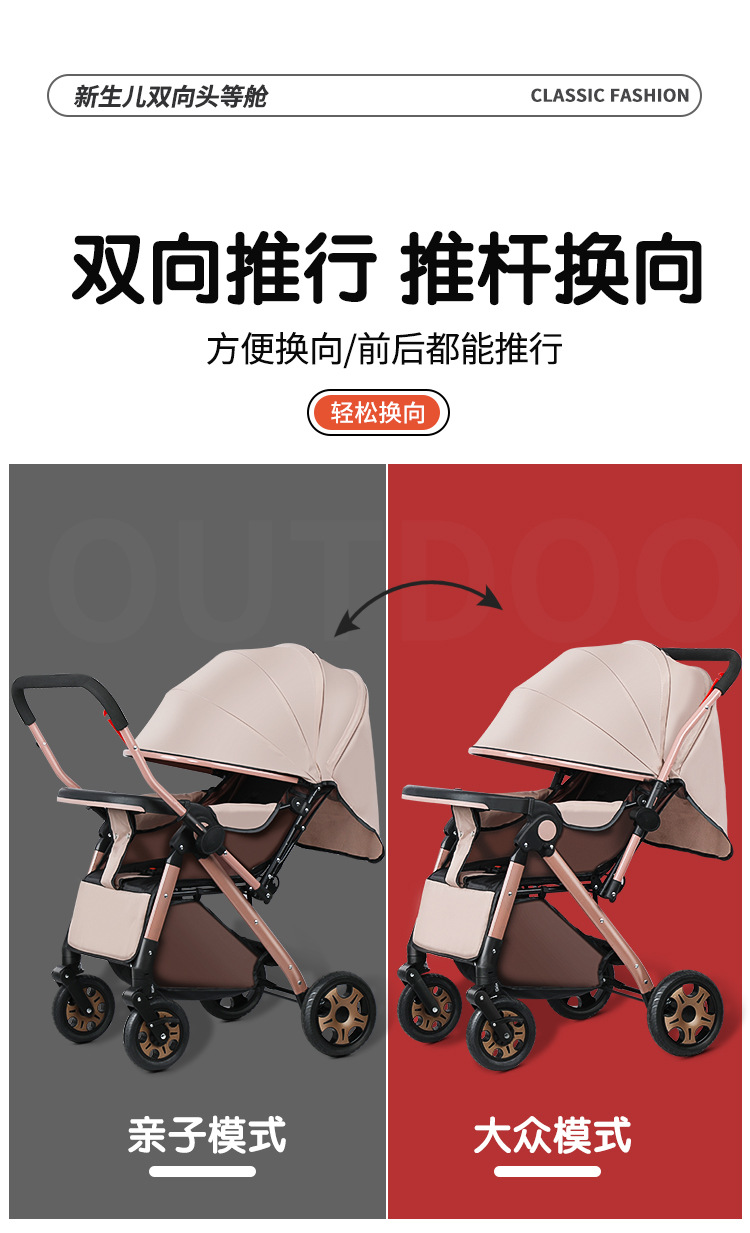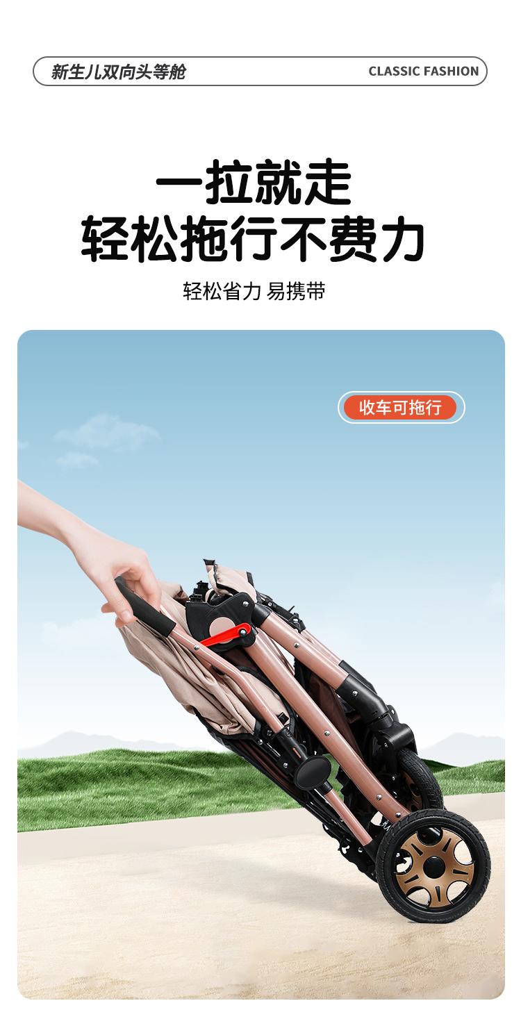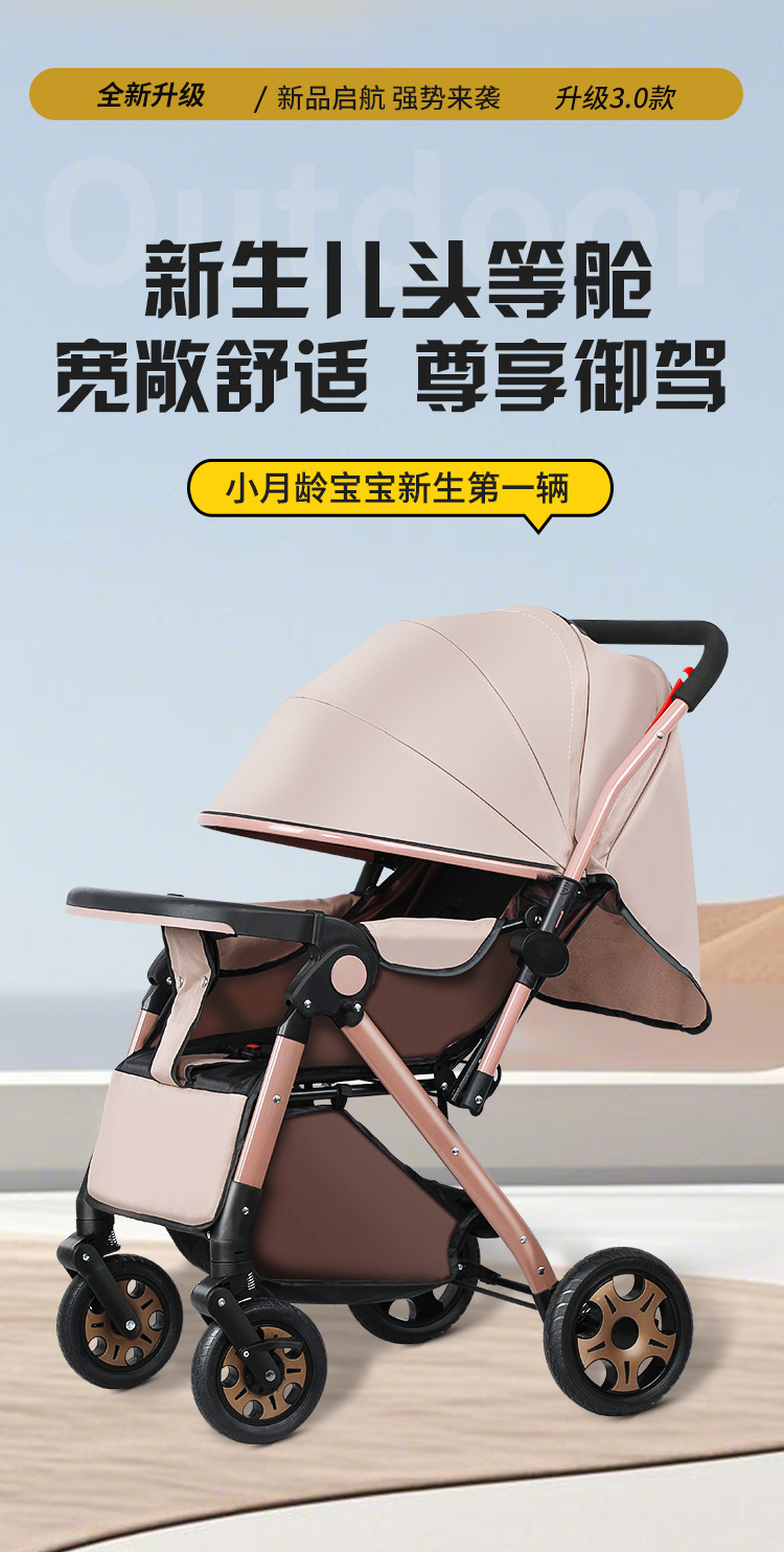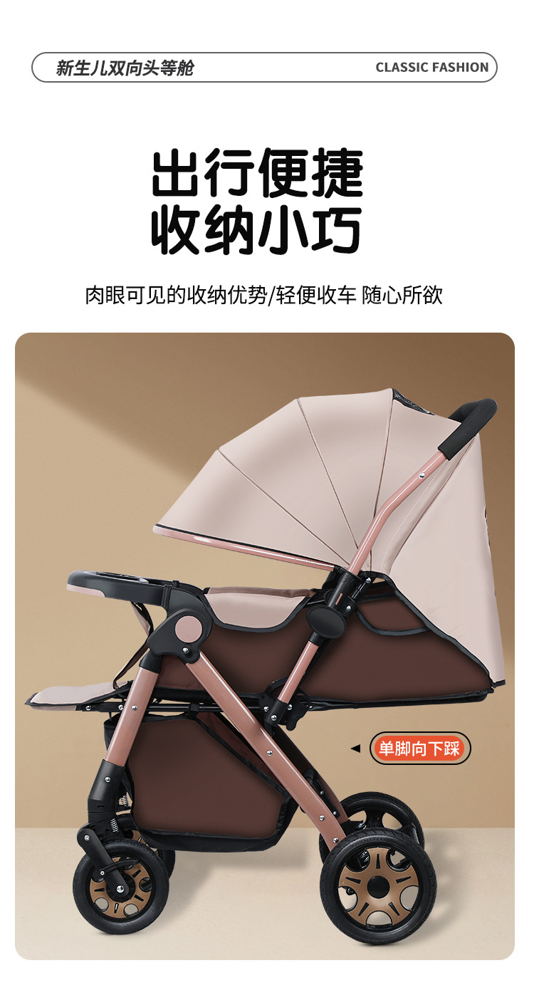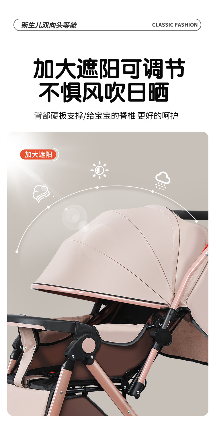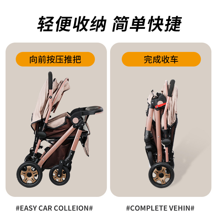 Carrinche de bebé de alto paisaje bidireccional se puede sentar y acostarse, carrinche de mano plegable ligero, carrinche de bebé de 0 - 3 años para hombres y mujeres