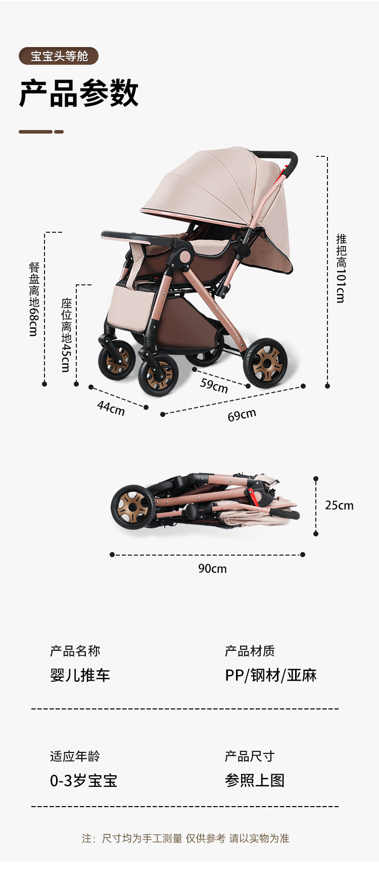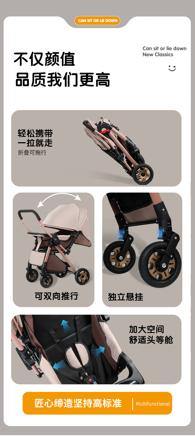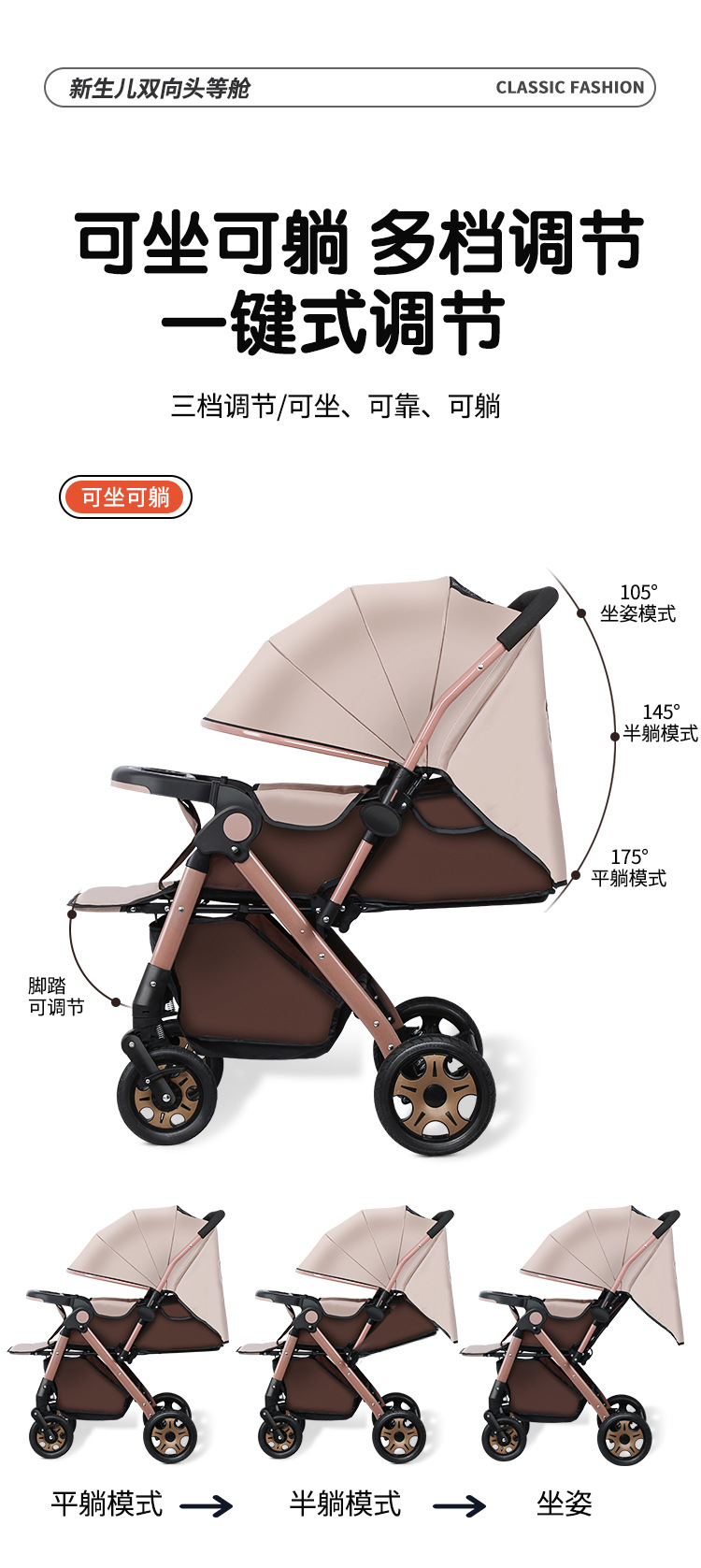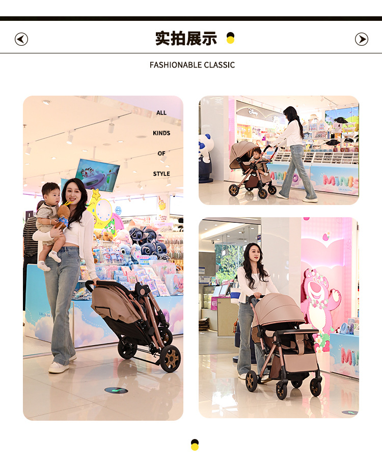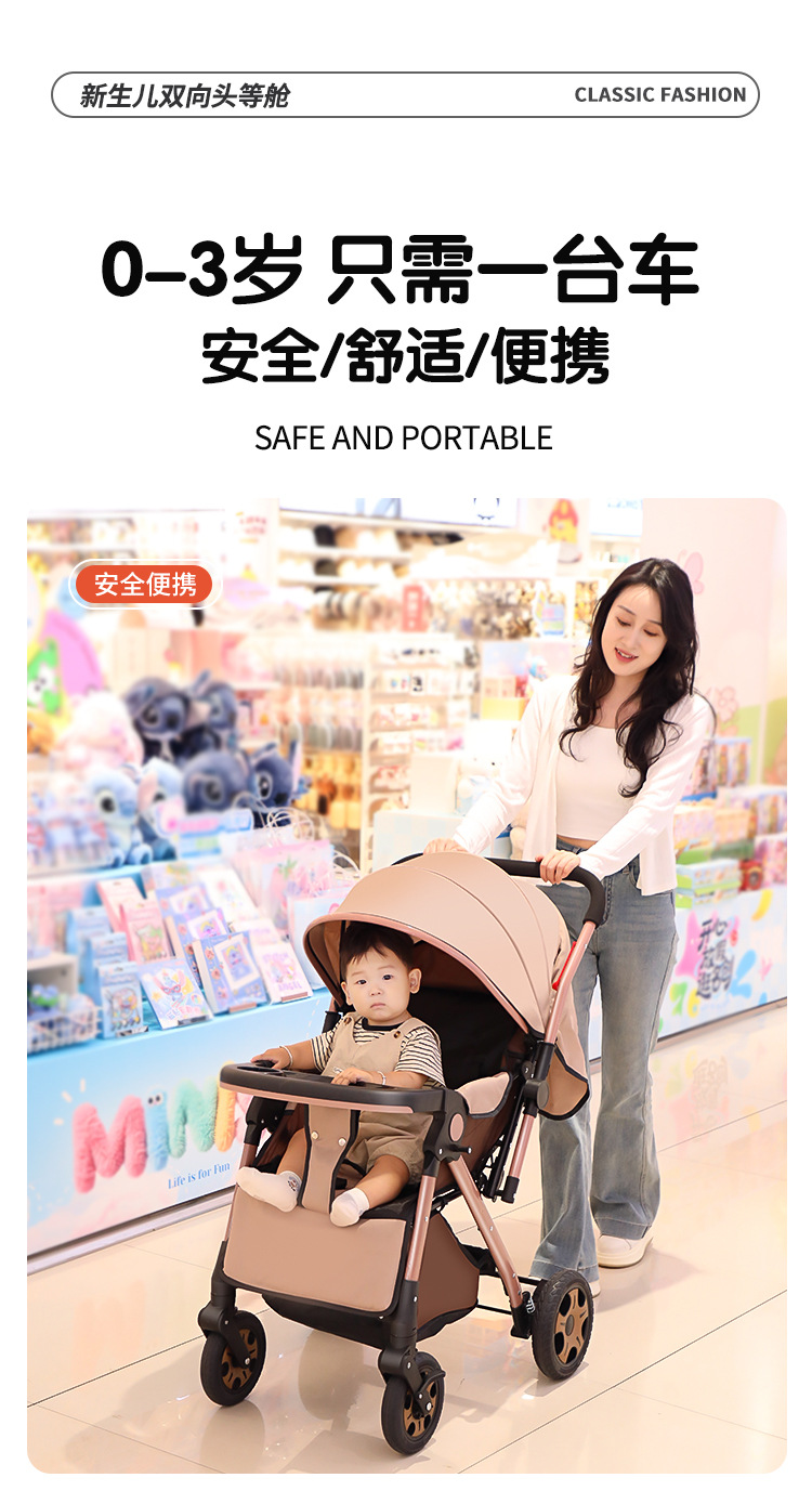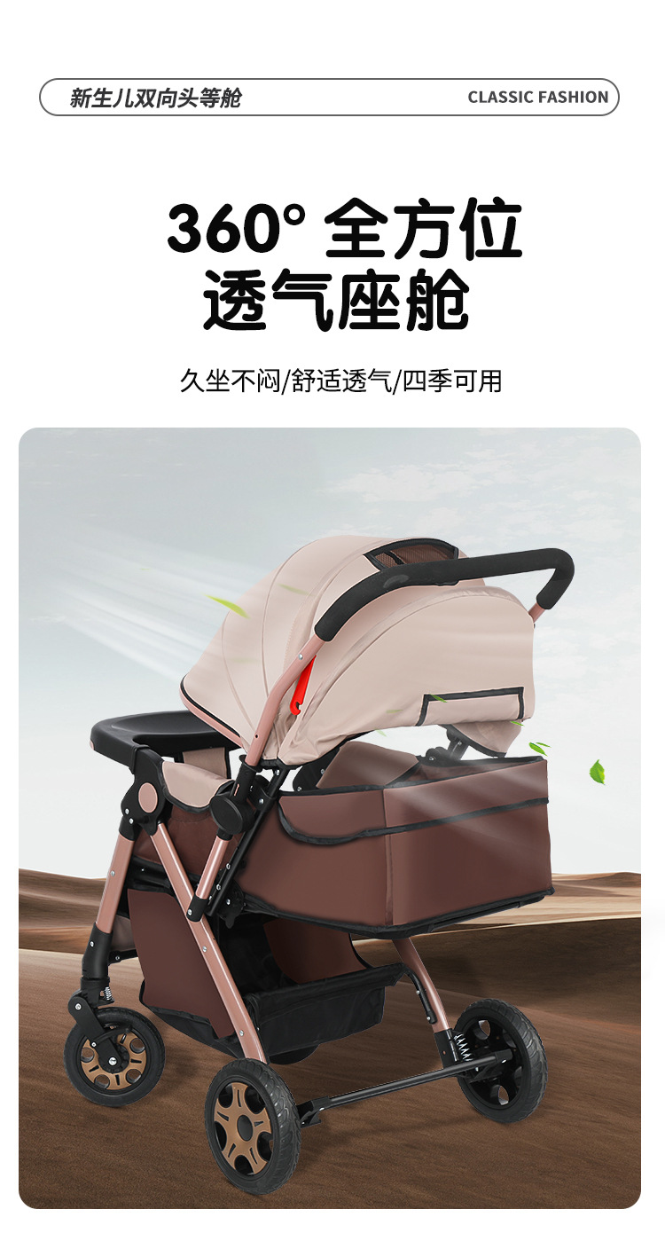 Carrinche de bebé de alto paisaje bidireccional se puede sentar y acostarse, carrinche de mano plegable ligero, carrinche de bebé de 0 - 3 años para hombres y mujeres