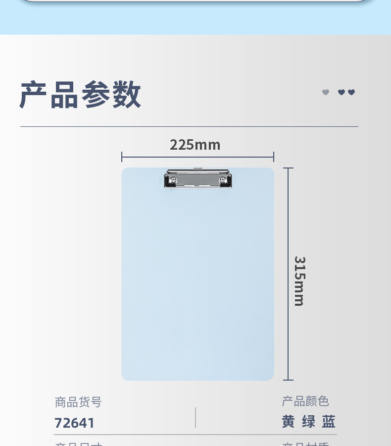 72641 abrazaderas de plástico A4 escritura abrazaderas de papelería de estudiantes abrazaderas de cartón carpeta de suministros de oficina