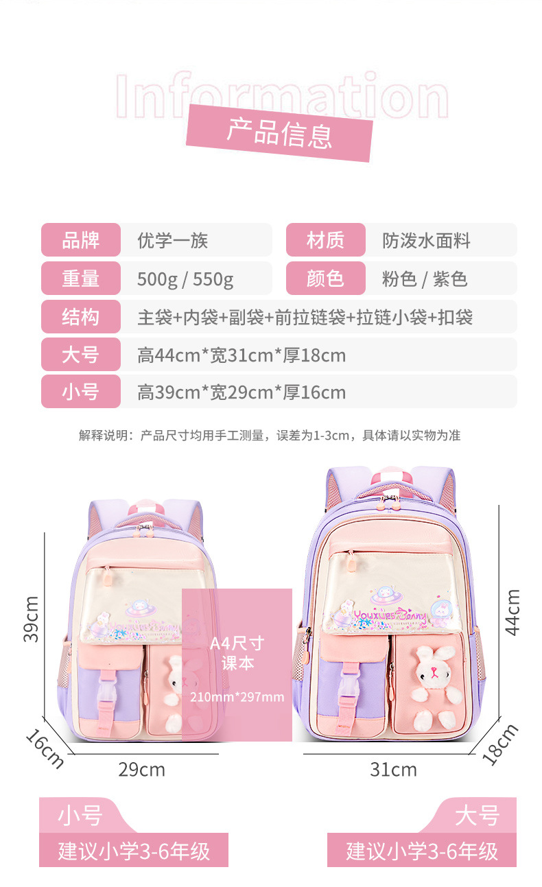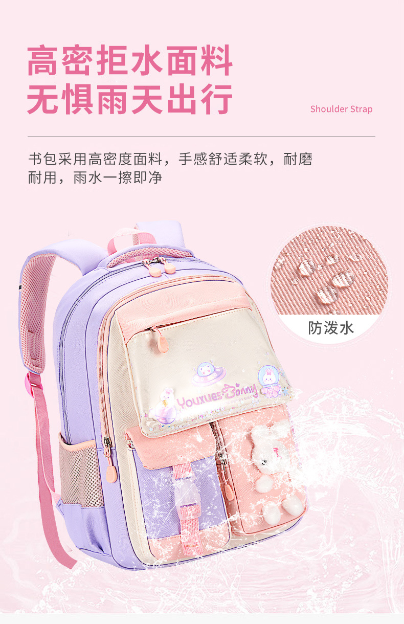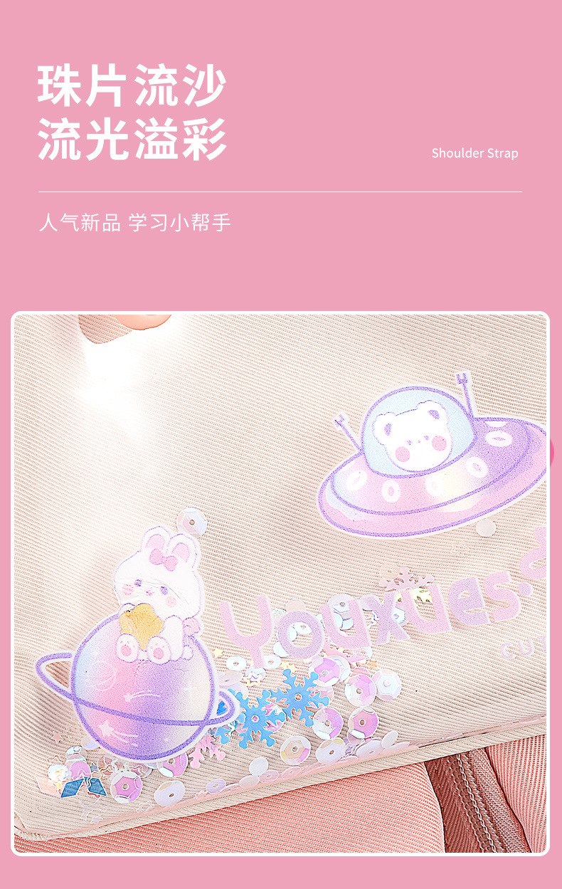Mochila de arena flotante de sueño para estudiantes de escuela primaria, conejos lindos, mochila de hombro para niños de gran capacidad.