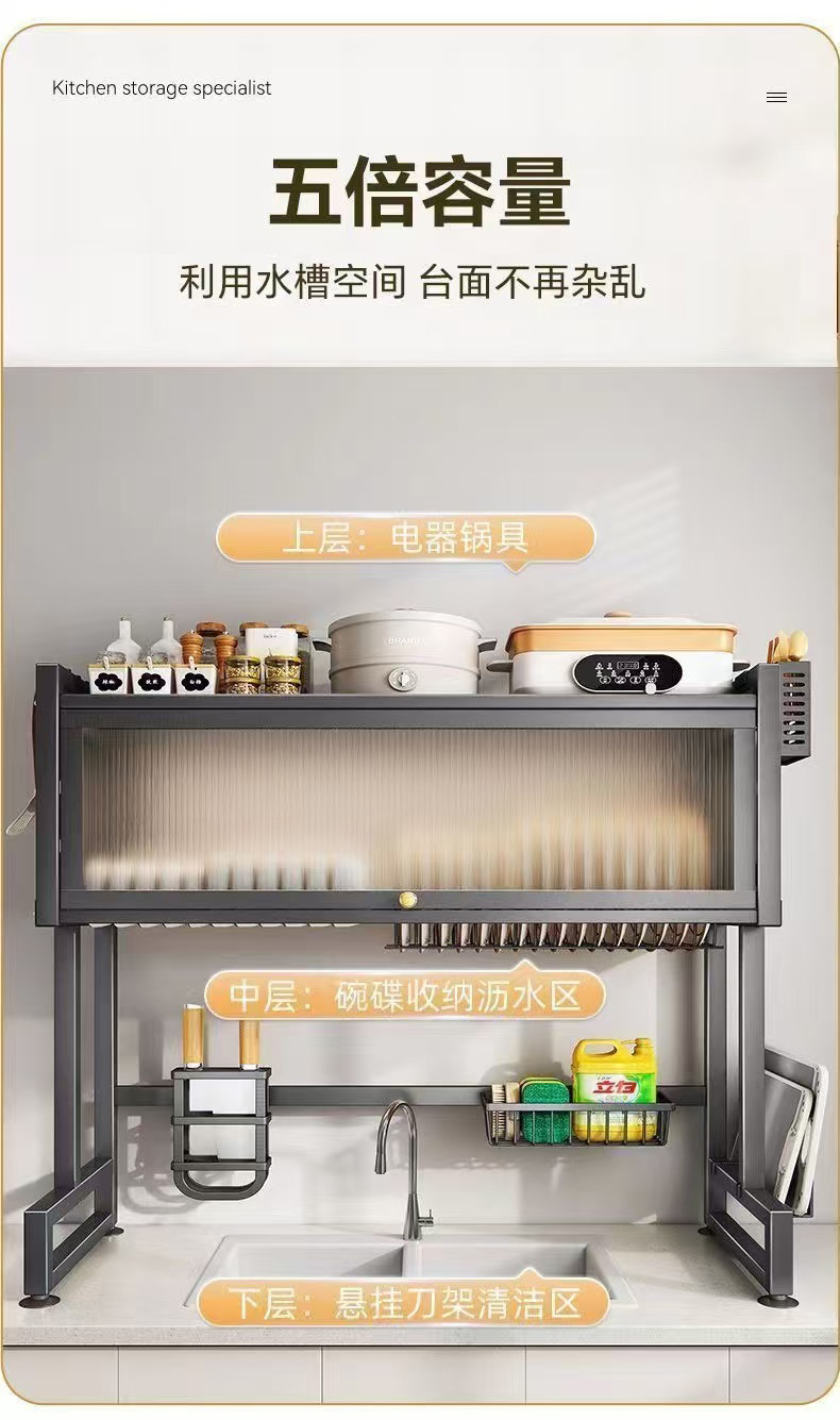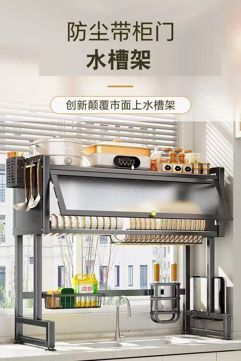 Estante de drenaje de cocina, a prueba de polvo para el hogar, estante para tanques de almacenamiento con puerta de gabinete, gabinete de drenaje transparente multiusos sin perforación