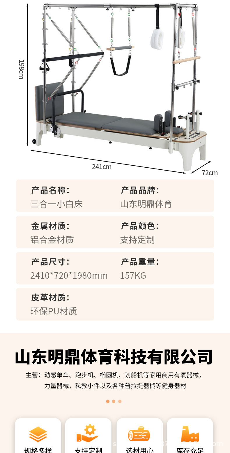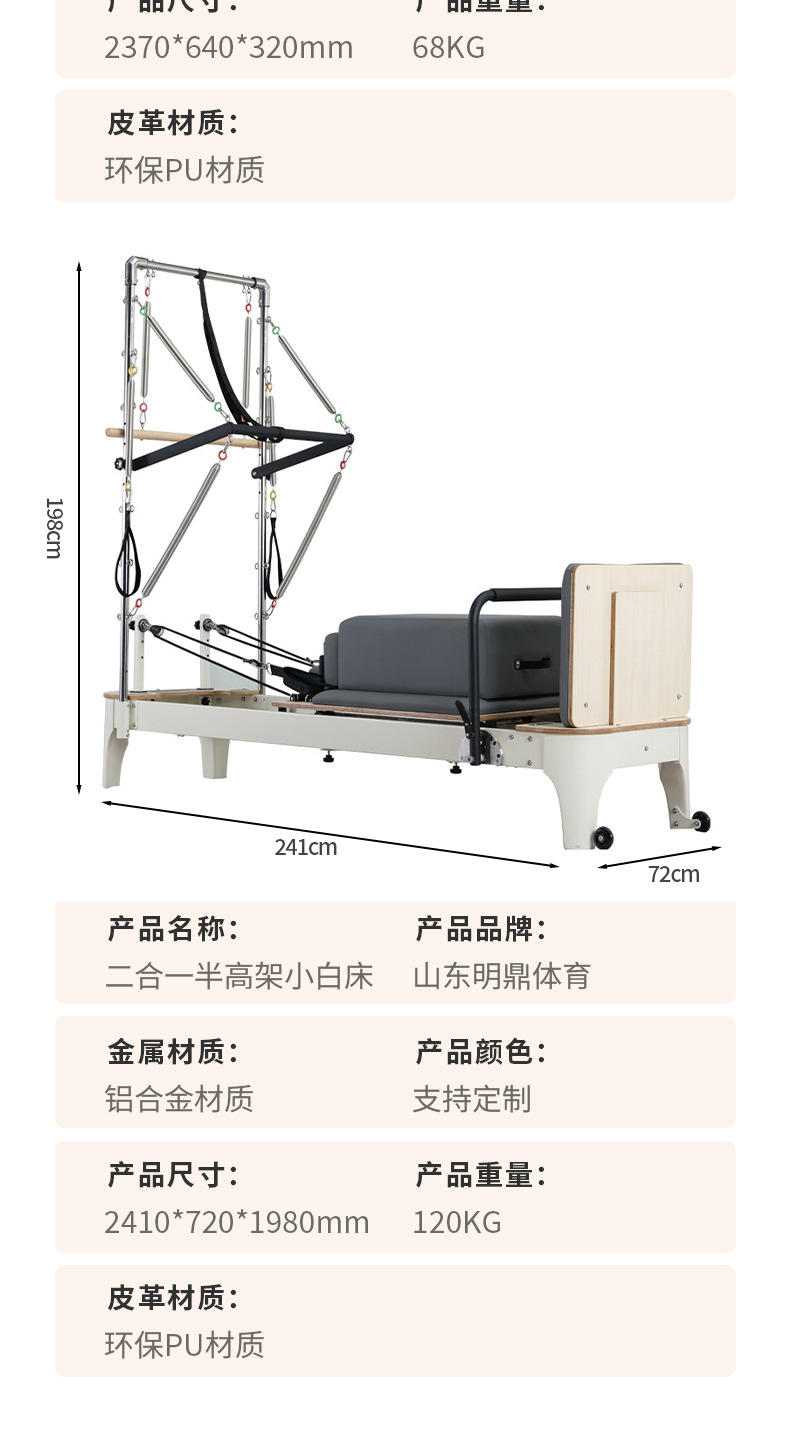 | Núcleo de pista completa de cama blanca pequeña con esquinas redondeadas | Estudio de yoga, equipo de fitness, silla estable Cadillac tres en uno |
