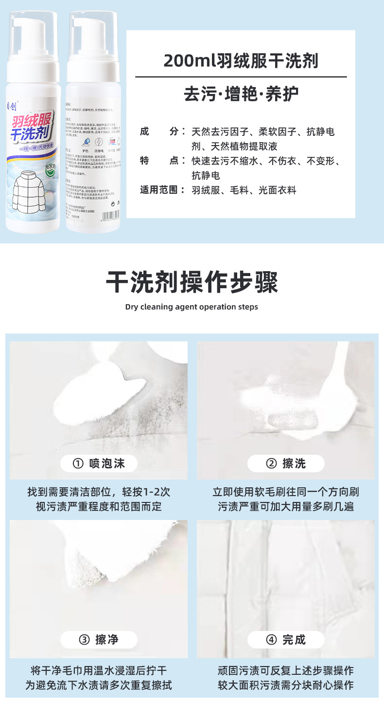 Limpieza en seco para chaqueta de plumón, limpiador en seco para chaqueta de plumón integrado, limpiador en seco para chaqueta de plumón, limpiador en seco para eliminación de manchas de aceite.