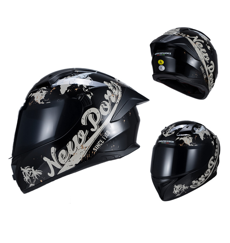 Cascos de motocicleta para hombres y mujeres, motocicleta retrógrado pedaleos de crucero de simulación de cuatro estaciones 3C personalidad anti-nebra casco completo