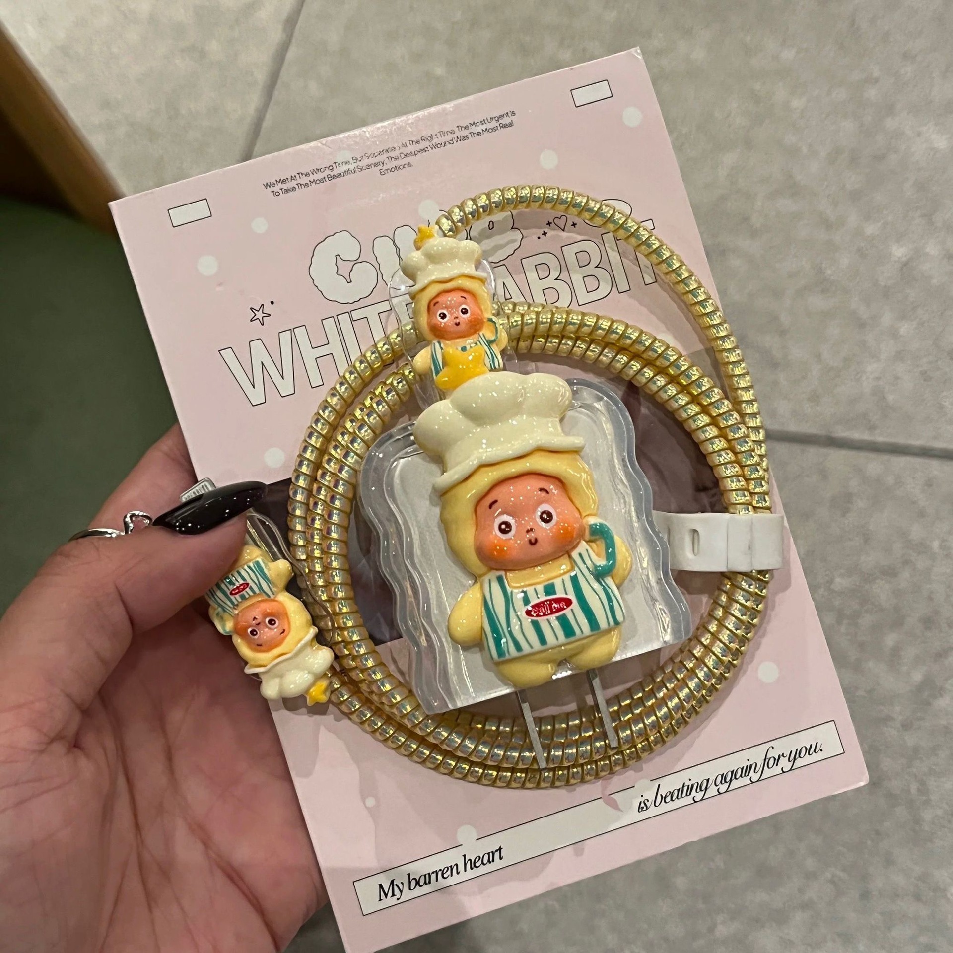 Juego de cuatro piezas amarillo [protección de cabeza + protección de cable + protección de ambos extremos]