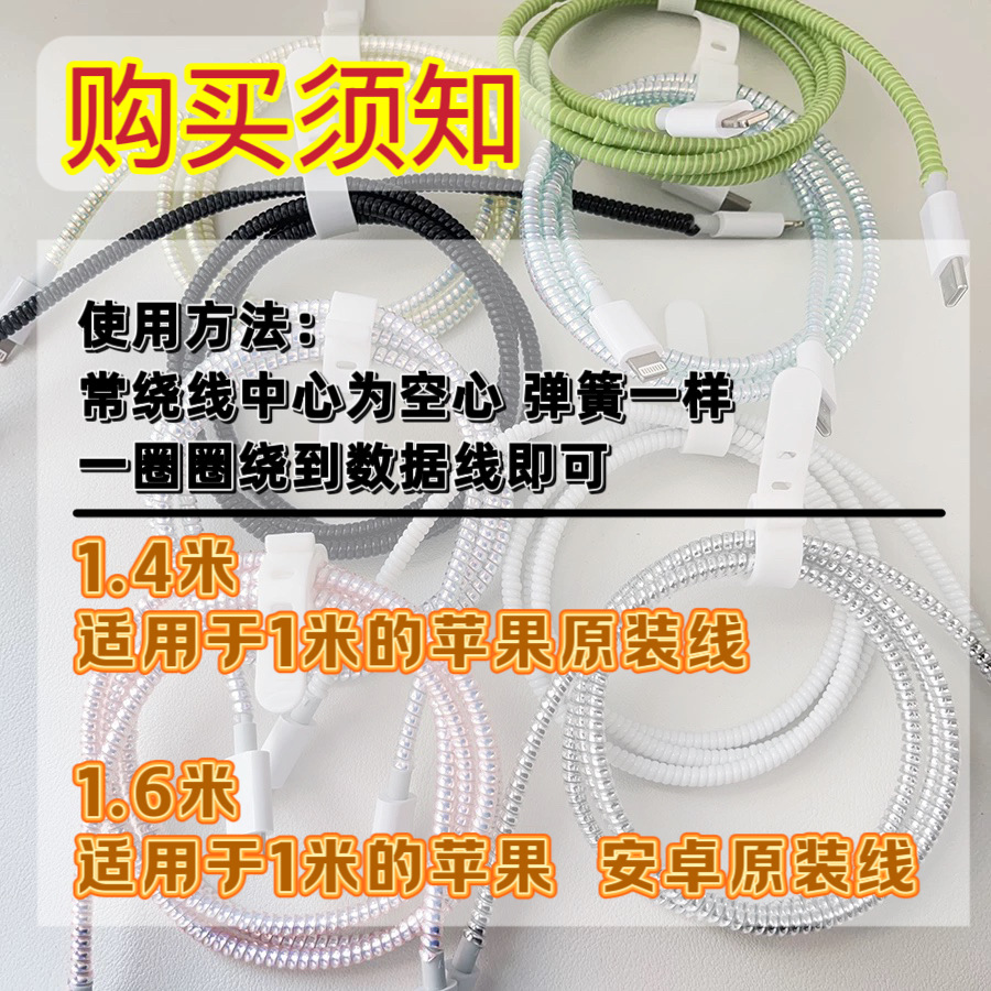 1.4 Cuerdas de protección de color sólido de 1,6 metros de cable de datos para línea de teléfono celular anti-ruptura cargador de cable de bobinado