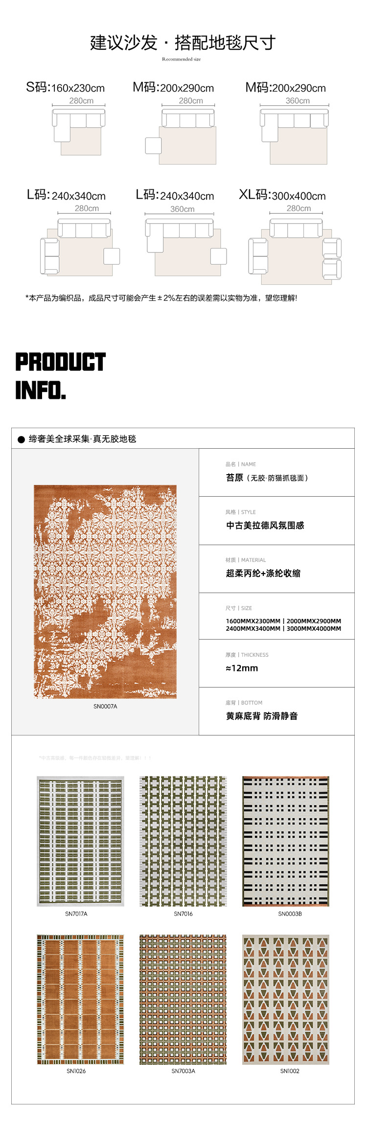Alfombras de sala de estar de estilo medieval sin pegamento ambiental mantas de mesas de té gruesas de color cálido alfombras tejidas directas de fábrica