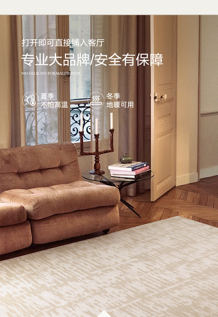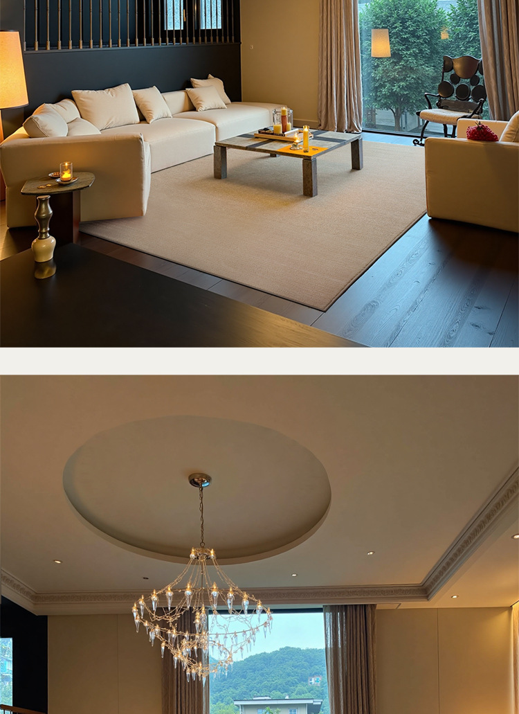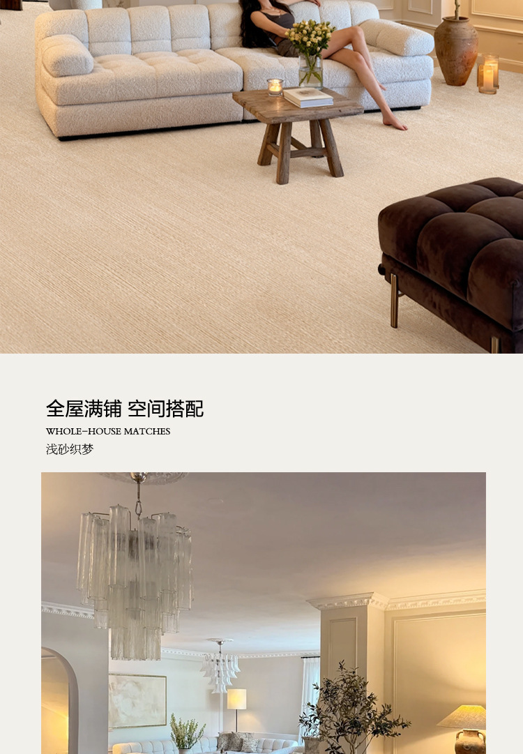 Gran área cubierta de alfombra sala de estar super suave acoplamiento sin pegamento sin aldehído sólido color ligero alfombra de cama de lujo villa dormitorio