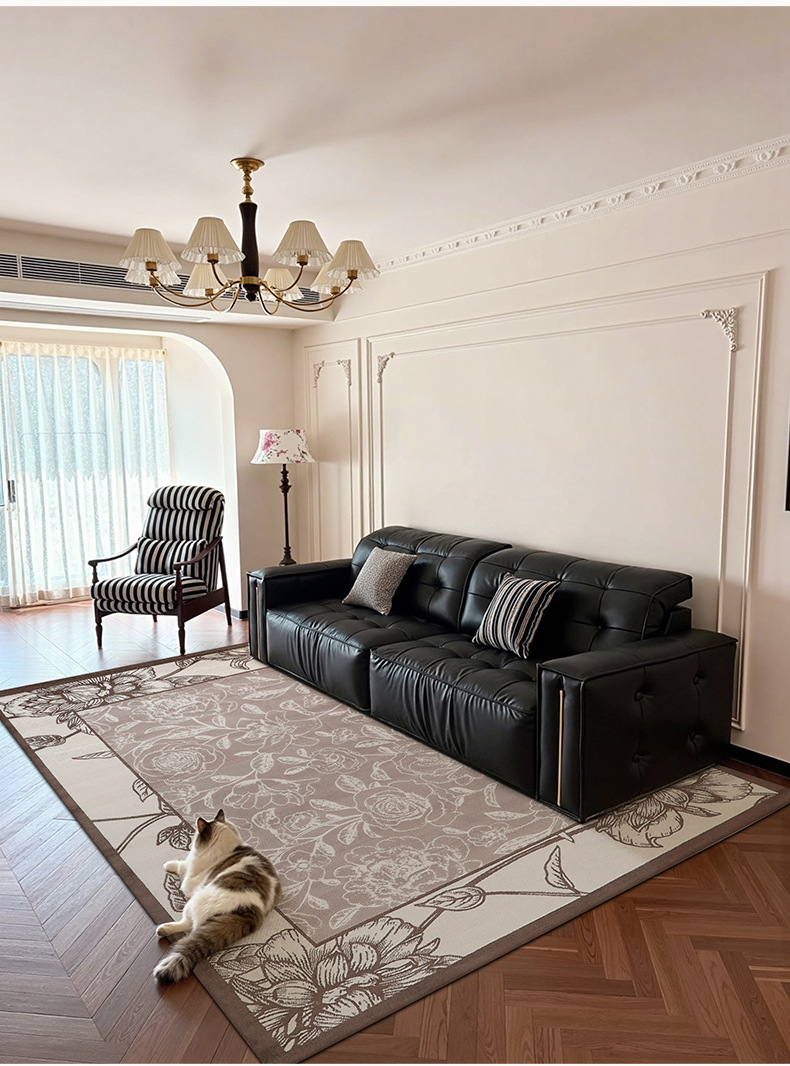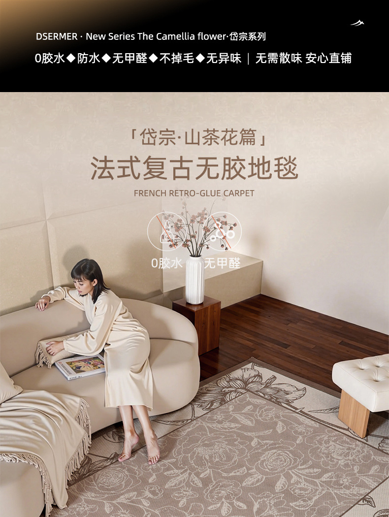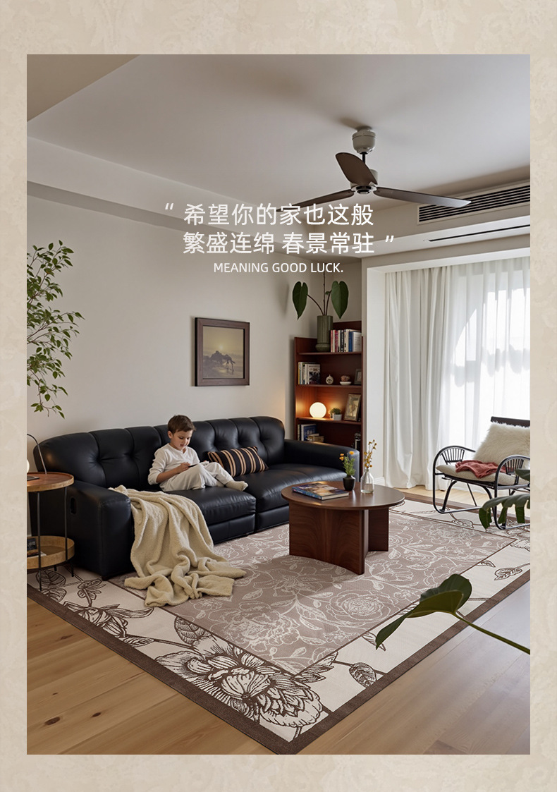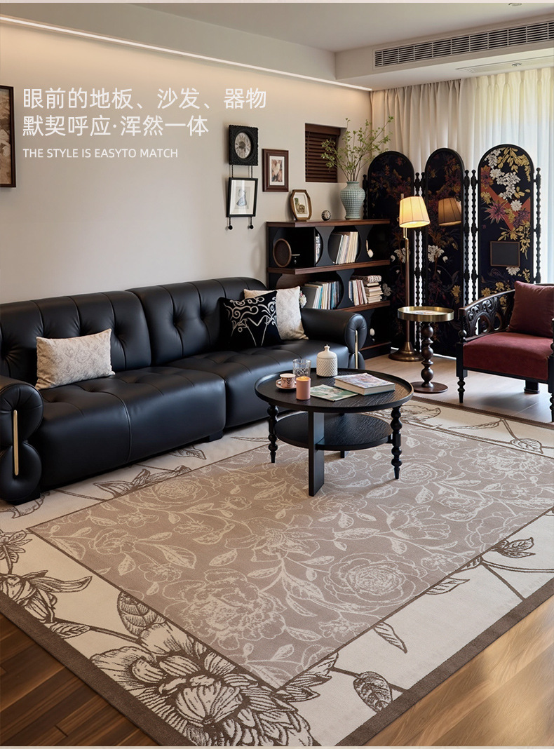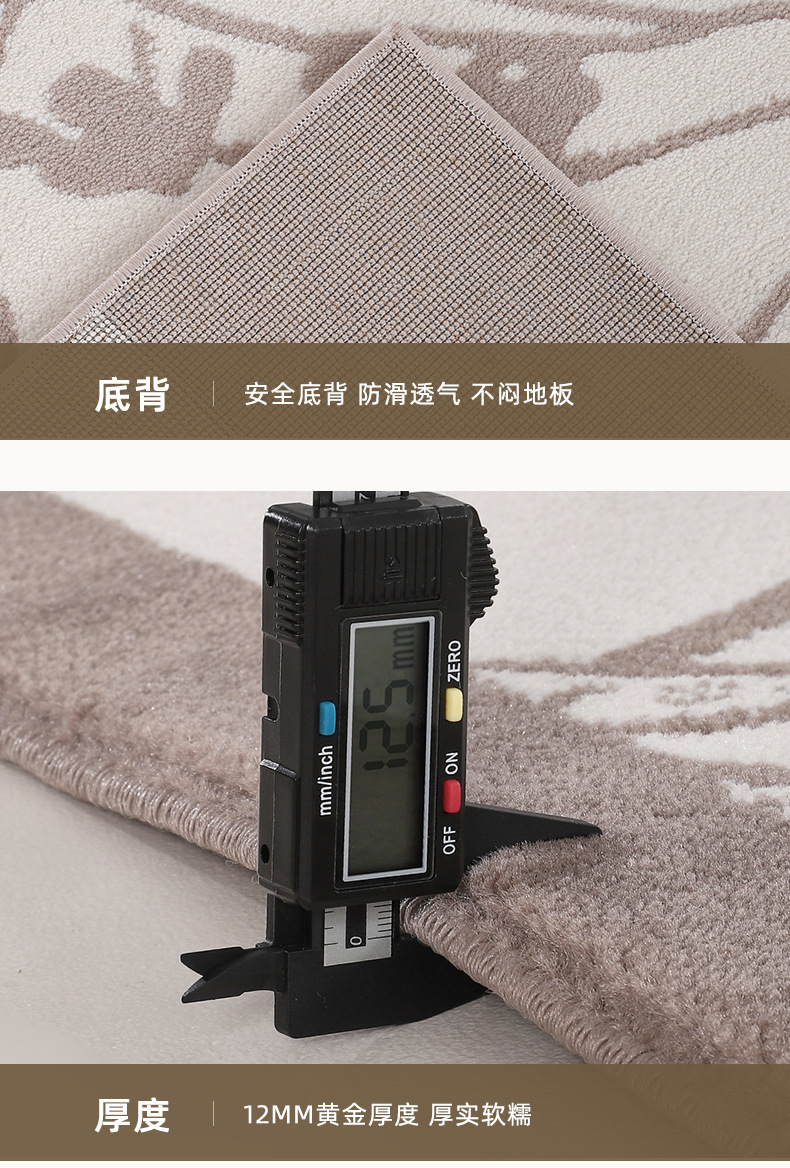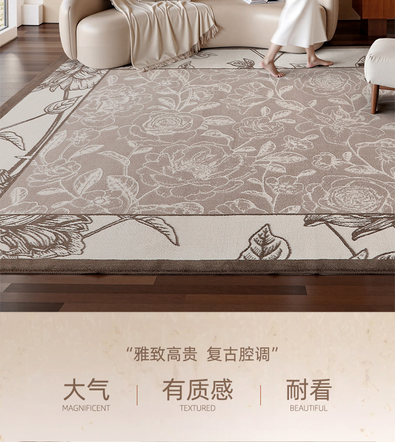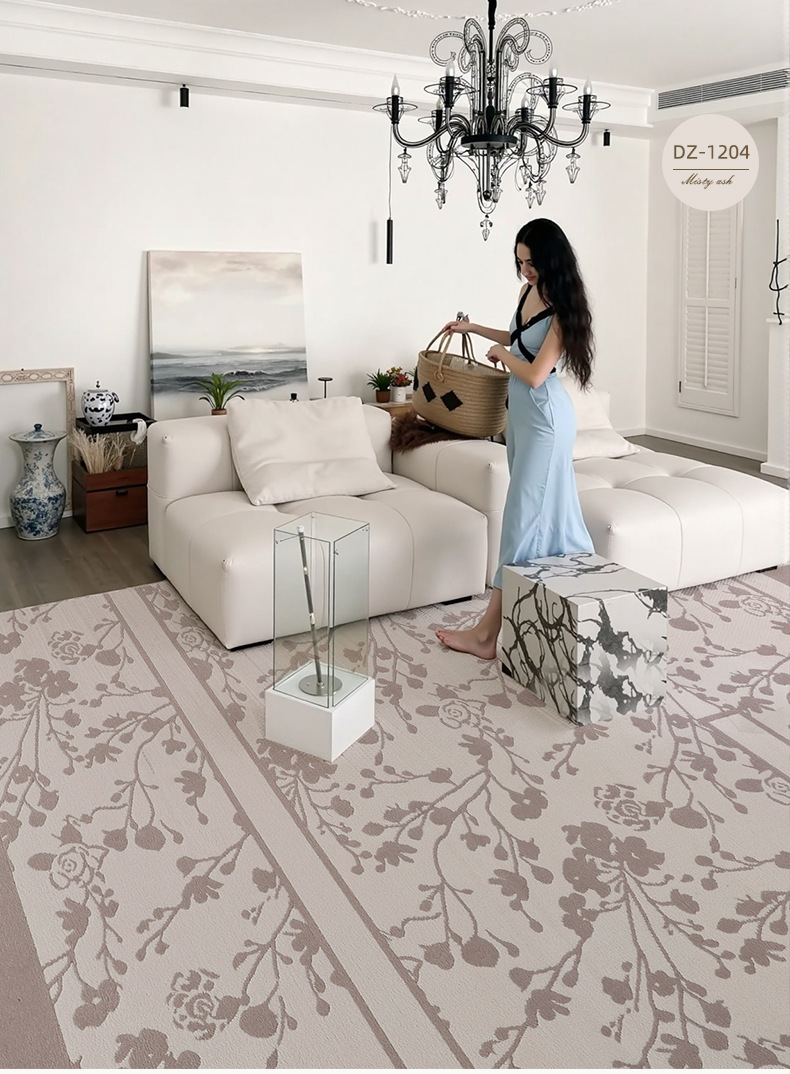 Foshan alfombra sala de estar engrosada 12mm estilo retro impermeable sin pegamento dormitorio gran área de alfombra de alfombra de alfombra de villa