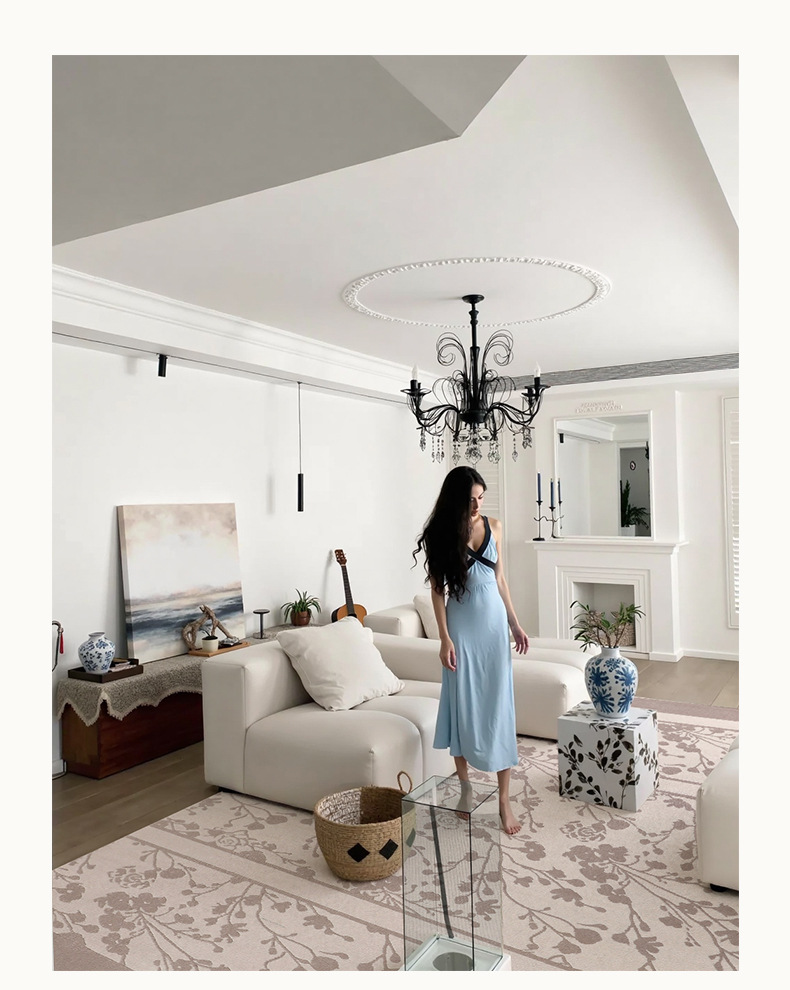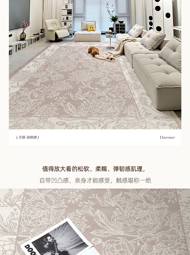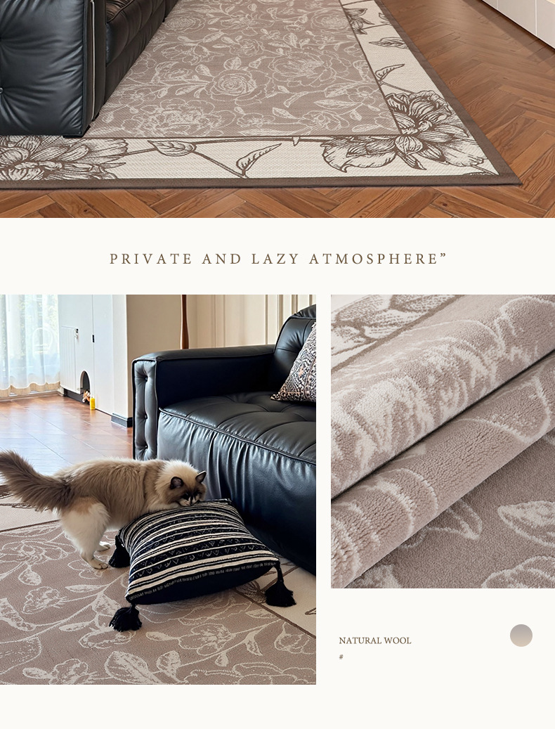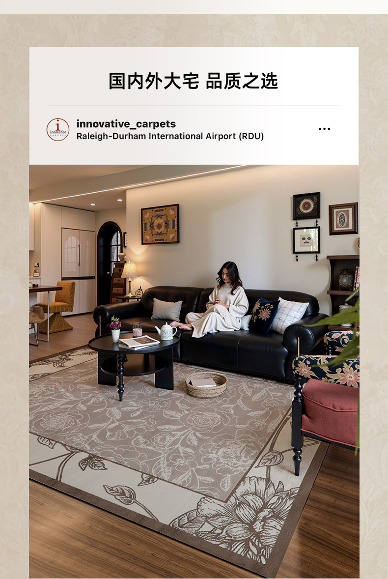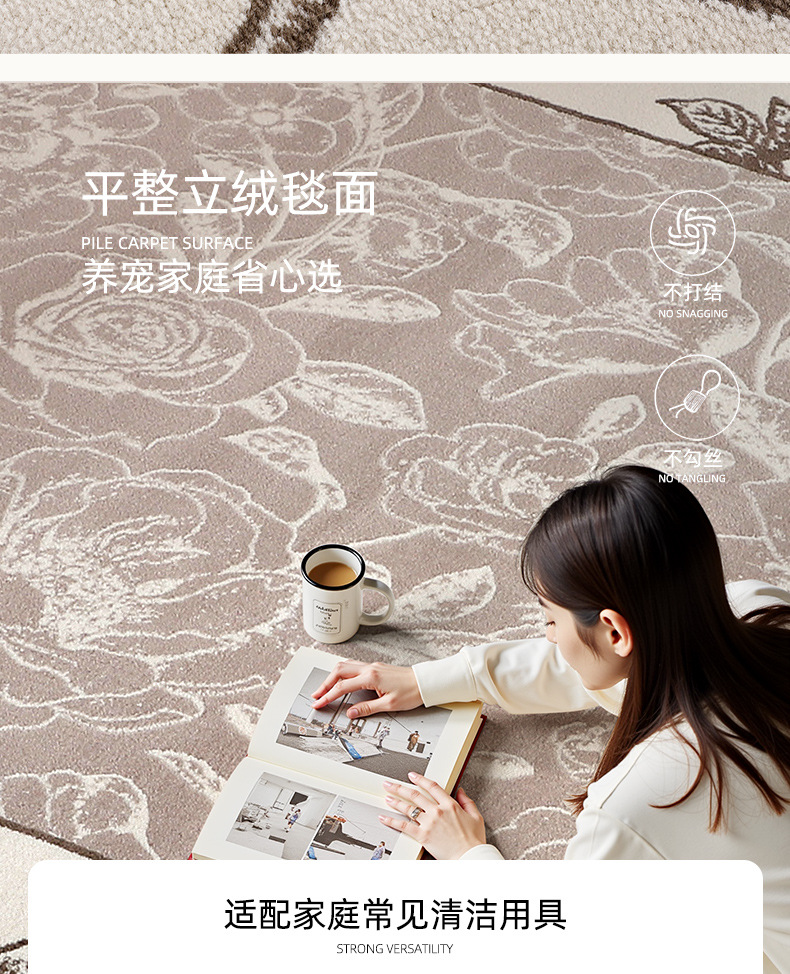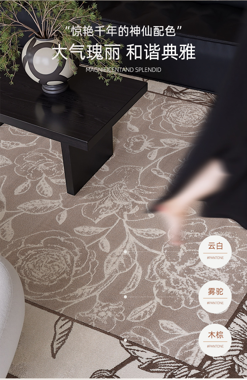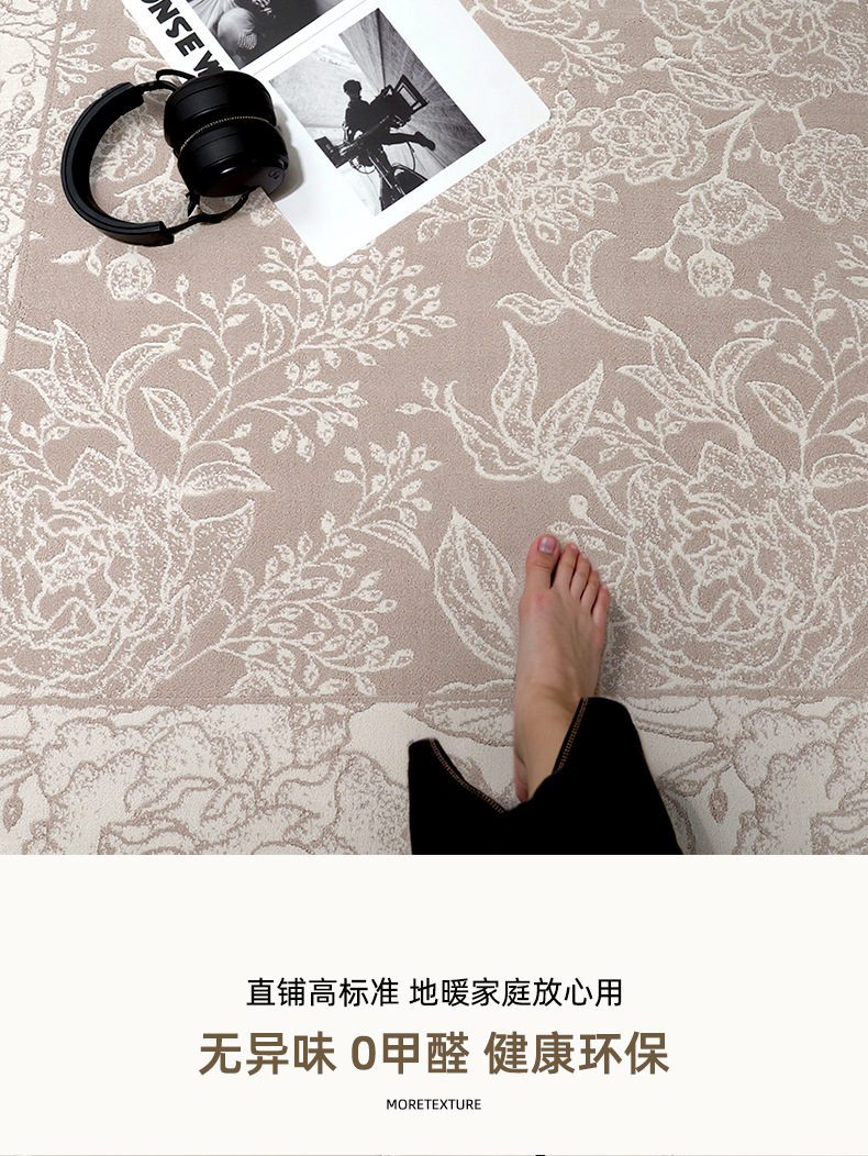 Foshan alfombra sala de estar engrosada 12mm estilo retro impermeable sin pegamento dormitorio gran área de alfombra de alfombra de alfombra de villa