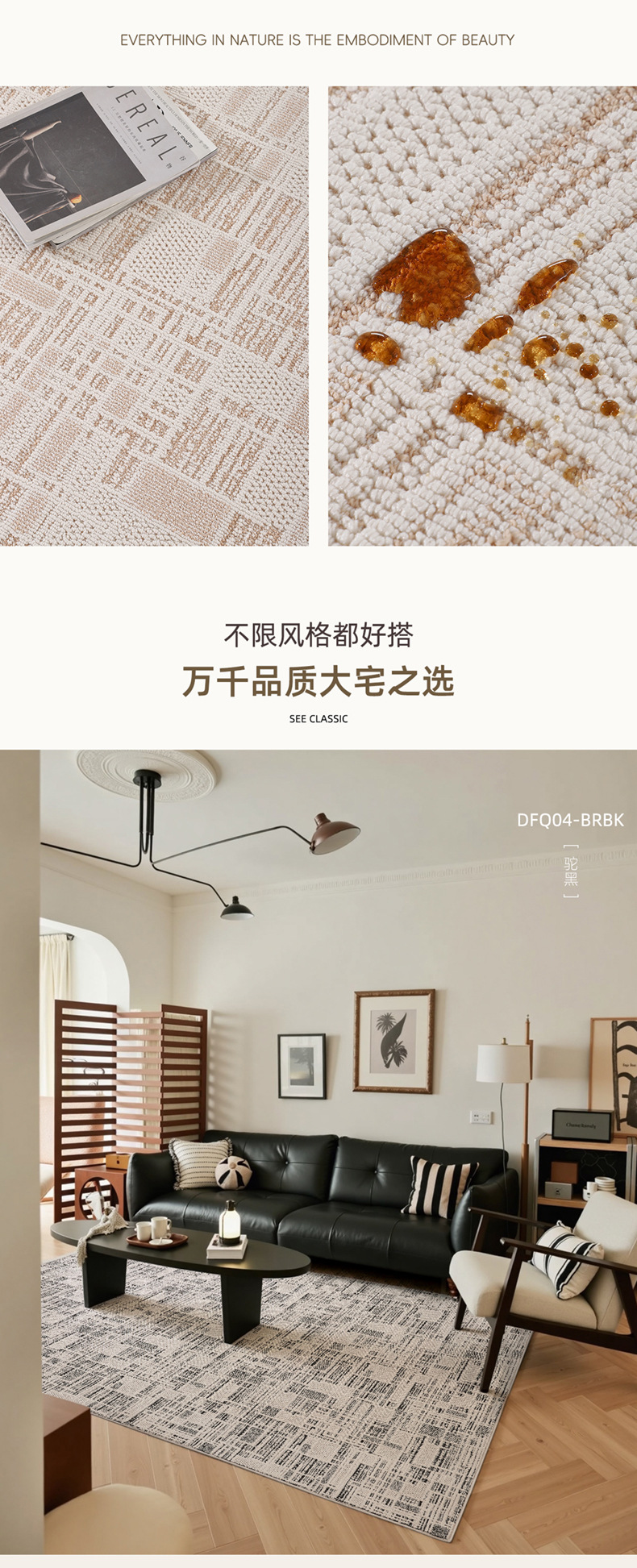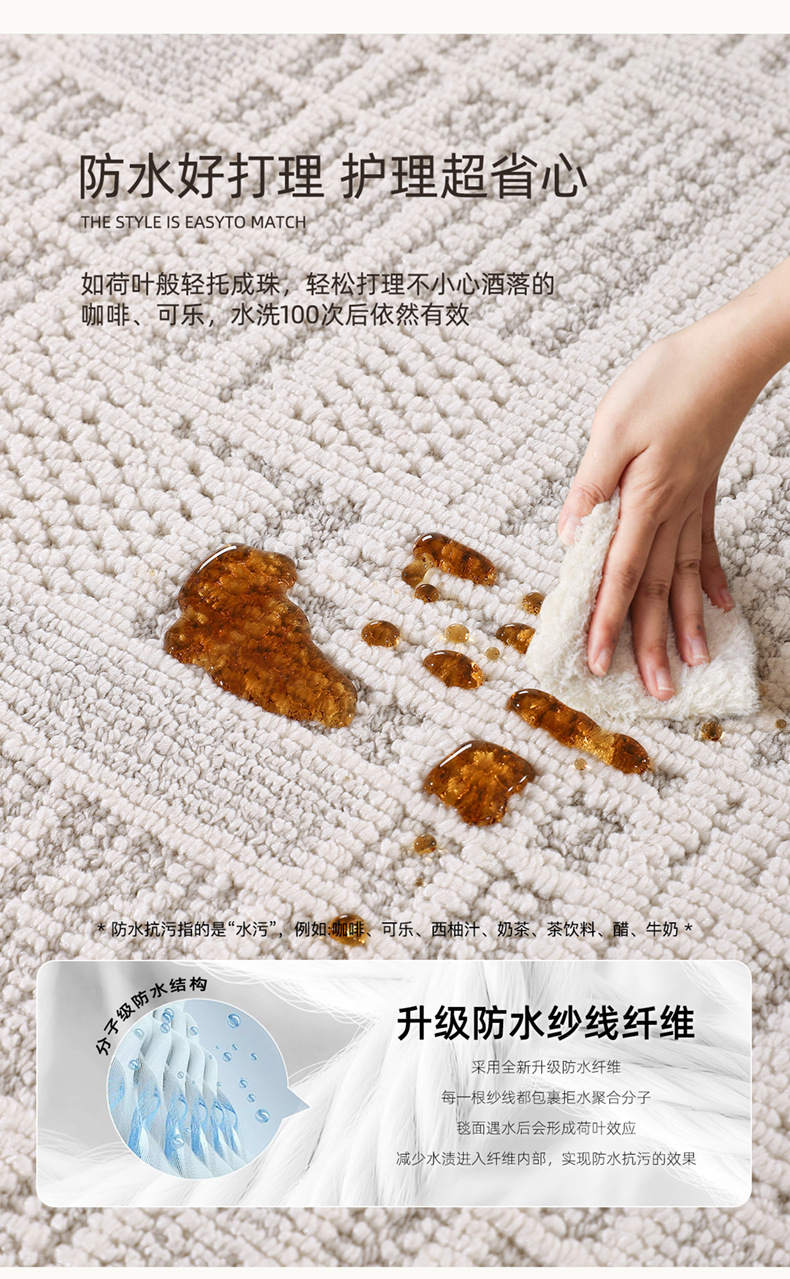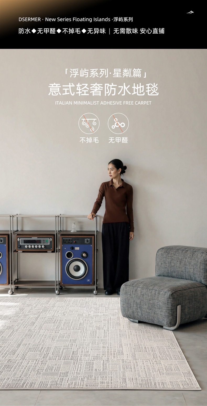 Alfombra de lujo ligera italiana personalizada sala de estar impermeable a prueba de contaminación 2025 nueva alfombra tejida sin pegamento sin aldehído antibacteriano