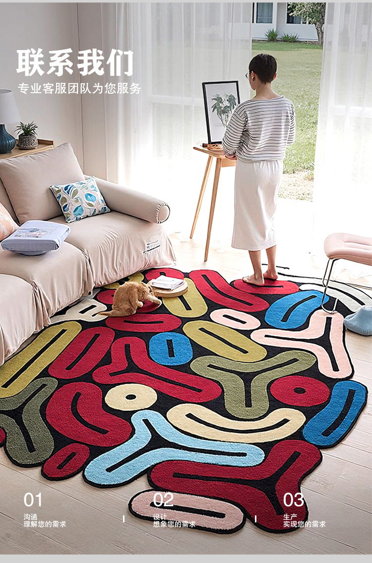 Alfombra de forma especial abstracta de dopamina dormitorio para niños espesación sin lavado impresión de nylon lana de poliéster dibujo personalizado