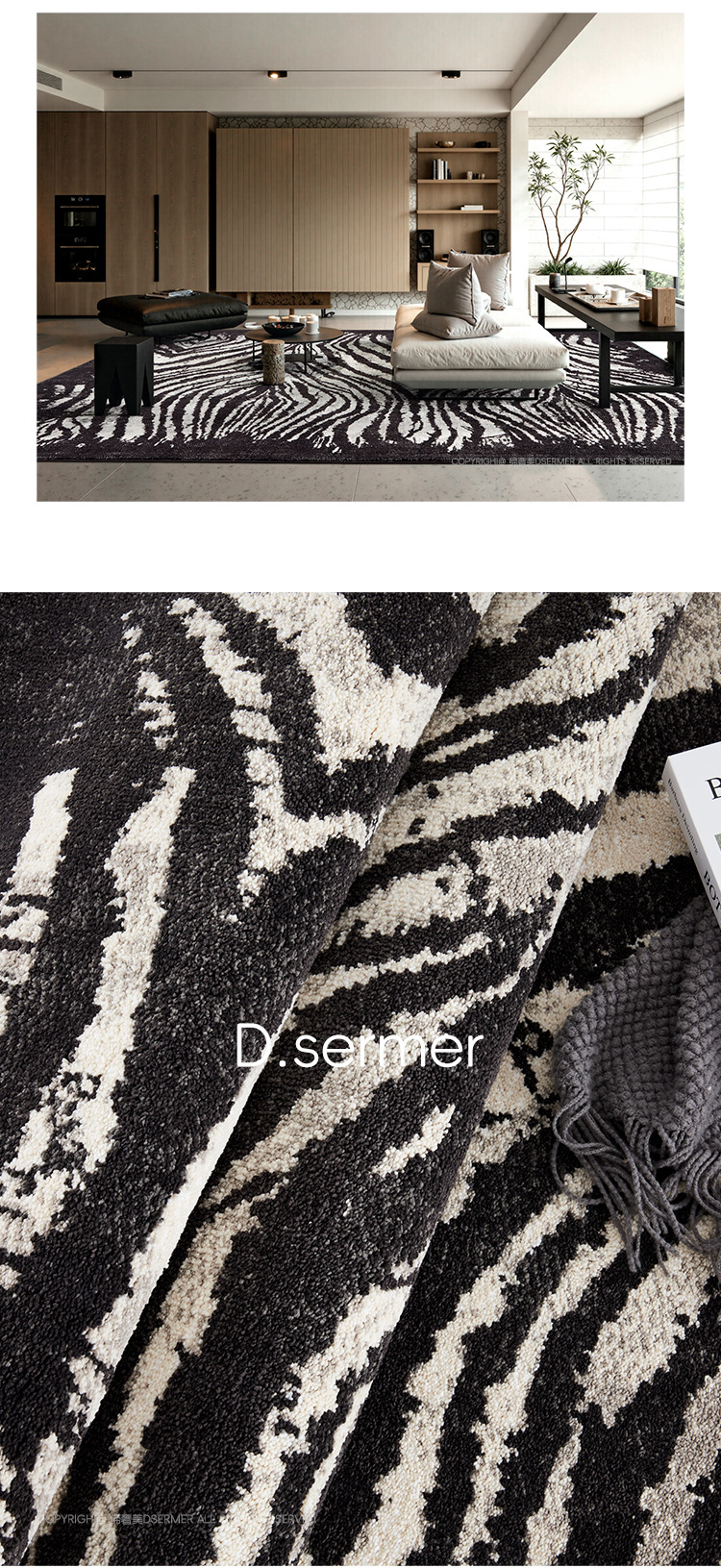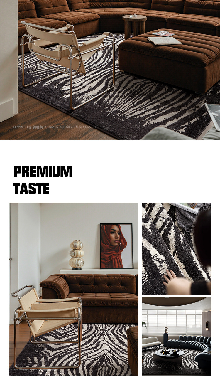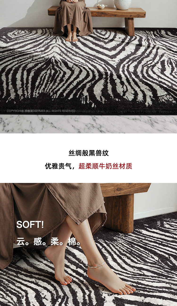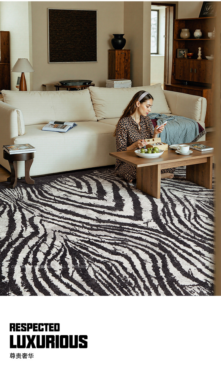 Alfombra a rayas negras sala de estar lujoso antibacteriano de alto nivel libre de aldehído retrógrado leche de seda de leche de cama