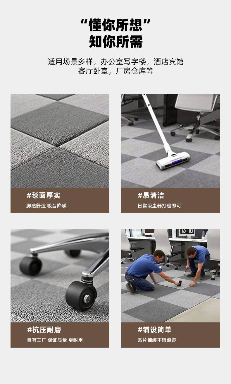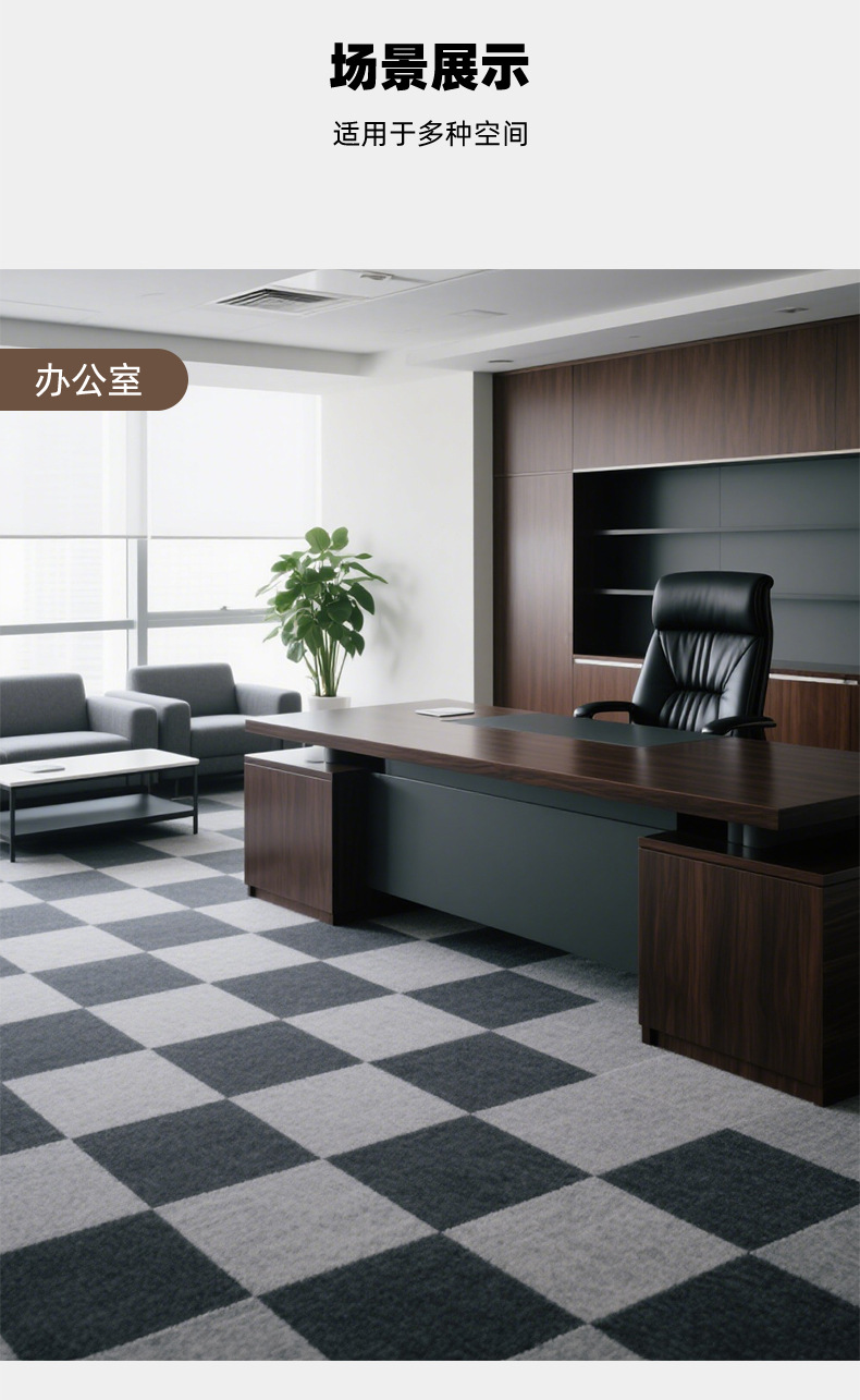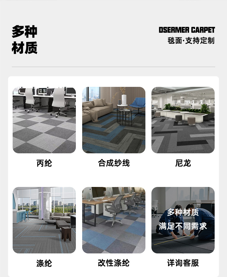 Edificio de oficinas cubierto alfombra cuadrada de empalme asfalto fondo resistente a la suciedad fácil de golpear alfombra de oficina aislante de sonido personalizada