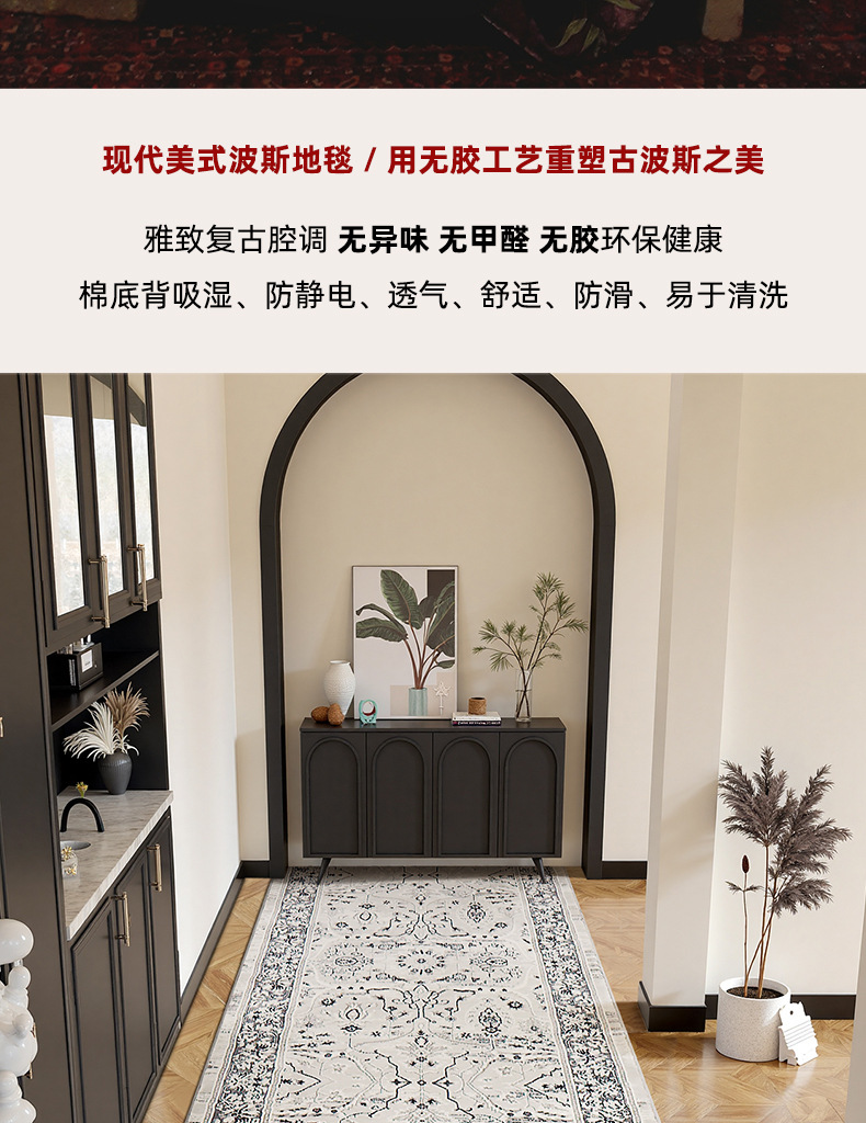 Se puede cortar pasillo pasillo pasillo sensación de alta calidad alfombra larga persa comercial sin formaldehído, resistente a la suciedad, alfombra de piso de lujo ligera para el hogar sin pegamento