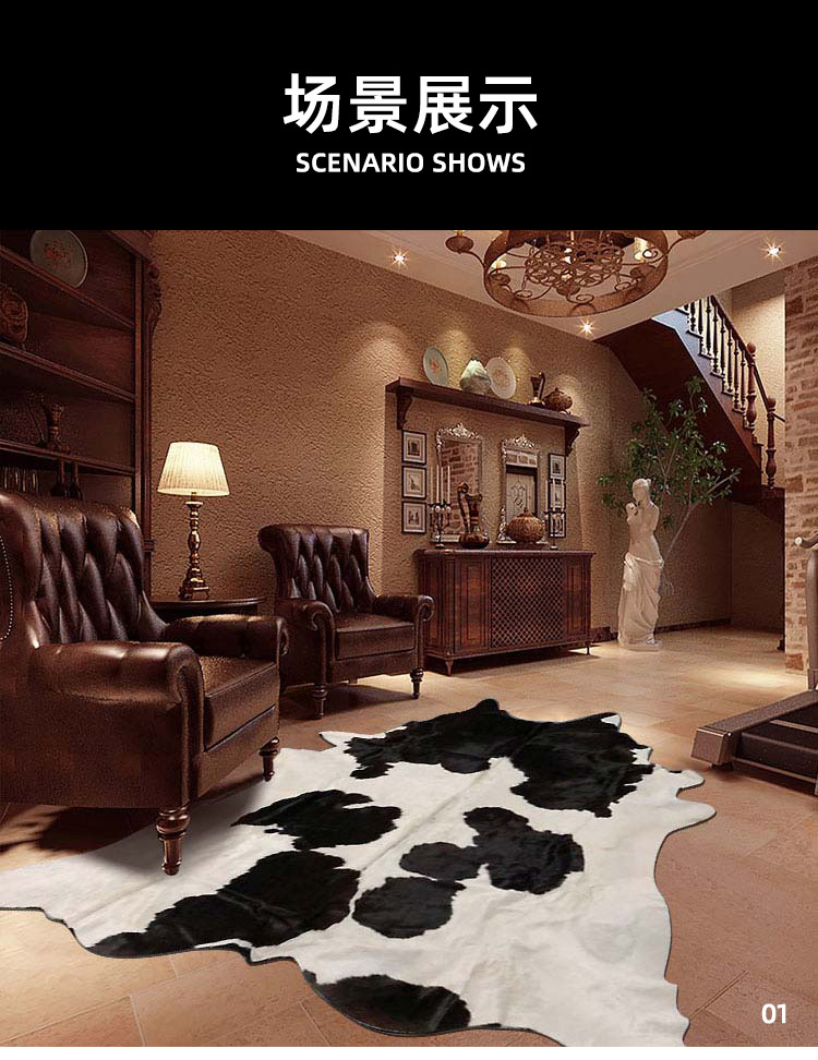 Alfombra de piel de vaca natural hecha a mano sala de estar doméstica irregular alfombra de piel de vaca real alfombra de mesa de té alfombra personalizada
