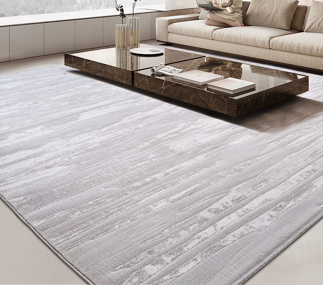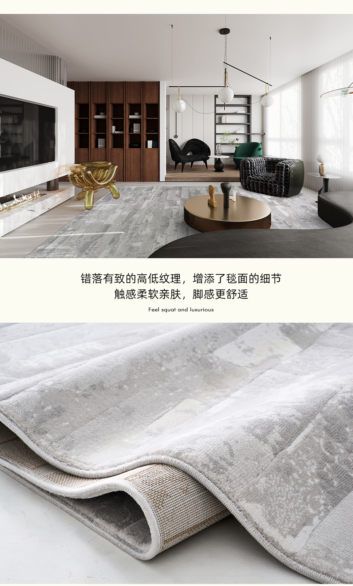 Alfombras modernas de lujo ligeras, alfombras anti-deslizantes de gran área para dormitorios fáciles de manejar, alfombras antibacterianas de alta calidad a prueba de agua