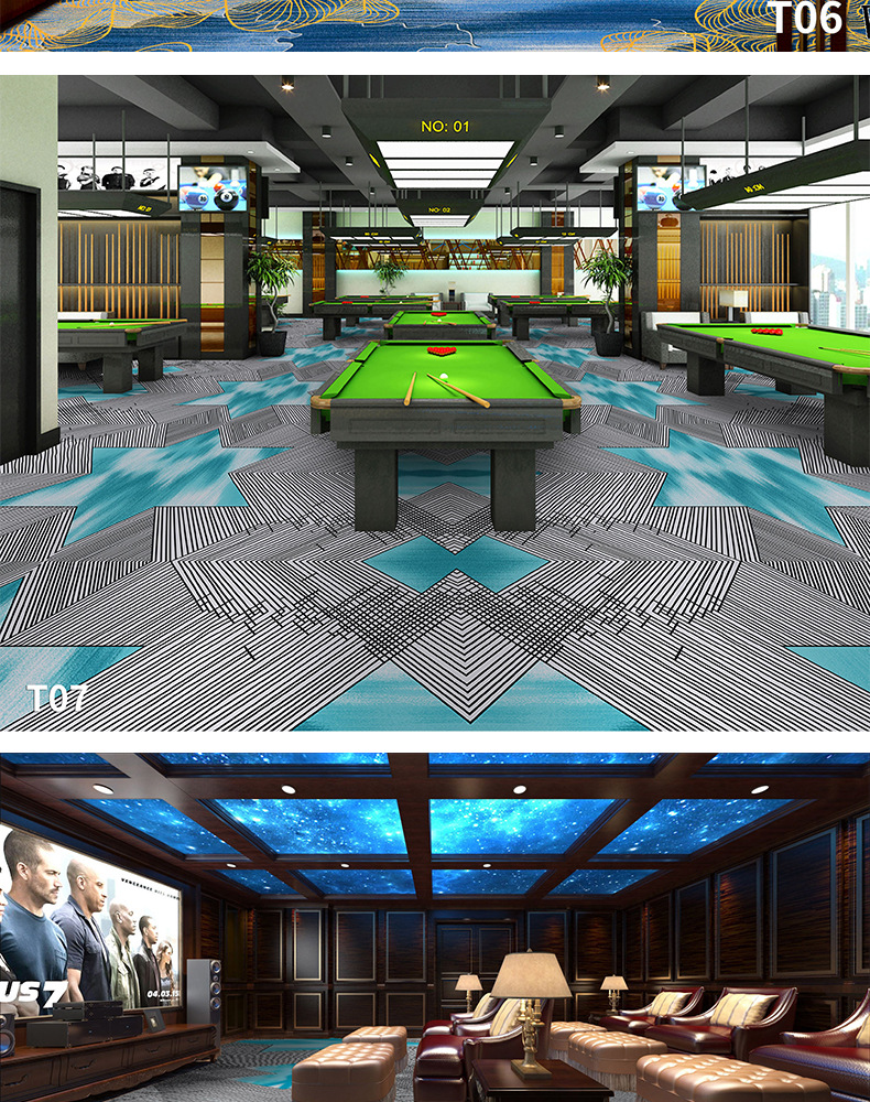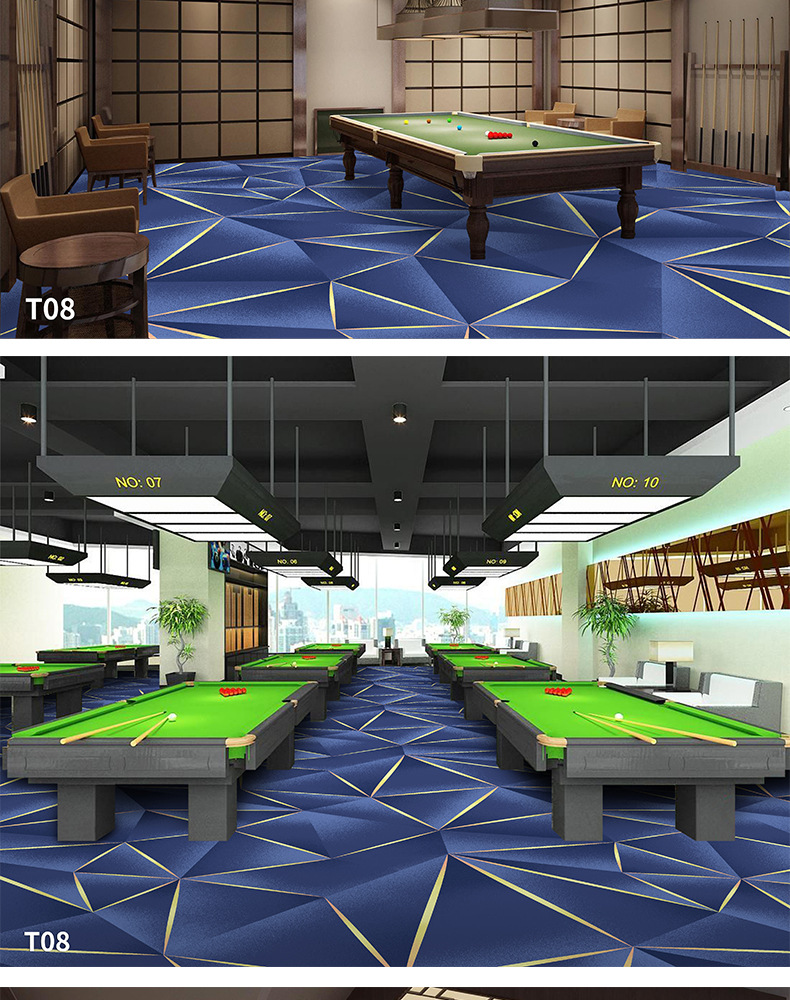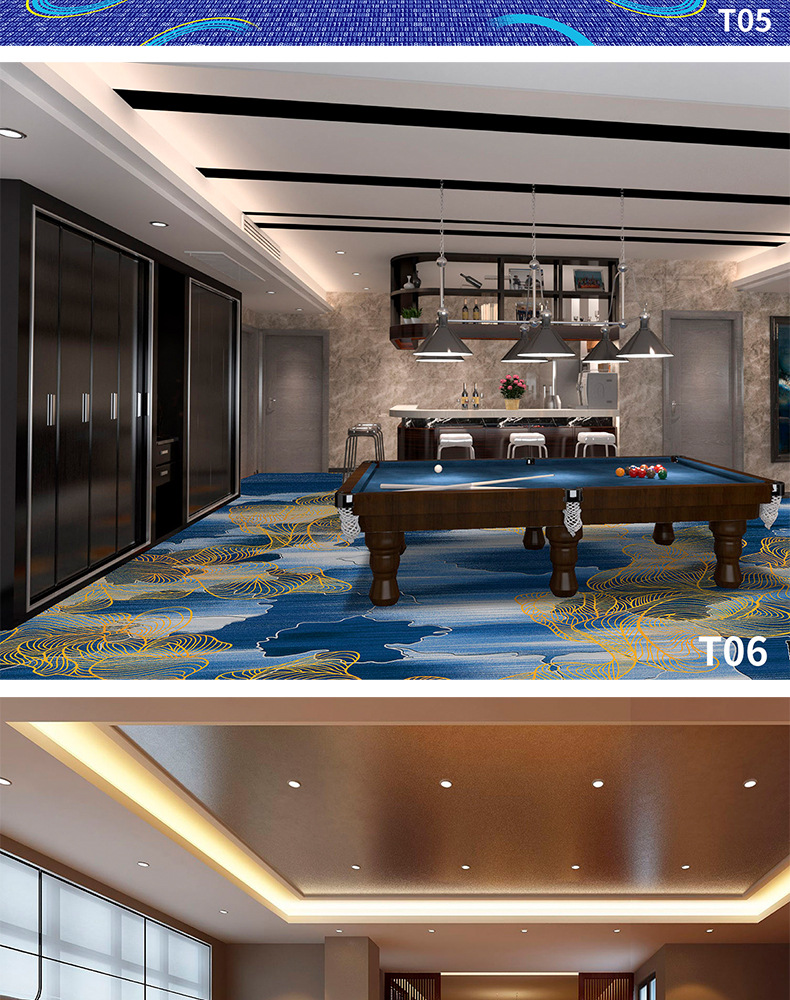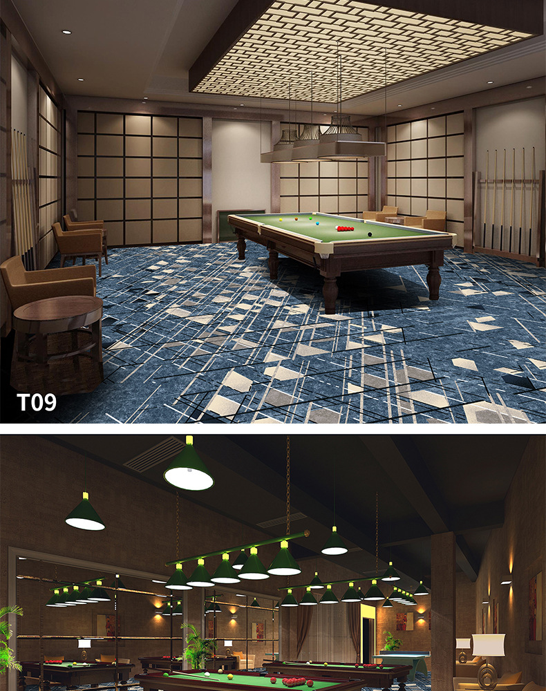 Salón de billar, oficina del hotel, tienda completa dedicada, alfombra ignífuga, pasillo grueso, tienda completa, alfombra comercial personalizada