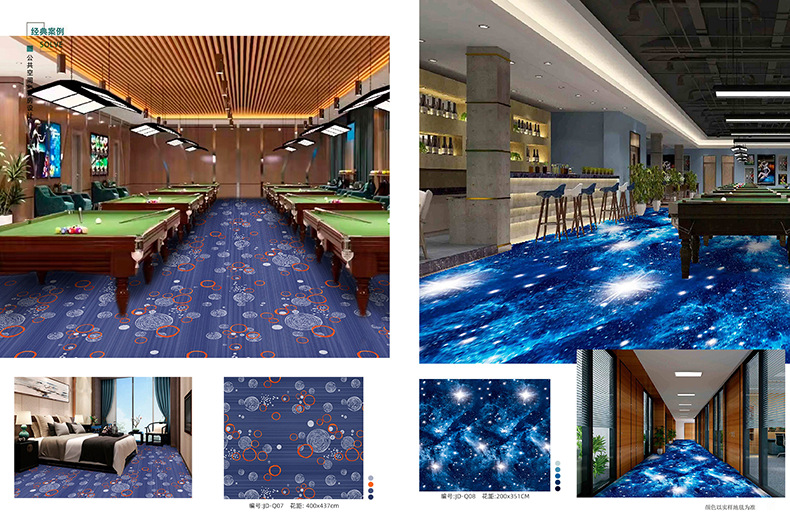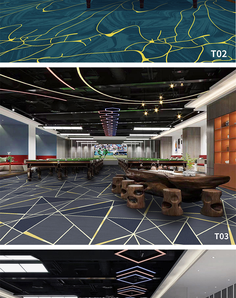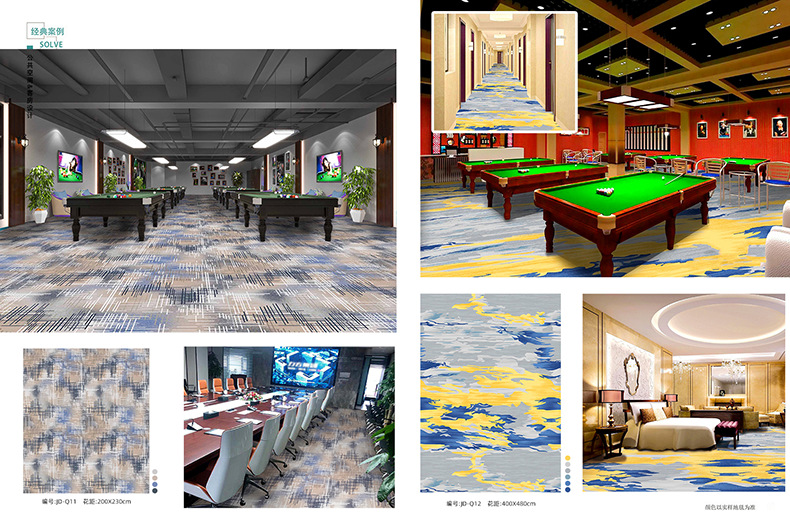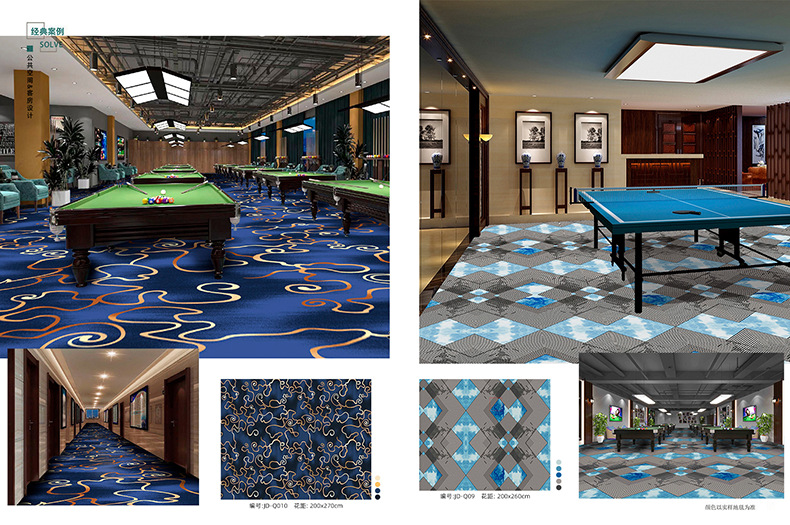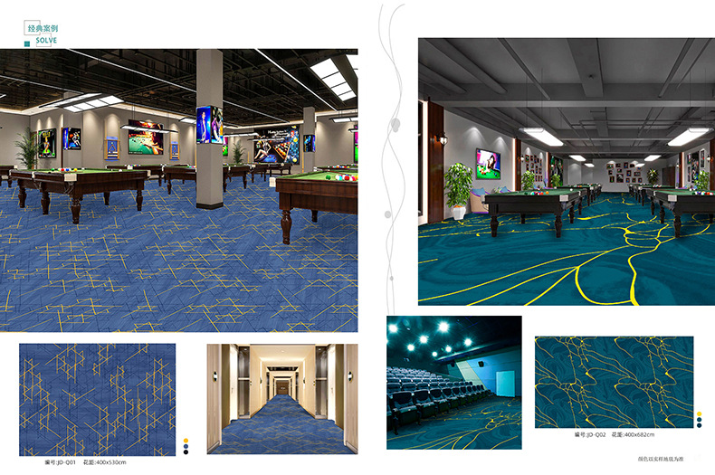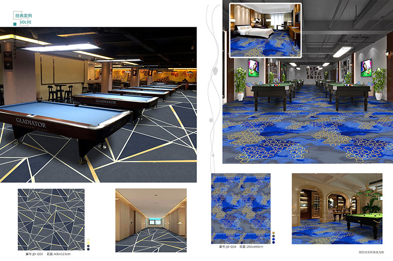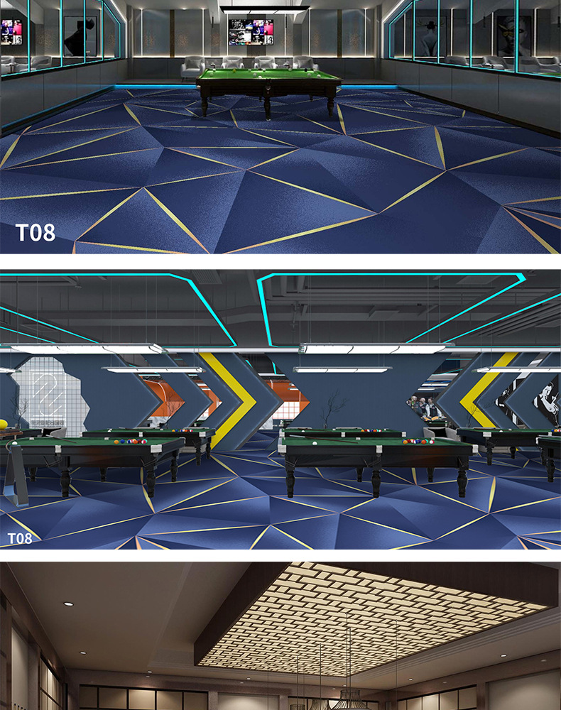 Salón de billar, oficina del hotel, tienda completa dedicada, alfombra ignífuga, pasillo grueso, tienda completa, alfombra comercial personalizada