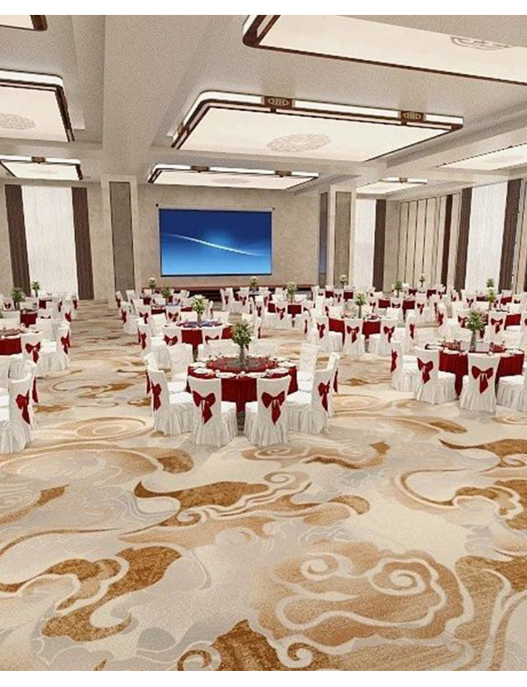 Hotel piso sala de reuniones alfombra Akmin resistente al fuego impresión sucia alfombra comercial salón de baile personalizado