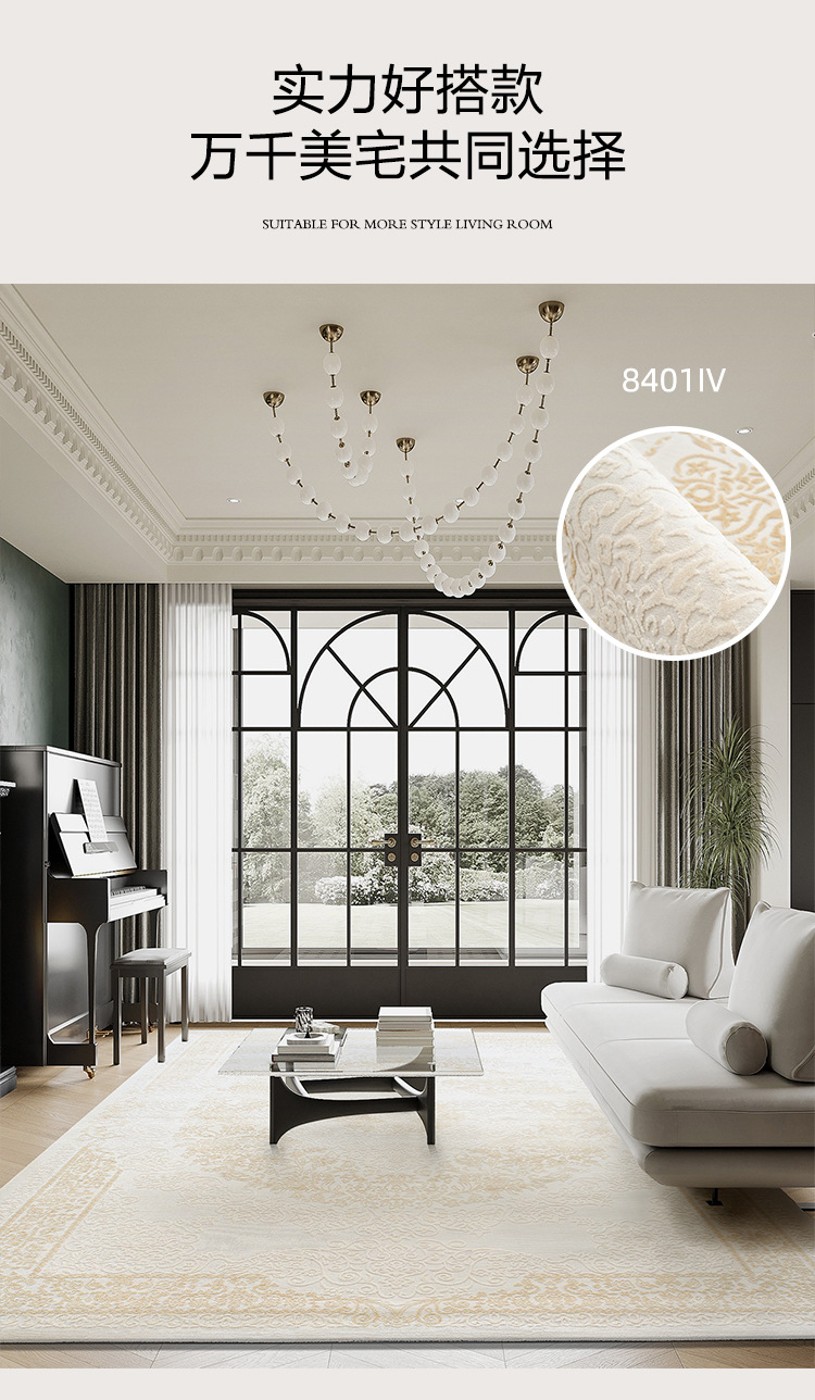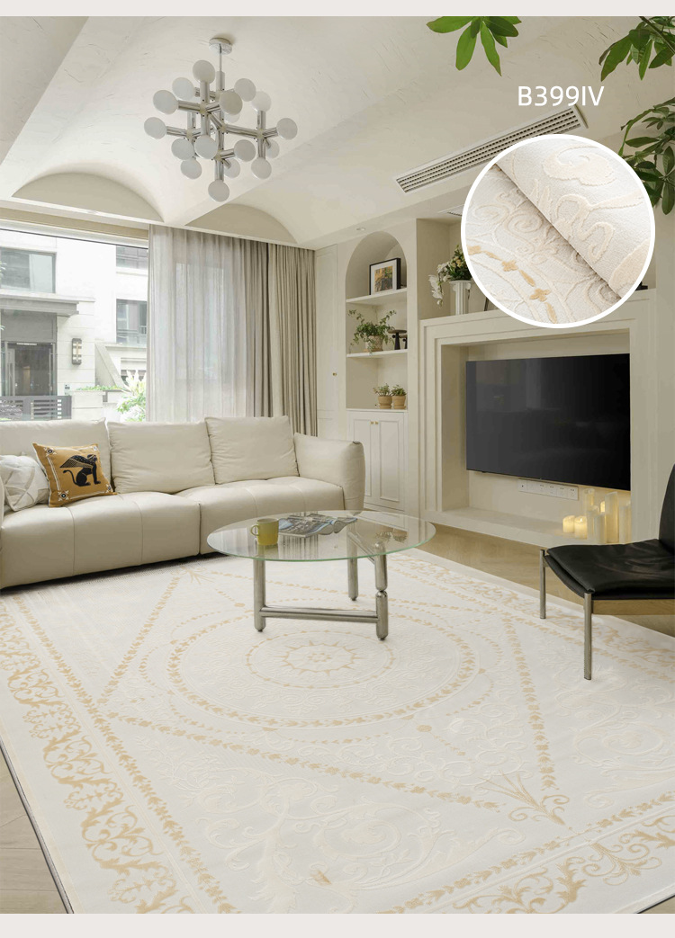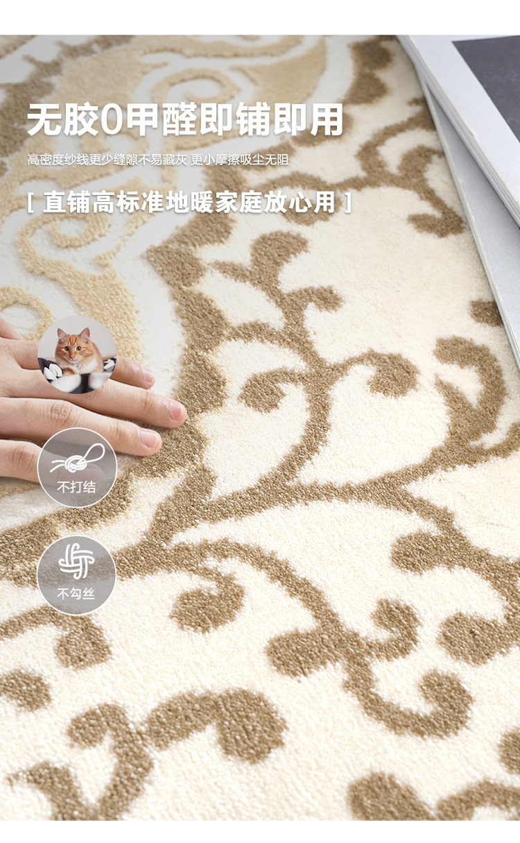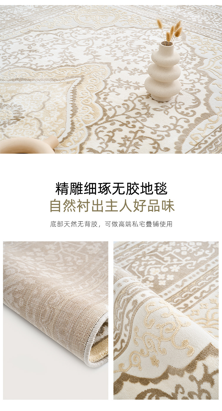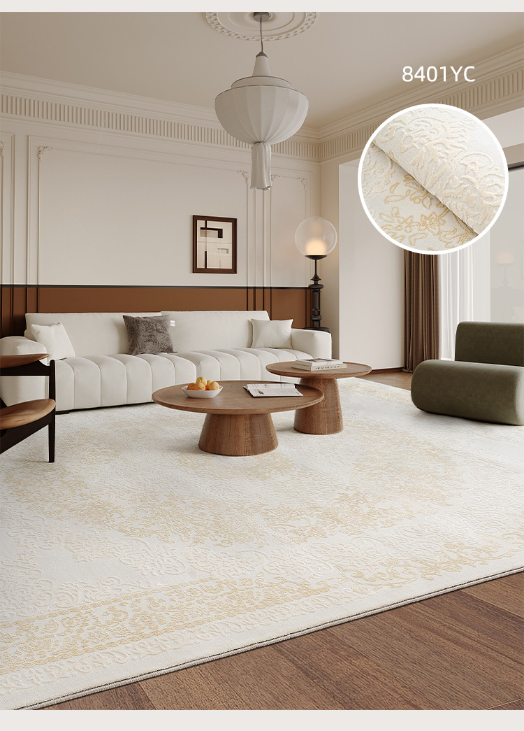 Alfombra de color crema para sala de estar, gruesa y resistente a las manchas, fácil de mantener, adecuada para uso doméstico en dormitorio y estudio, alfombra de cabecera sin pegamento con alta elasticidad.