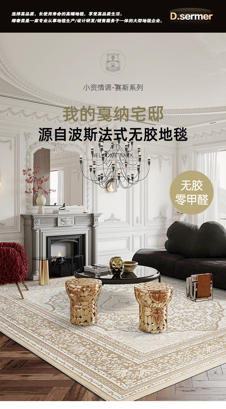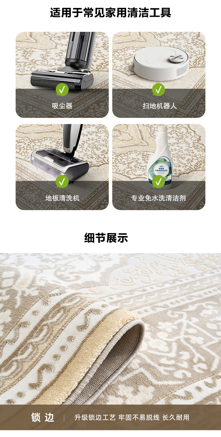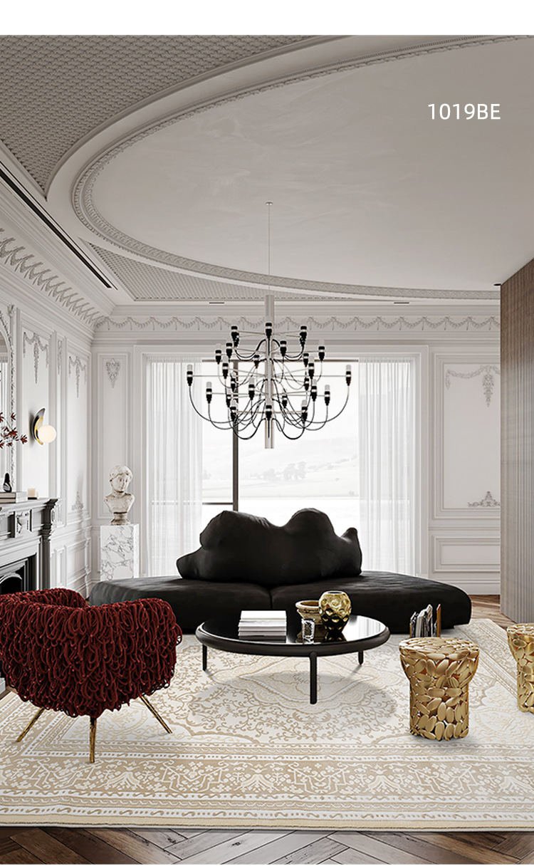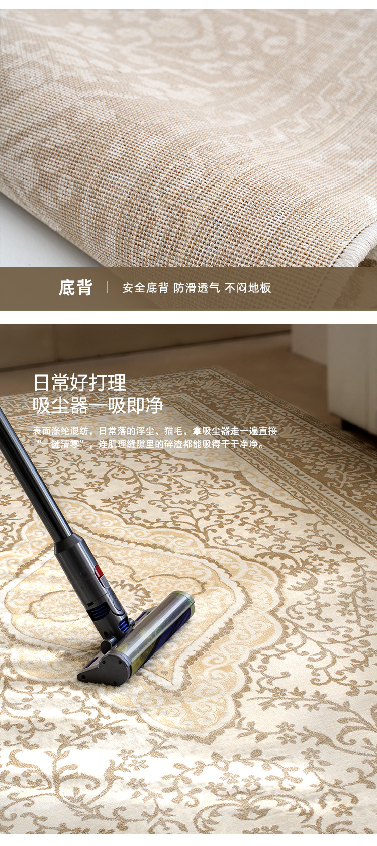 Alfombra de color crema para sala de estar, gruesa y resistente a las manchas, fácil de mantener, adecuada para uso doméstico en dormitorio y estudio, alfombra de cabecera sin pegamento con alta elasticidad.