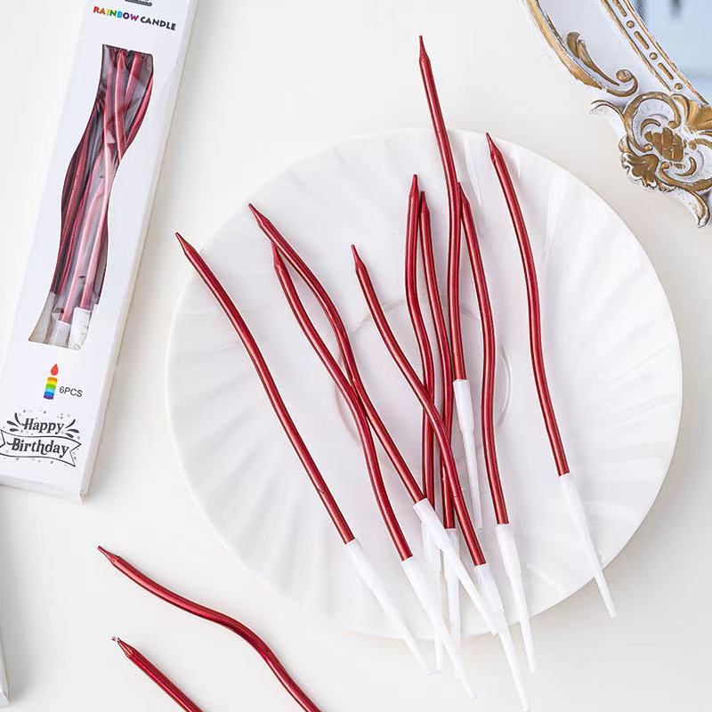 Red roja vela curva roja decoración de pastel Día de San Valentín Año nuevo vela curva espiral pastel de cumpleaños plug-in