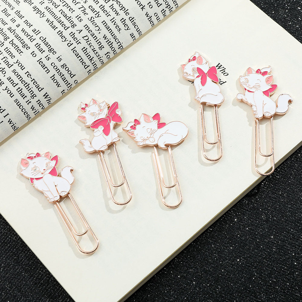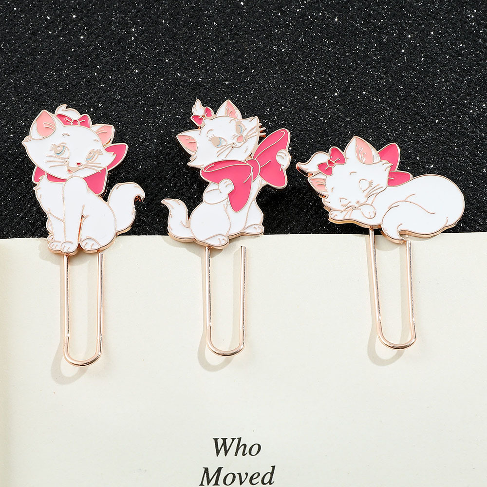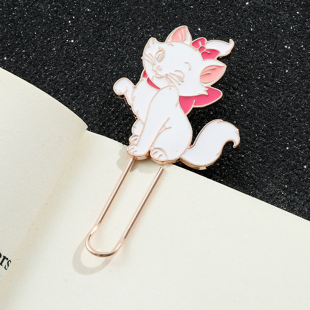 Caricatura encantadora marie gatos marcadores marie clips pequeños marcadores carpeta de libros marcadores de insignia de metal creativos