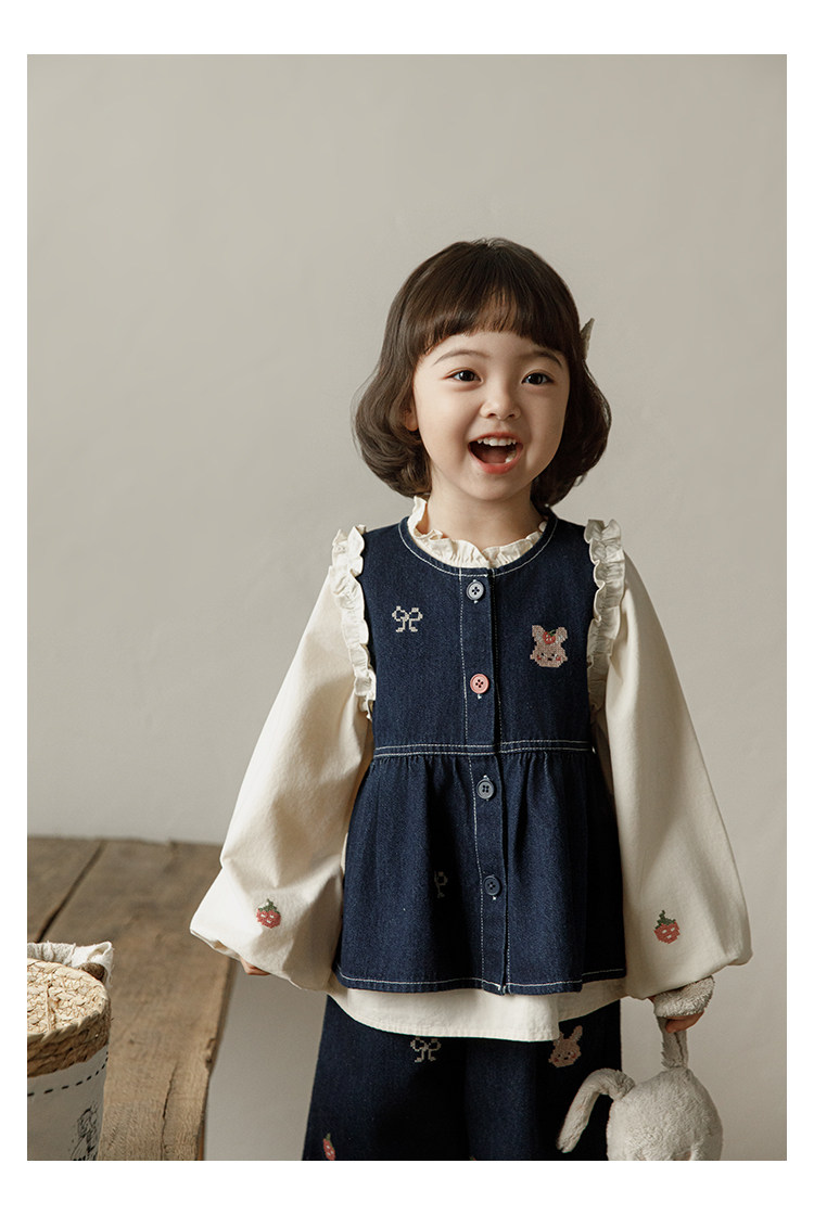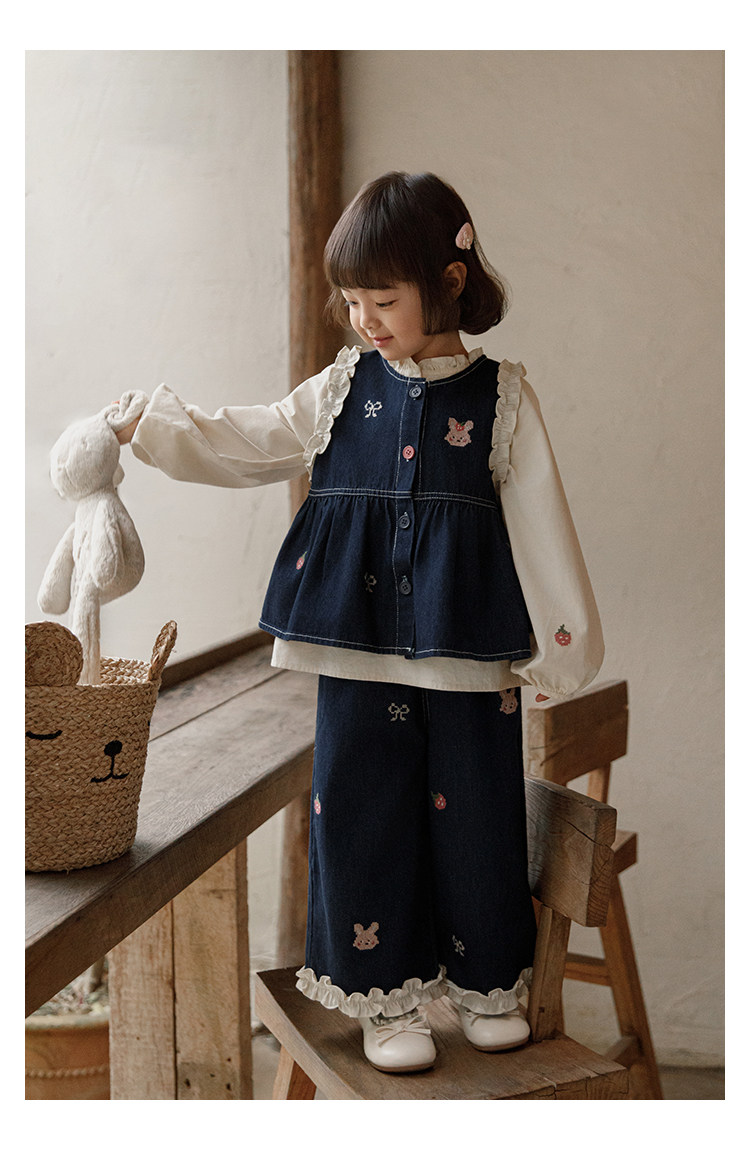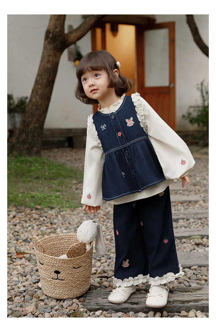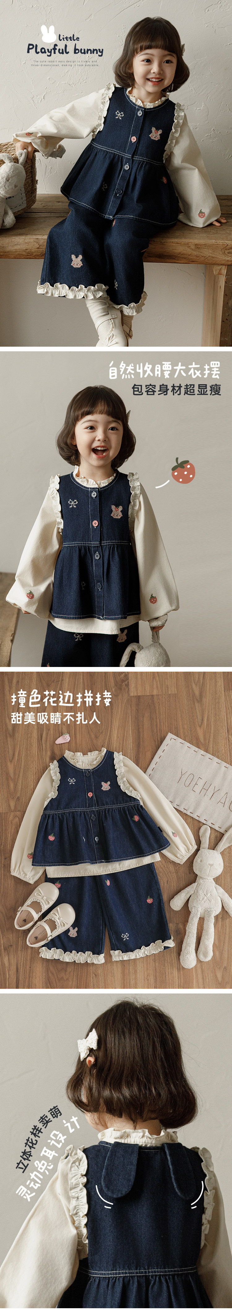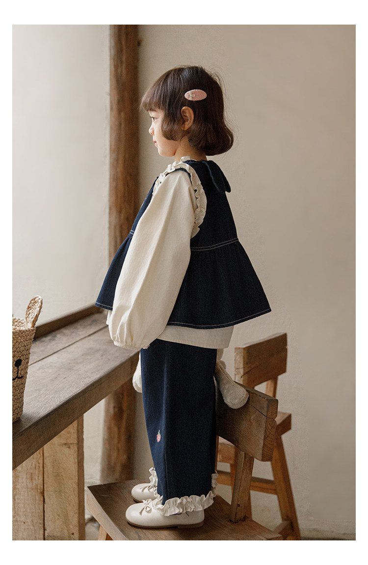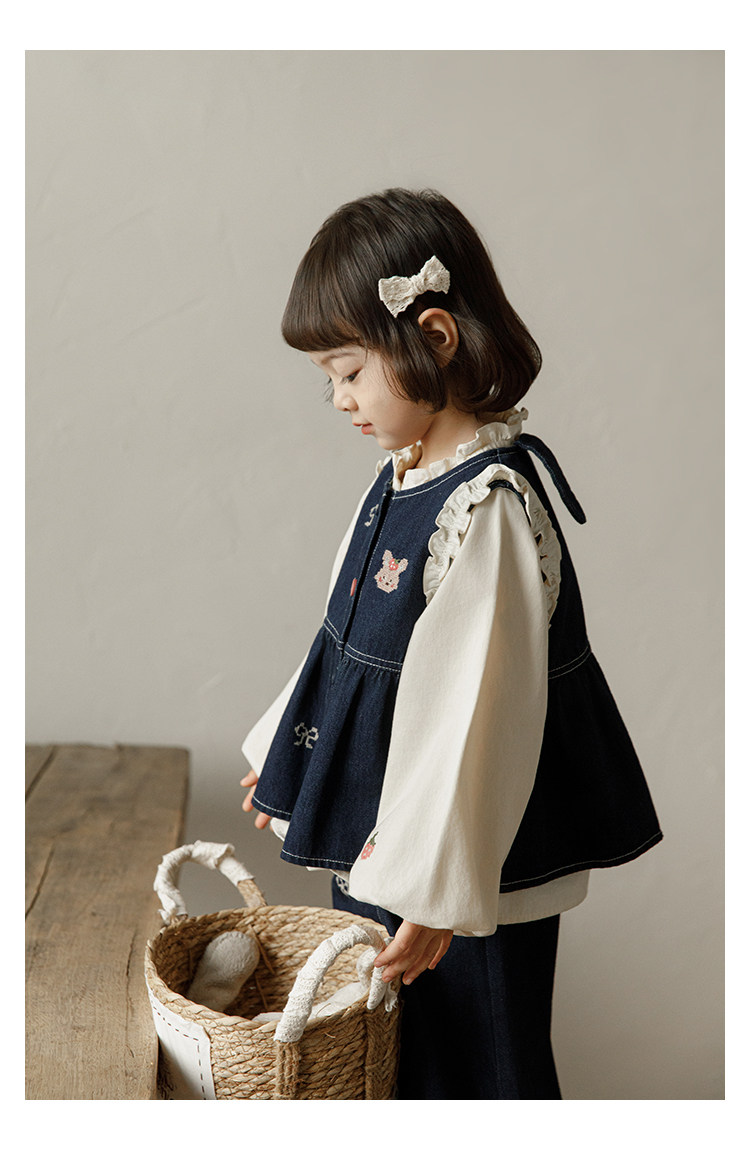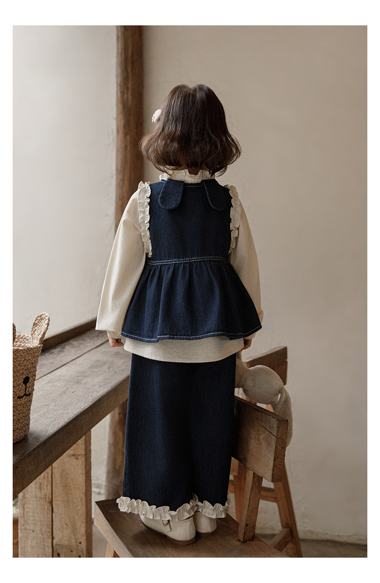 Wulibuyi niñas 2026 primavera nueva camisa de cuello de hongo para niños chaleco sin mangas jeans set