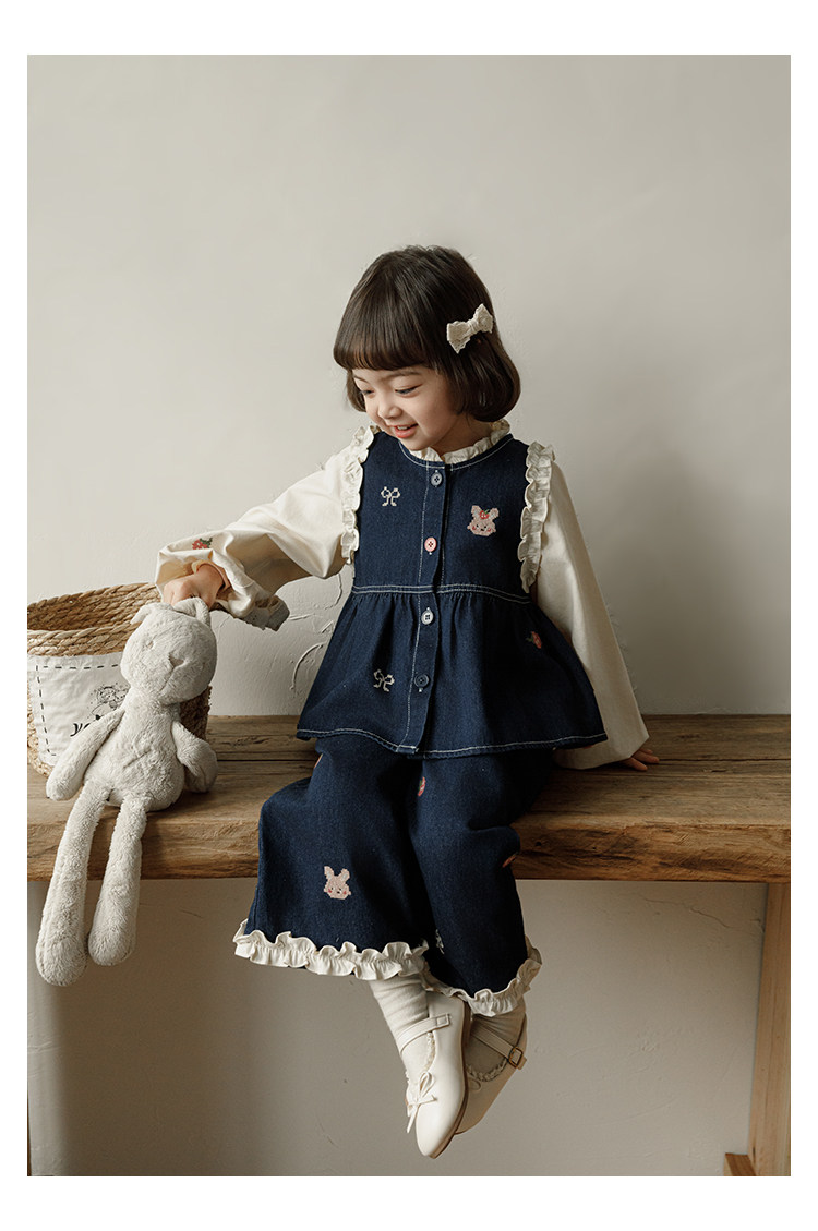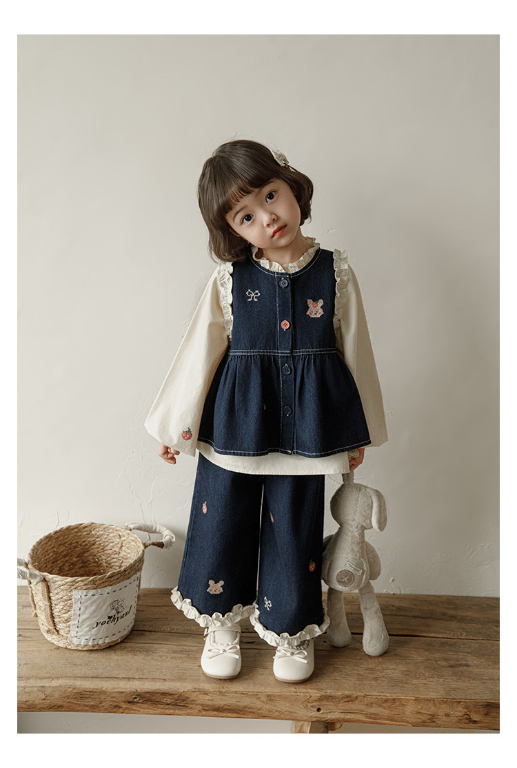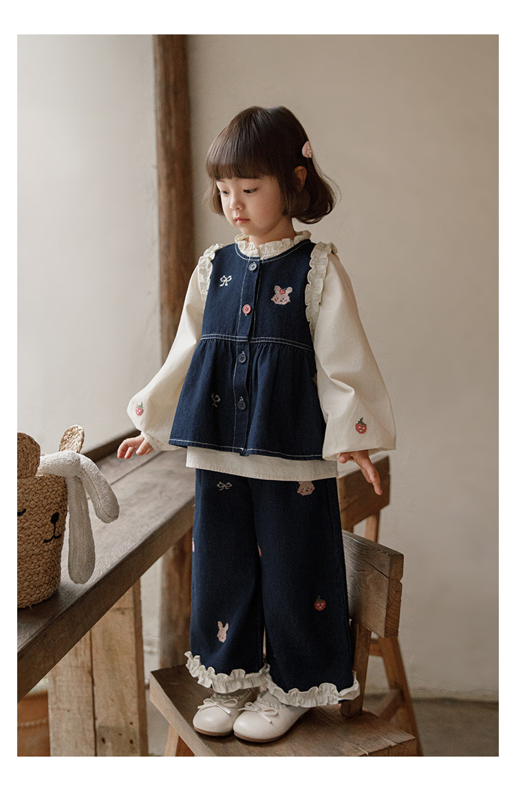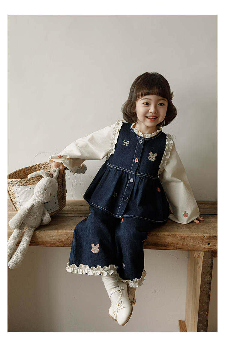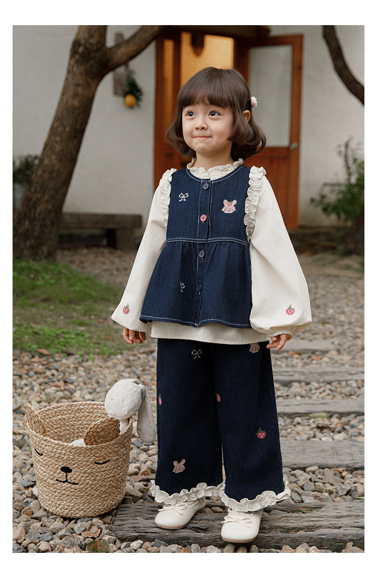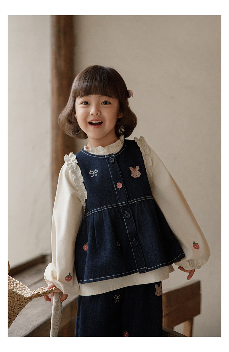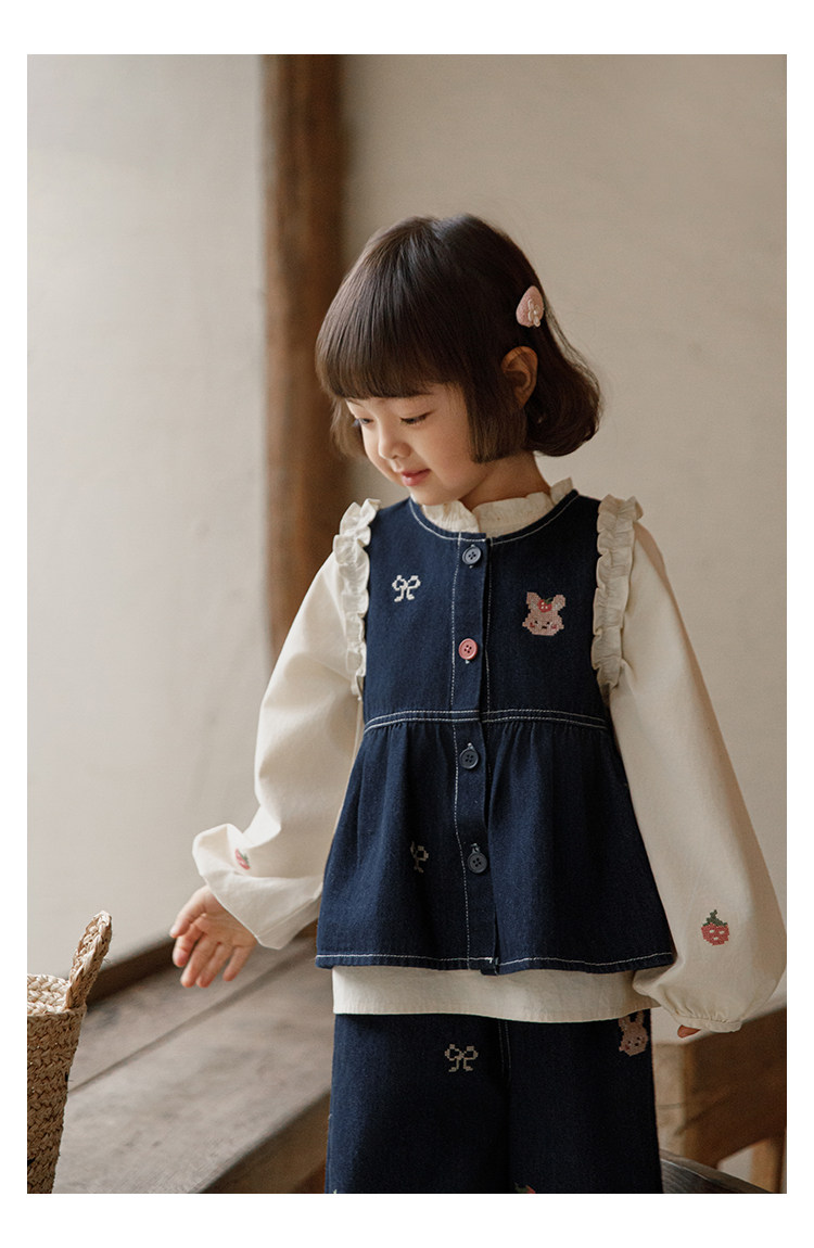 Wulibuyi niñas 2026 primavera nueva camisa de cuello de hongo para niños chaleco sin mangas jeans set