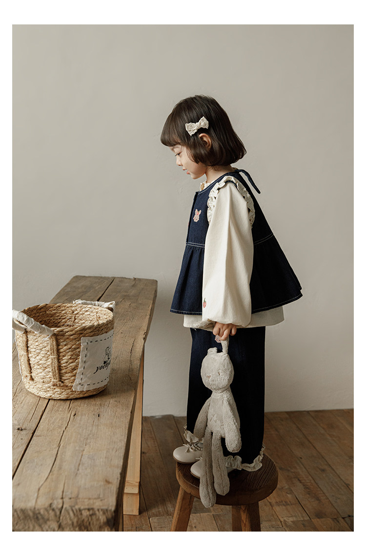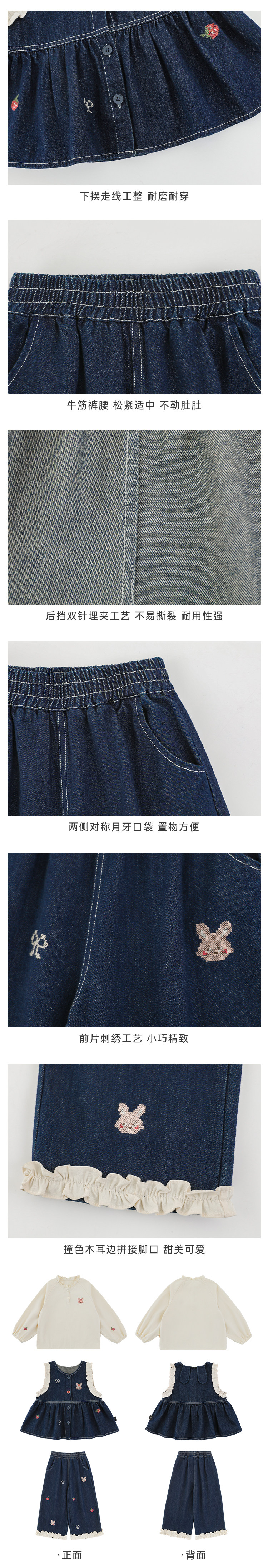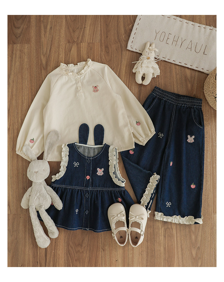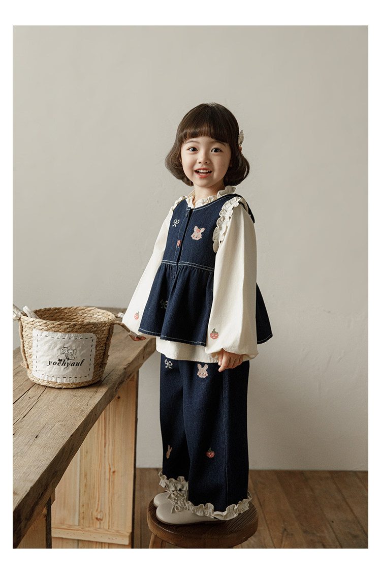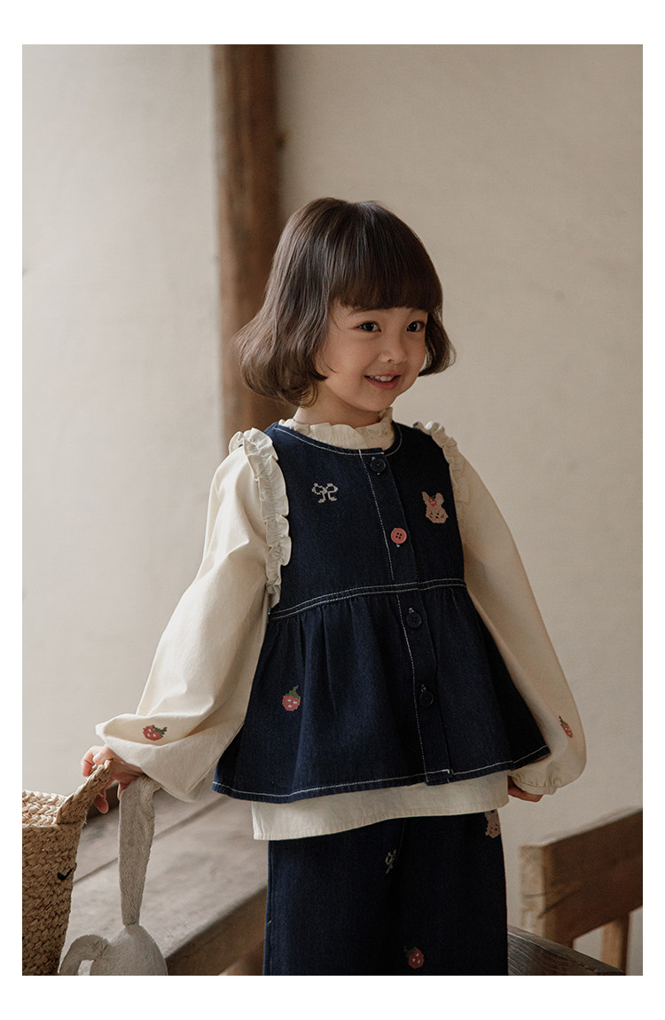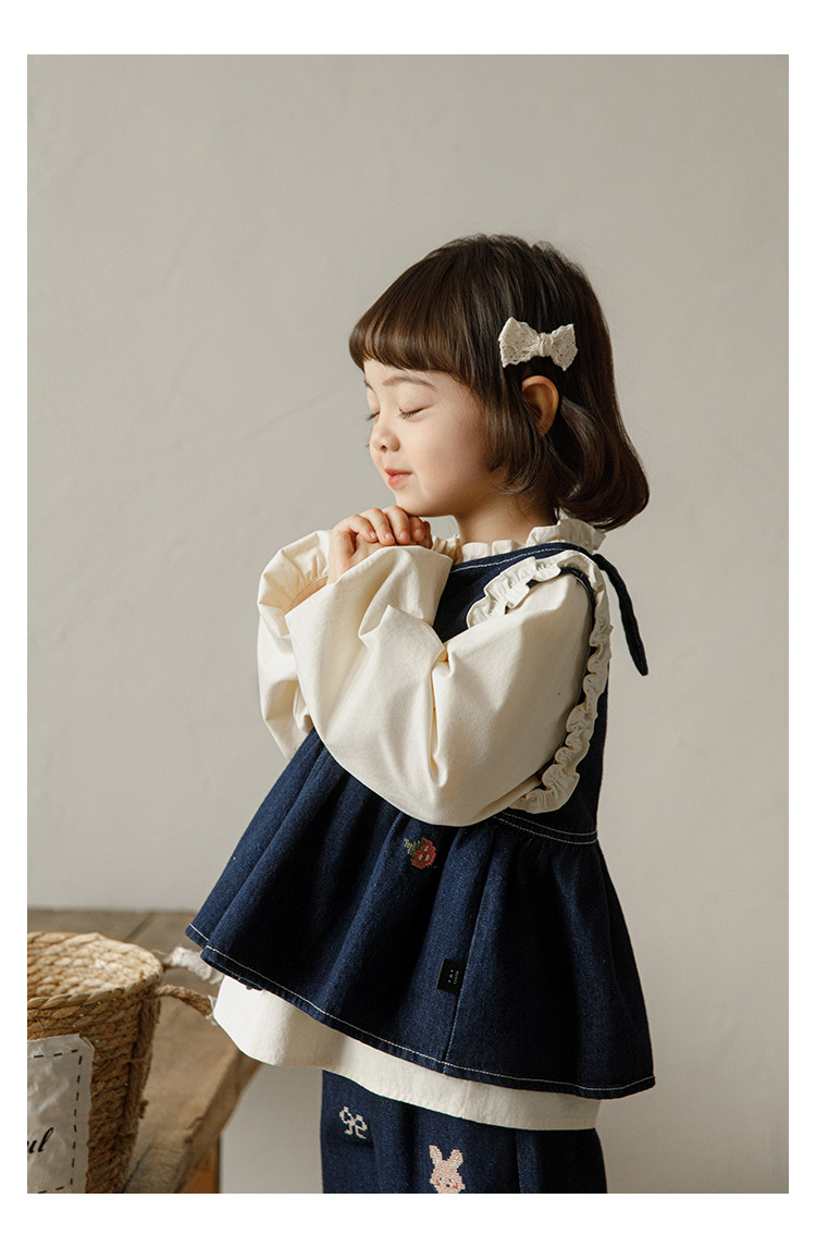 Wulibuyi niñas 2026 primavera nueva camisa de cuello de hongo para niños chaleco sin mangas jeans set